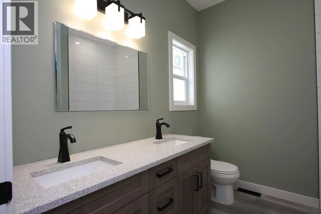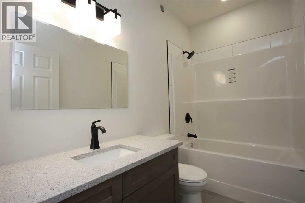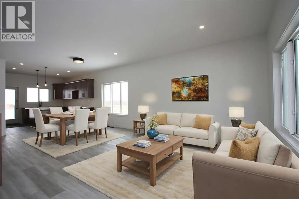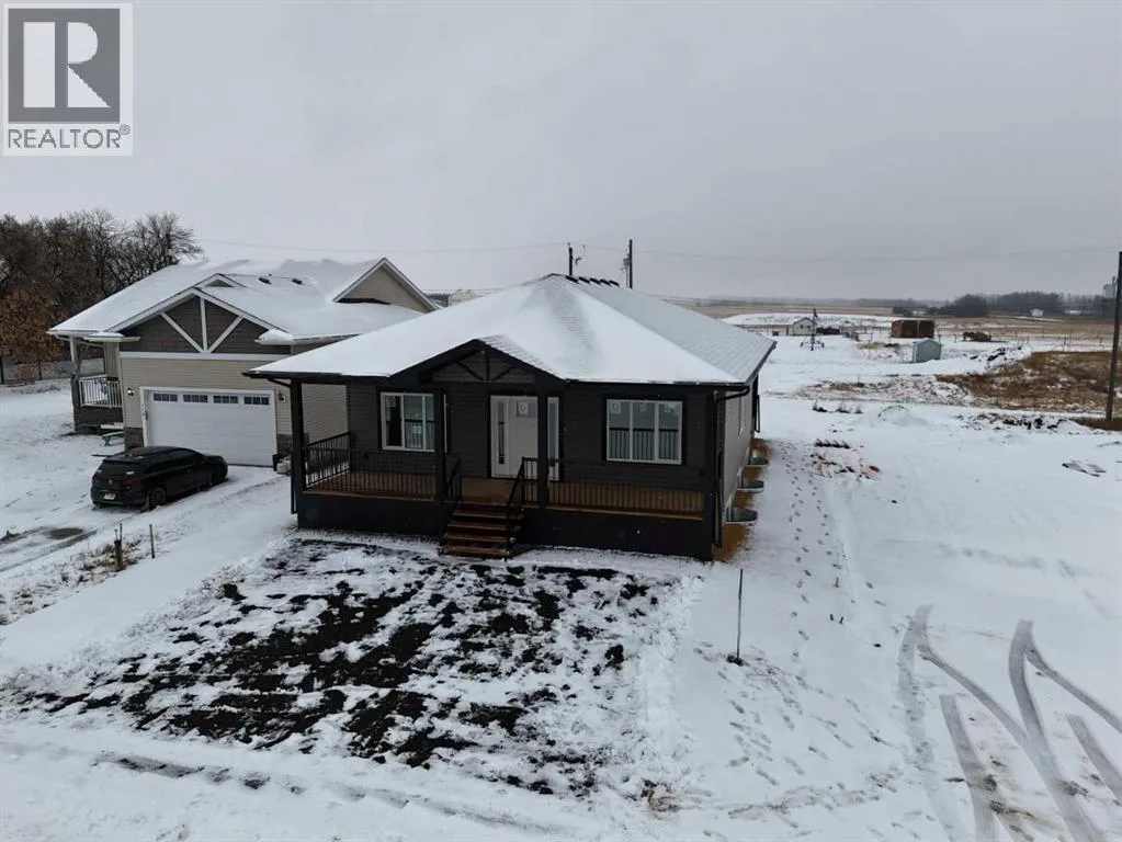Welcome to this brand-new, custom-built 1,334 sq ft bungalow located in the peaceful hamlet of Kingman, ABâjust under 20 minutes to Camrose and less than a 45-minute commute to Leduc, Edmonton, or Sherwood Park. This thoughtfully designed home offers 2 spacious, light-filled bedrooms and a spacious front office, which could also serve as a guest room or 3rd bedroom. An inviting open-concept kitchen with quartz counters, dining, and living area make this home perfect for everyday living and entertaining. The primary bedroom features a large walk-in closet and a beautiful 5-piece ensuite for added luxury. Enjoy outdoor living year-round with a covered rear deck off the kitchenâideal for BBQs even on rainy daysâas well as a generous 200+ sq ft covered front porch thatâs perfect for morning coffee. The landscaped yard offers front parking plus back alley access to a 28' x 24' concrete parking pad, providing the opportunity to build your dream garage. The bright basement, with 9' ceilings, multiple windows, bathroom rough-in and laundry area is open and ready for your finishing touch. With new home warranty included and set in a family-friendly community, this property offers exceptional value and peaceful small-town living with an easy commute in every direction. Welcome home! **Some photos digitally staged. (id:27476)