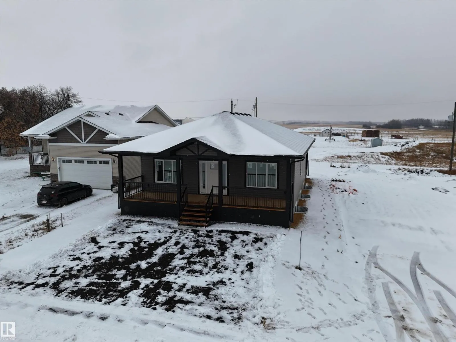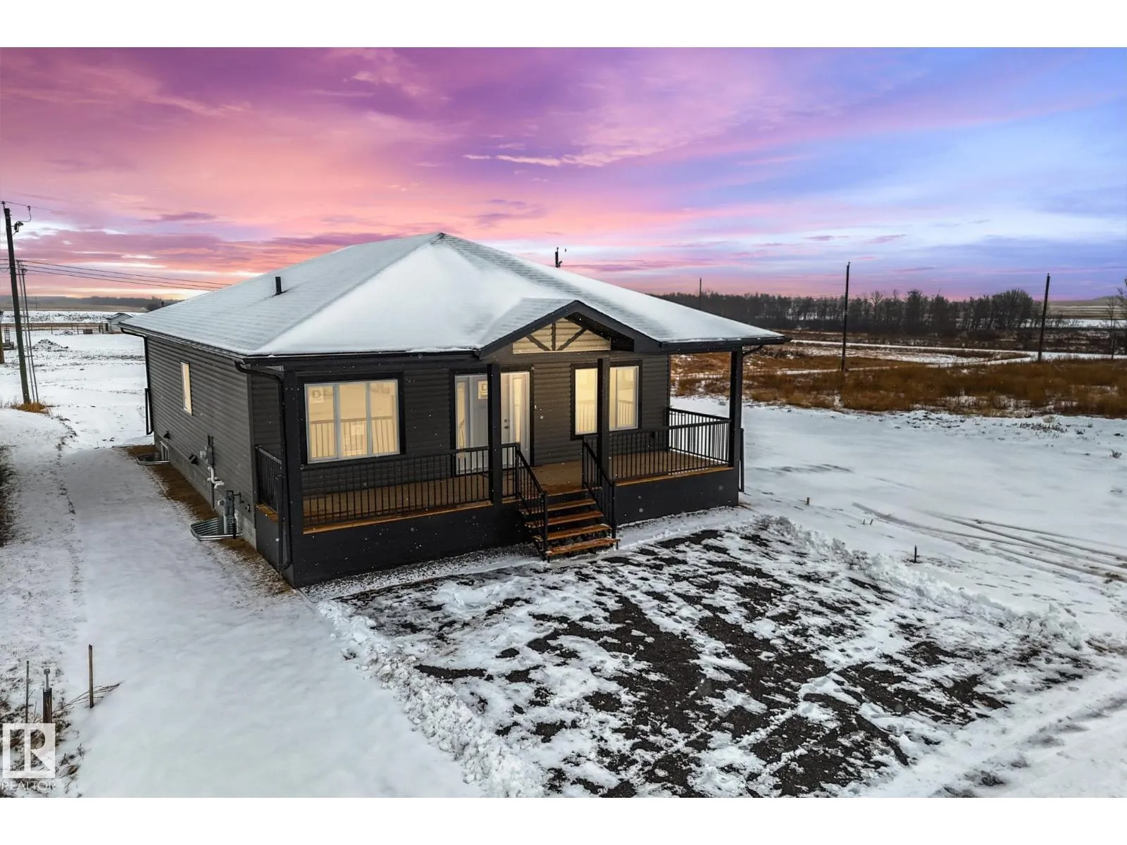 New custom-built 1,334 sq ft bungalow in the peaceful hamlet of Kingman, ABâjust under 20 min to Camrose and less than a 45-min commute to Leduc, Edmonton, or Sherwood Park. This thoughtfully designed home has 2 spacious, light-filled bedrooms & front office, which could serve as a guest room or 3rd bedroom. Inviting open-concept kitchen with quartz counters, dining, & living area make this home perfect for everyday living & entertaining. The primary bedroom features a large walk-in closet and 5-piece ensuite. Enjoy outdoor living year-round with a covered rear deck off the kitchenâideal for BBQs even on rainy daysâas well as a generous 200+ sq ft covered front porch thatâs perfect for morning coffee. The landscaped yard offers front parking plus back alley access to a 28' x 24' concrete parking pad with opportunity to build your dream garage. The bright basement, with 9' ceilings, multiple windows, bathroom rough-in and laundry area is open and ready for your vision! **some photos digitally staged. (id:27476)