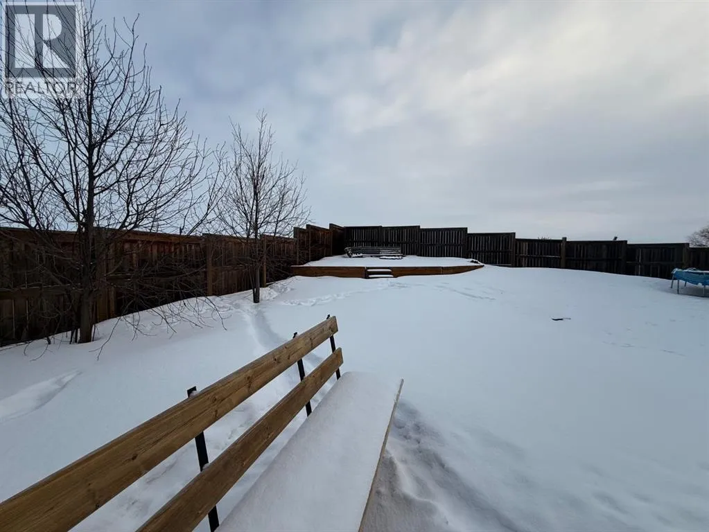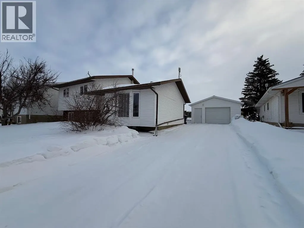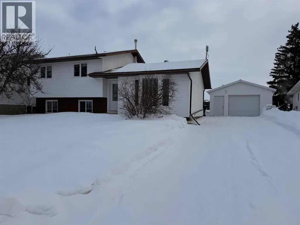 Welcome to this beautifully finished family home located in the quiet community of Kitscoty, Alberta. Tucked away in a desirable cul-de-sac and backing onto an open field with no rear neighbours, this property offers privacy, space, and comfort both inside and out.The home is fully finished top to bottom and features three bedrooms upstairs, including a primary bedroom with a 3-piece ensuite, plus a full main bathroom. The main level offers a functional and welcoming layout with a bright kitchen, dining area, and living room, all accented by hardwood flooring throughout the main floor.The fully developed basement provides excellent additional living space with a large family room, 2-piece bathroom, spacious bedroom, den/office area, and a large storage closetâperfect for growing families or those working from home.Numerous updates add to the homeâs appeal, including newer vinyl windows, hot water tank replaced just a few years ago, new washer and dryer (2025), and new dishwasher (2024). Outside, enjoy the new asphalt driveway leading to an oversized 24x18 heated garage. The expansive backyard is ideal for entertaining or relaxing, complete with a large deck, firepit area, and storage shed, all overlooking peaceful open space.A fantastic opportunity to own a move-in-ready home in a quiet, family-friendly location. (id:27476)