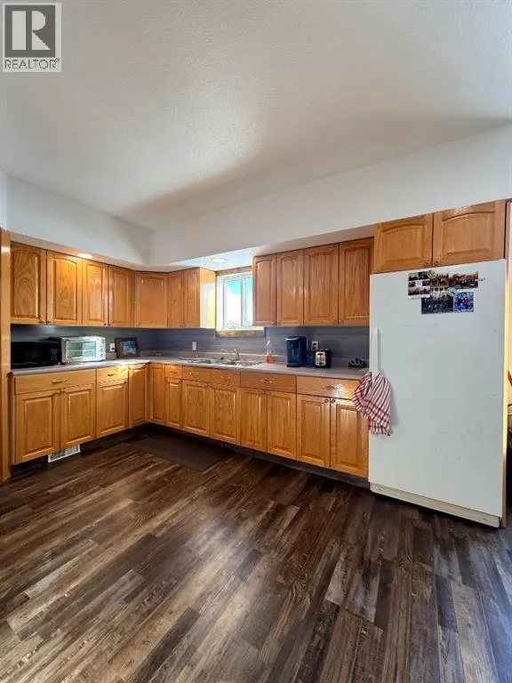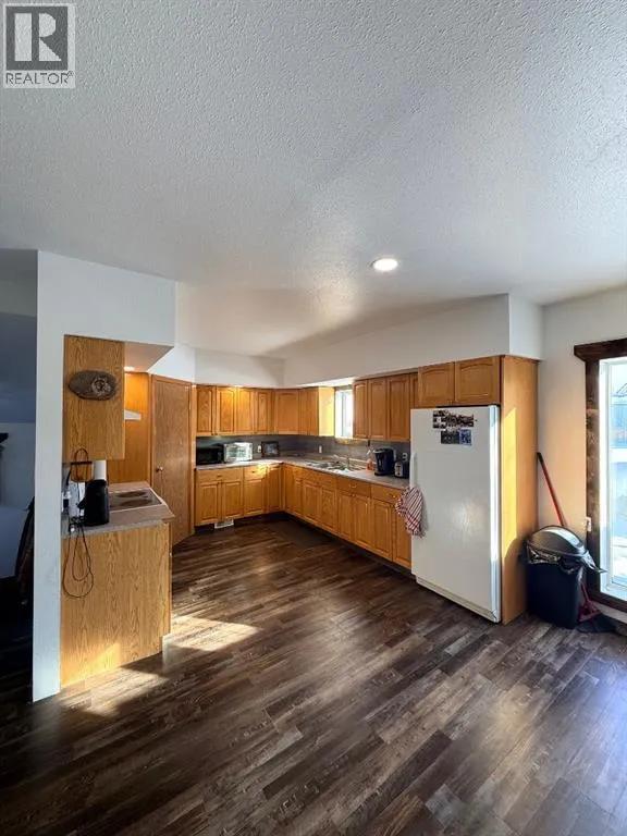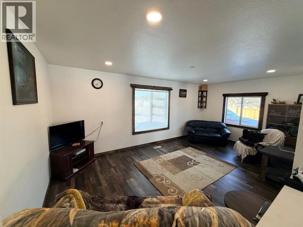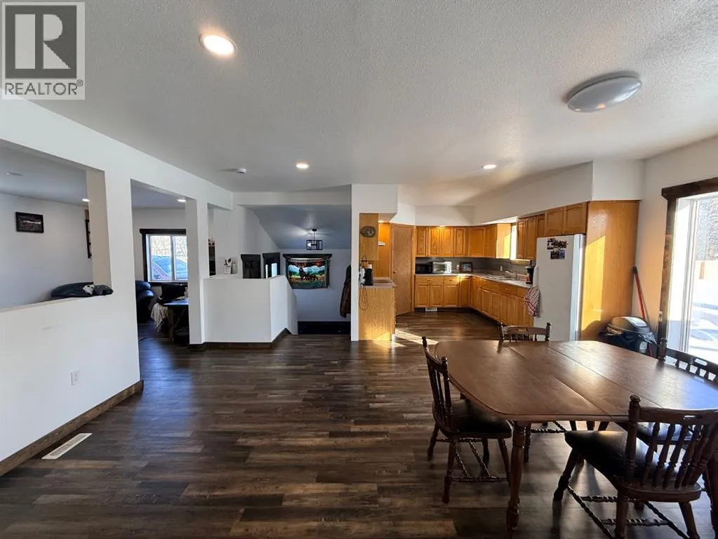 This well-maintained property offers an excellent blend of comfortable living today and exciting potential for the future. The main floor features a spacious and welcoming layout with a convenient dropped entryway that flows into a bright, open dining and kitchen area filled with natural light. The kitchen is nicely appointed with custom cabinetry, a corner pantry, and plenty of room to gather. A cozy front living room provides a relaxing space to unwind, while a bedroom located beside the full bathroom adds convenience to the main level. Downstairs youâll find two additional bedrooms along with another bathroom. The attached heated garage is ideal for parking, hobbies, or storing your toys, rounding out a versatile property with plenty of opportunity. Recent exterior improvements include new shingles on the roof, a new fence, and updated landscaping, adding both value and curb appeal. The large lot with back alley access provides plenty of space and flexibility, and with Town Center Commercial zoning, the property offers strong investment potentialâwhether used as a first home, rental property, or a future storefront or business location. Come on down and take a look today. (id:27476)