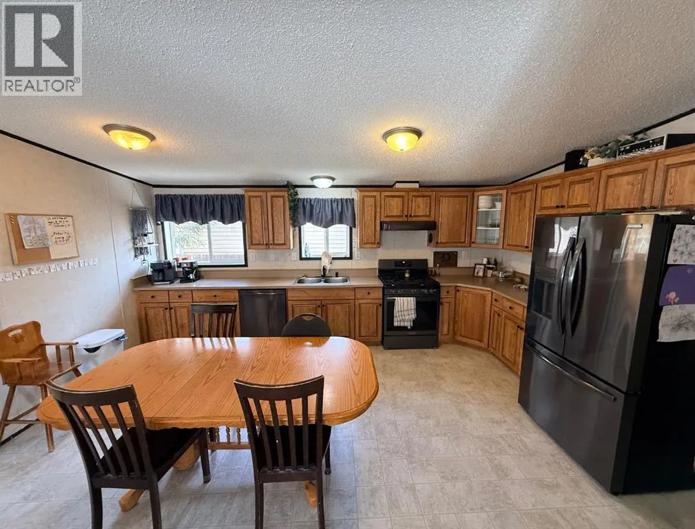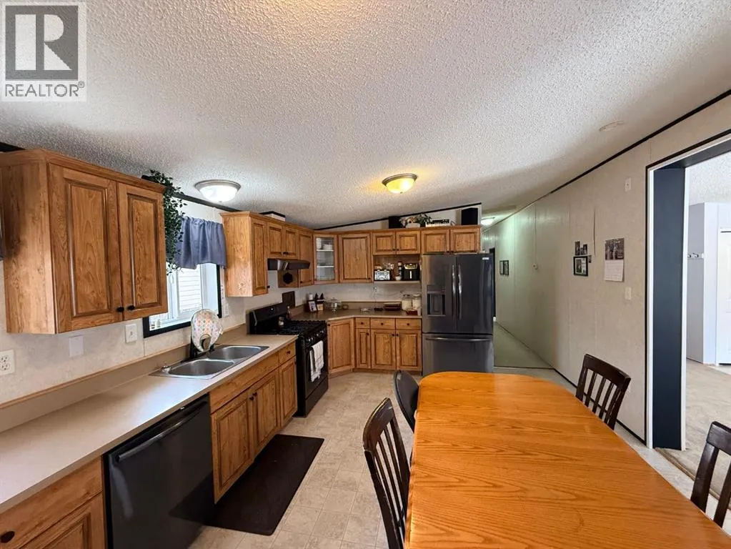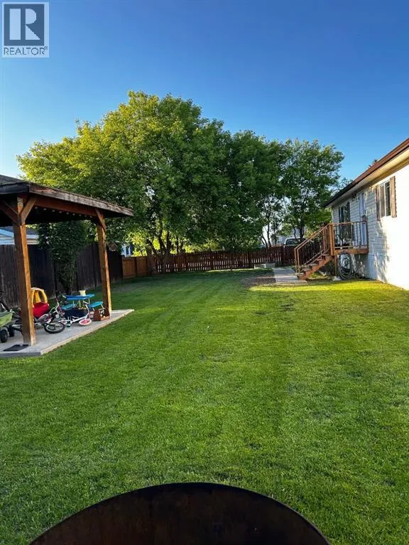 Spacious living at its finest with over 2,000 sq/ft in this impressive home! Offering a total of 5 bedrooms and 3 bathrooms, thereâs plenty of room for the whole family to spread out and enjoy. Tucked away on a quiet loop on 104 Ave, the property is surrounded by mature trees and fencing for excellent privacy, while the yard is beautifully set up with a lush lawn, a gazebo perfect for BBQs, and a storage shed for added convenience. Step inside to find vaulted ceilings running end to end, creating a bright and open feel throughout. The front of the home features a welcoming entrance, spacious living room, and an open kitchen and dining area complete with updated appliances, ample cabinetry, and plenty of counter space. Down the hall, youâll find a well-designed layout with multiple bedrooms and bathrooms, including Jack and Jill style access, and a generous primary suite at the rear with a full ensuite and lots of room to unwind. One bedroom is currently set up as a laundry room for added function, and the home has year-round comfort with central a/c! Pride of ownership shines throughout, this is an ideal home for comfortable family living in a great location. (id:27476)