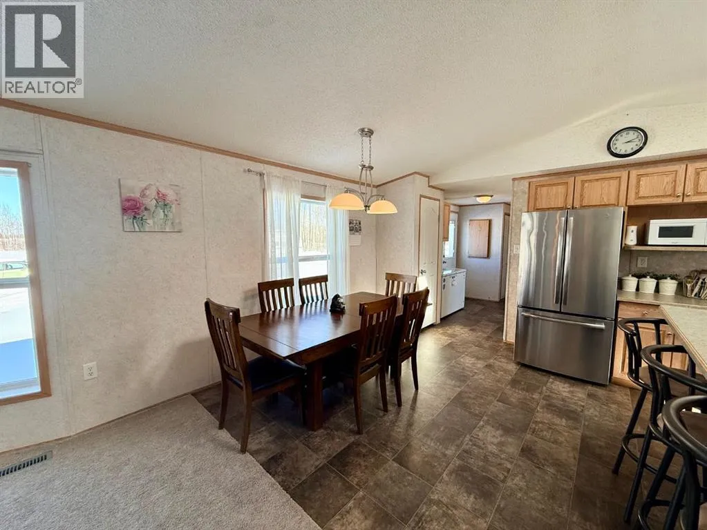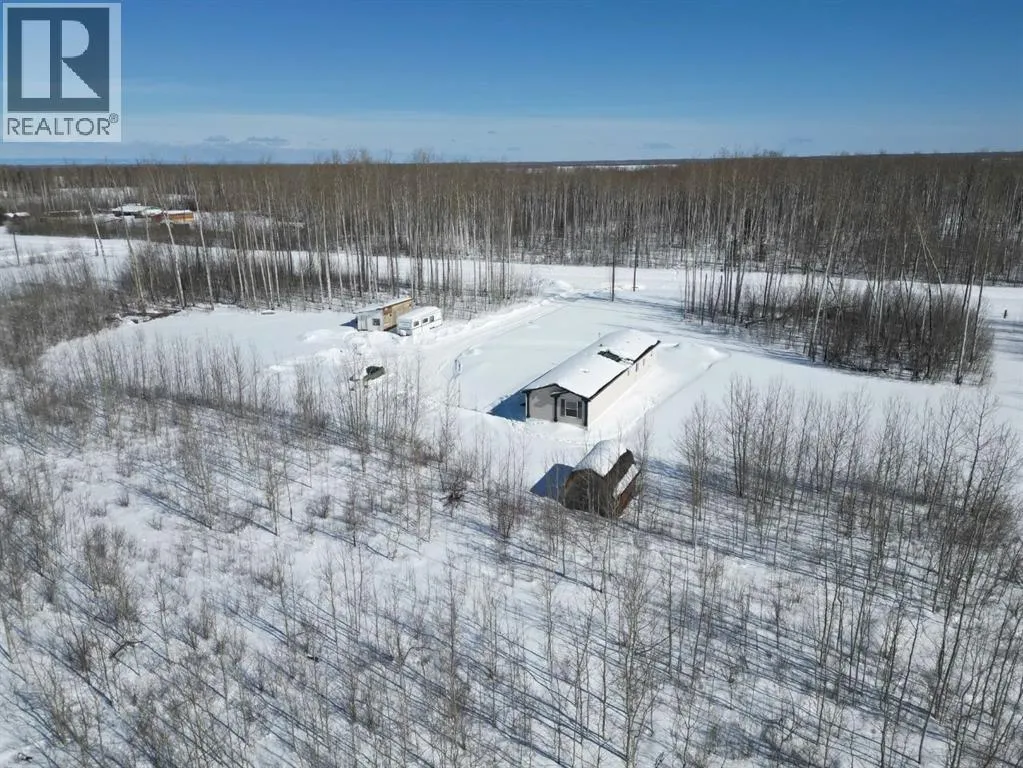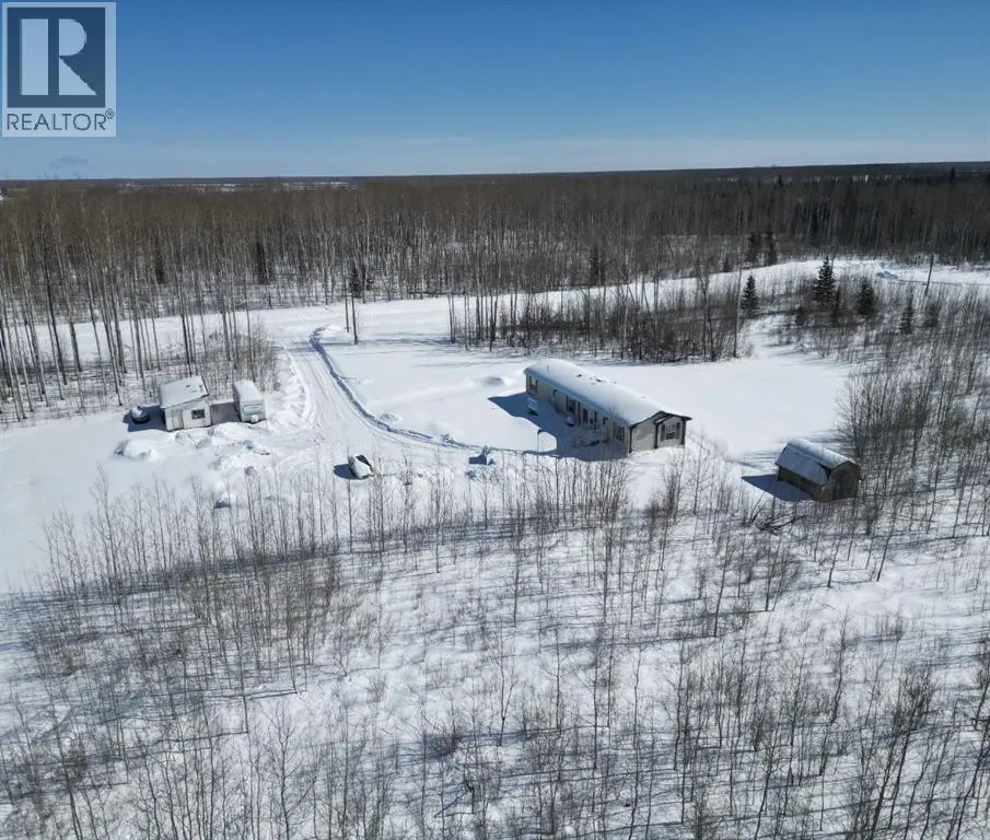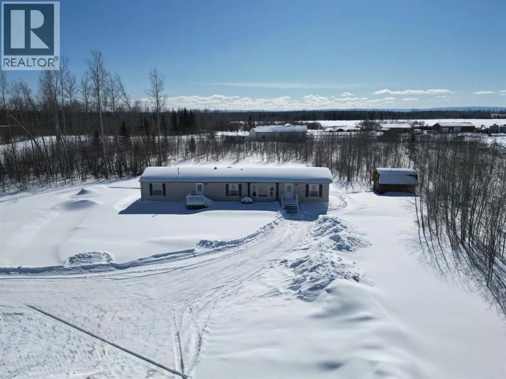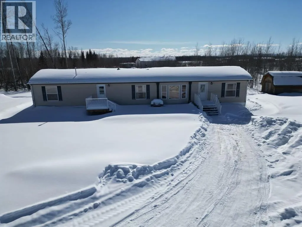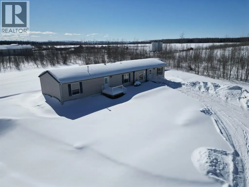 Welcome to your acreage dream! This 10-acre parcel located 26 km east of La Crete with only ½ mile of gravel offers a great balance of privacy and convenience. The property features a 5-acre fenced pasture with a dugout, plus just over 3 acres of natural trees surrounding the yard site for shelter and seclusion. The yard is beautifully set up with a parking pad, multiple storage sheds, garden plot, and a true established acreage feel. The home is a 2006-built 20-wide modular with a well-designed floorplan offering 4 bedrooms plus an office. The front entrance invites you into the main living area featuring vaulted ceilings and an open kitchen, dining, and living space. The kitchen includes ample cabinetry, a freestanding island, pantry, and appliances, while large windows in the dining and living areas overlook the front yard and bring in plenty of natural light. The layout continues with two bedrooms and a full bath at the front, followed by the main living area, then an office/sewing room, an additional bedroom, and finally the primary suite complete with ensuite and walk-in closet. Laundry is conveniently tucked into a hall closet. With a great floorplan, established yard, and functional land setup, this property is ready for you to enjoy country living at its best. (id:27476)