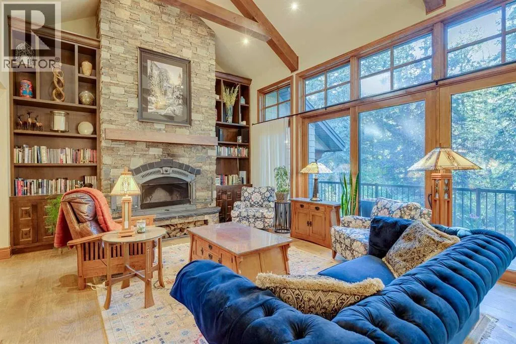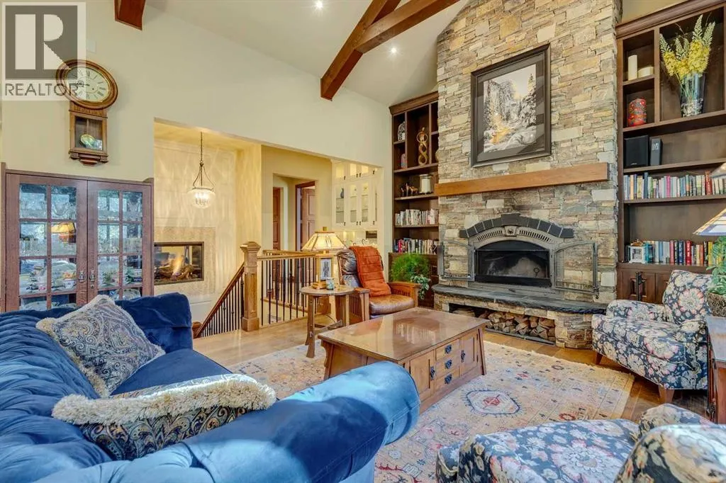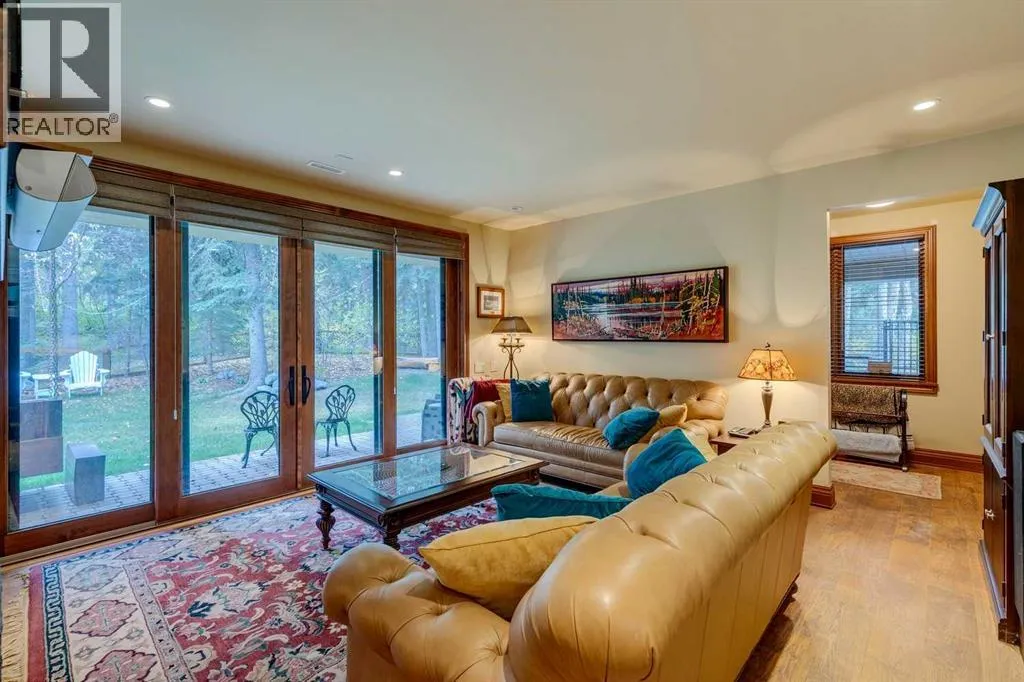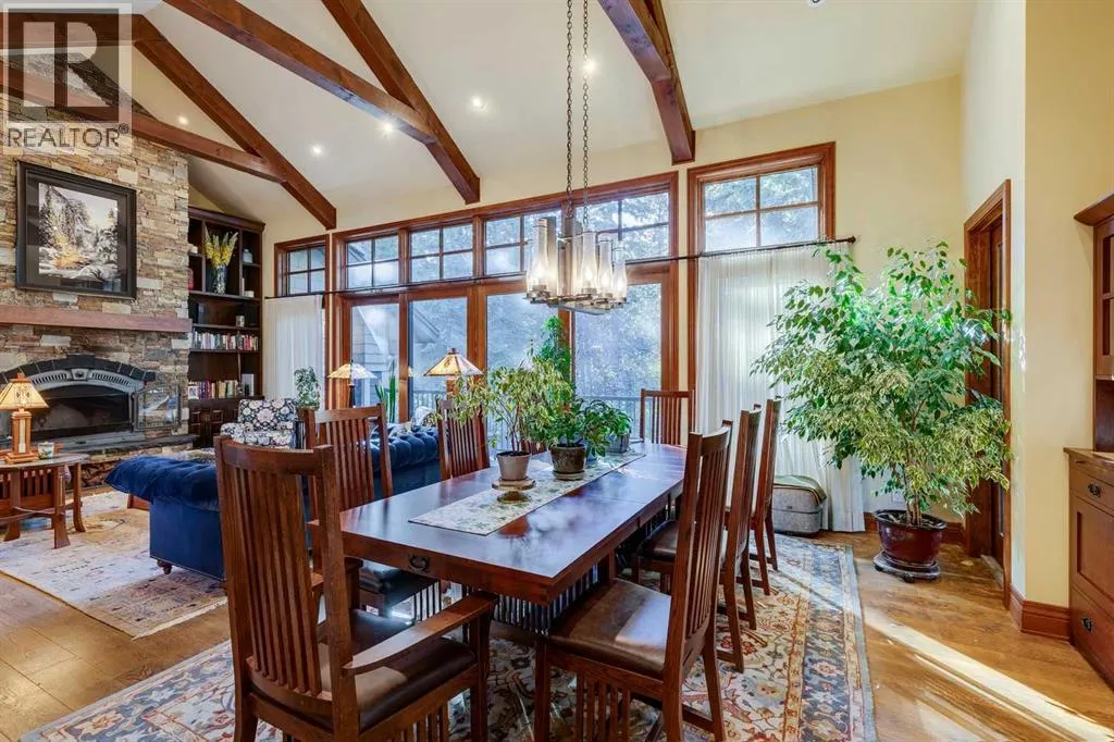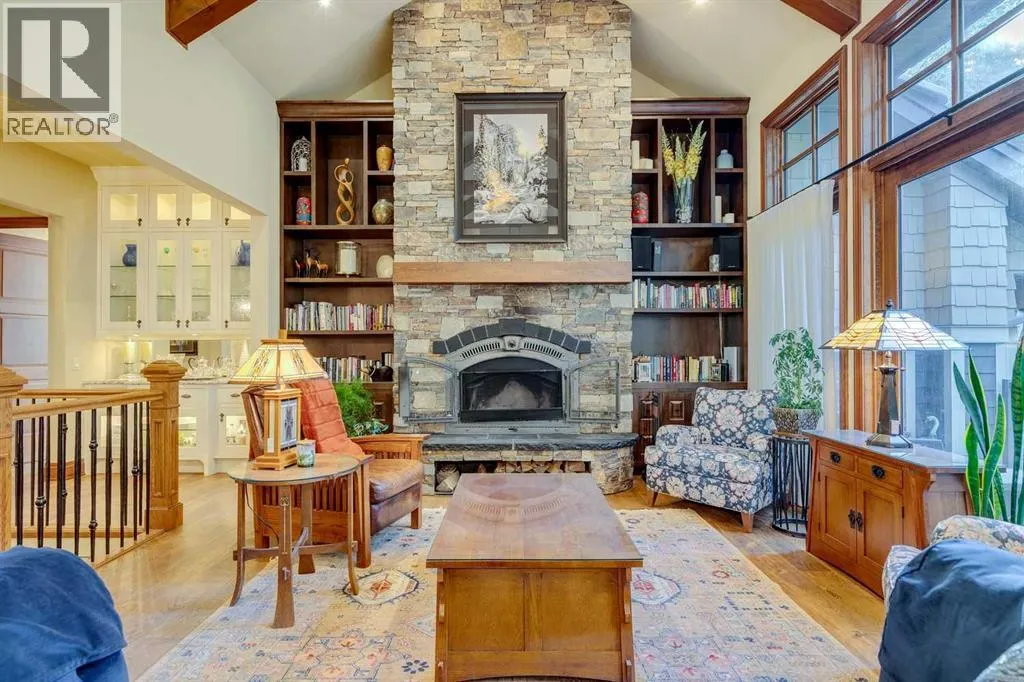 Located on an exquisitely landscaped 3/4-acre lot backing directly onto the serene waters of Heart Creek, this property is truly a Mountain Oasis. Offering over 3,450 sq. ft. of meticulously designed living space, this walkout bungalow is a rare opportunity to experience refined mountain living without compromise.Crafted by the award-winning builder Laratta, this residence is a testament to timeless quality and thoughtful design. From the moment you step inside, you are greeted with an atmosphere of warmth and sophistication, where every detail has been carefully curated. Rich stone floors and natural hardwood flow seamlessly throughout, while extensive custom millwork and wall paneling create a sense of enduring elegance.The gourmet kitchen is the heart of the home, showcasing bespoke cabinetry, high-end Miele built-in appliances, and generous counter space for both entertaining and everyday living. Expansive windows frame breathtaking mountain views, flooding the home with natural light and bringing the outdoors in. Anchored by a striking solid wood staircase, the interior also features three fireplacesâone wood-burning and two gasâthat create cozy gathering spaces for family and friends.This home offers four spacious bedrooms, providing plenty of room for family, guests, or a private office. The lower-level walkout is ideal for entertaining or quiet relaxation, seamlessly extending to the outdoors. The large three-car tandem garage includes a convenient dog wash, catering to both functionality and lifestyle.The exterior is equally impressive, blending traditional mountain architecture with authentic stone, timber accents, and maintenance free Hardie board siding. The result is a home that feels as though it naturally belongs in its breathtaking setting.Perfectly positioned in the peaceful hamlet of Lac Des Arcsâjust 8 minutes east of Canmoreâthis retreat offers the tranquility of a mountain getaway while maintaining quick, convenient access to all the amenit ies of Canmore and Calgary. Here, you enjoy the very best of both worlds: serenity without isolation, luxury without pretense.This is more than a homeâit is a sanctuary. A place where nature, comfort, and craftsmanship converge. If youâve been seeking a mountain residence that embodies peace, beauty, and timeless quality, look no further. Do not miss the opportunity to view this masterpiece. (id:27476)