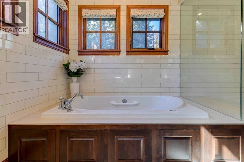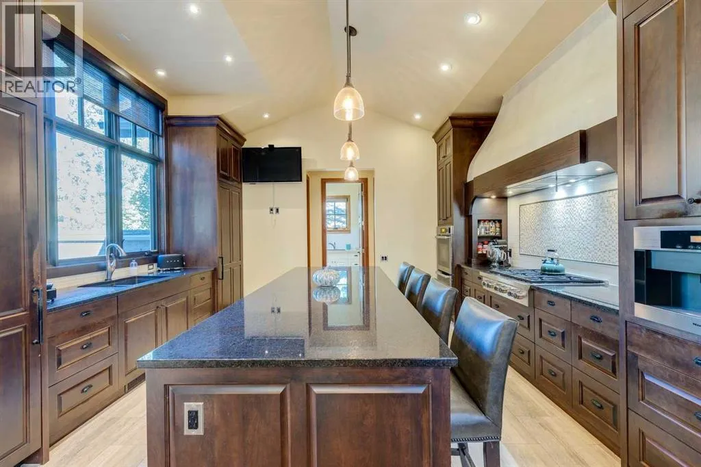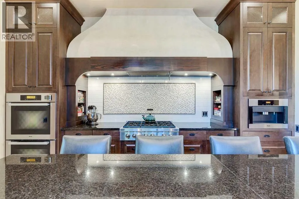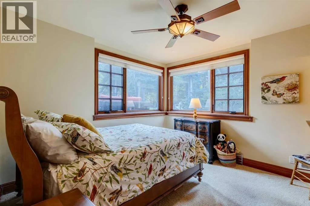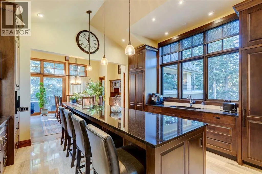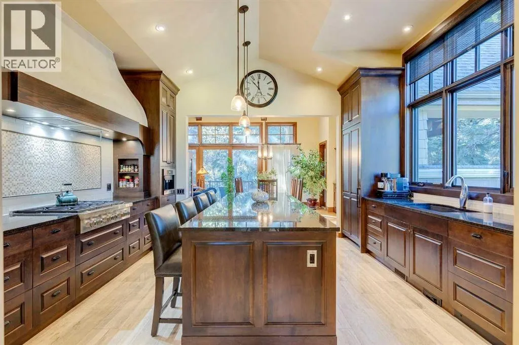 Located on an exquisitely landscaped 3/4-acre lot backing directly onto the serene waters of Heart Creek, this property is truly a Mountain Oasis. Offering over 3,450 sq. ft. of meticulously designed living space, this walkout bungalow is a rare opportunity to experience refined mountain living without compromise.Crafted by the award-winning builder Laratta, this residence is a testament to timeless quality and thoughtful design. From the moment you step inside, you are greeted with an atmosphere of warmth and sophistication, where every detail has been carefully curated. Rich stone floors and natural hardwood flow seamlessly throughout, while extensive custom millwork and wall paneling create a sense of enduring elegance.The gourmet kitchen is the heart of the home, showcasing bespoke cabinetry, high-end Miele built-in appliances, and generous counter space for both entertaining and everyday living. Expansive windows frame breathtaking mountain views, flooding the home with natural light and bringing the outdoors in. Anchored by a striking solid wood staircase, the interior also features three fireplacesâone wood-burning and two gasâthat create cozy gathering spaces for family and friends.This home offers four spacious bedrooms, providing plenty of room for family, guests, or a private office. The lower-level walkout is ideal for entertaining or quiet relaxation, seamlessly extending to the outdoors. The large three-car tandem garage includes a convenient dog wash, catering to both functionality and lifestyle.The exterior is equally impressive, blending traditional mountain architecture with authentic stone, timber accents, and maintenance free Hardie board siding. The result is a home that feels as though it naturally belongs in its breathtaking setting.Perfectly positioned in the peaceful hamlet of Lac Des Arcsâjust 8 minutes east of Canmoreâthis retreat offers the tranquility of a mountain getaway while maintaining quick, convenient access to all the amenit ies of Canmore and Calgary. Here, you enjoy the very best of both worlds: serenity without isolation, luxury without pretense.This is more than a homeâit is a sanctuary. A place where nature, comfort, and craftsmanship converge. If youâve been seeking a mountain residence that embodies peace, beauty, and timeless quality, look no further. Do not miss the opportunity to view this masterpiece. (id:27476)