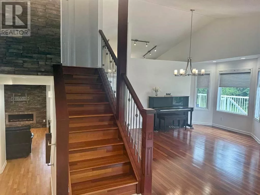 This beautifully renovated 5 level split home is located in one of the most sought-after neighbourhoods in Lac La Biche, Alberta. The home features a spacious and open floor plan with vaulted ceilings, hardwood floors, and large windows that let in plenty of natural light. The main level offers a formal living room, a dining room, and a gourmet kitchen with granite countertops, stainless steel appliances, and patio doors to your covered deck. The upper level has a master bedroom with a walk-in closet and a 4-piece ensuite bathroom, as well as two more bedrooms and a full bathroom. The lower level has a cozy family room with a gas fireplace, a laundry room, extra bedroom, and a half bathroom. The 2 basement levels offer a recreation room and plenty of storage. The 0.85-acre parcel offers a double attached heated garage, a single detached garage, large Quonset, and 8x12 Storage shed to store all your vehicles and toys. The paved driveway, stone patio, and wrap around deck provide a beautiful space for outdoor entertaining while overlooking a beautiful, landscaped front yard. Home is close to the park with green space, ice rink & play structure and boat launch which give you access to Beaver Lake year-round. Holowachuk Estates is the perfect family subdivision located close to walking paths, recreation facilities, parks, camping and restaurants, and this is the perfect family home! A must see! (id:27476)