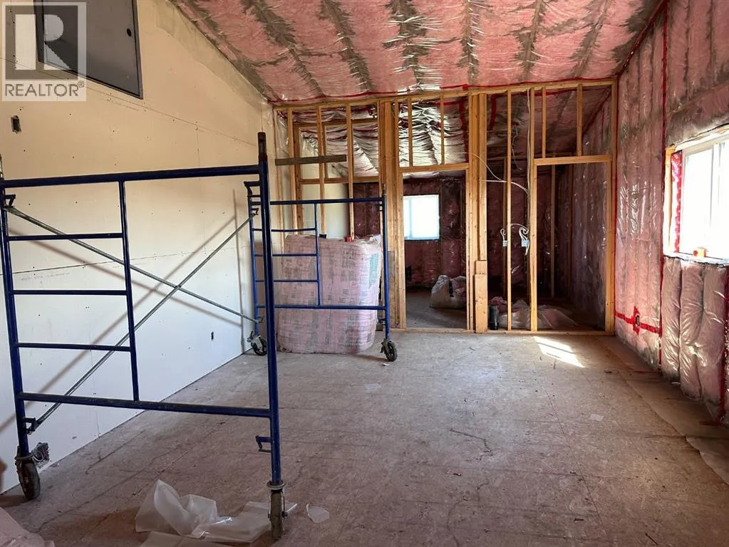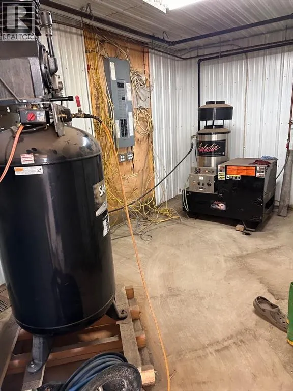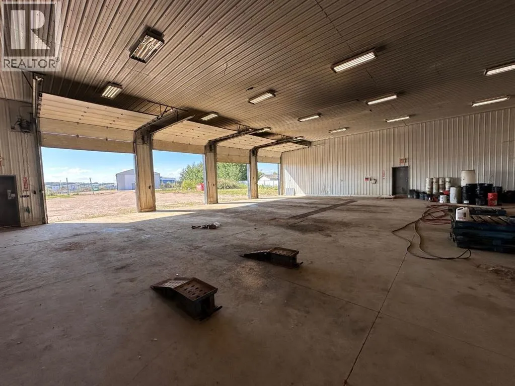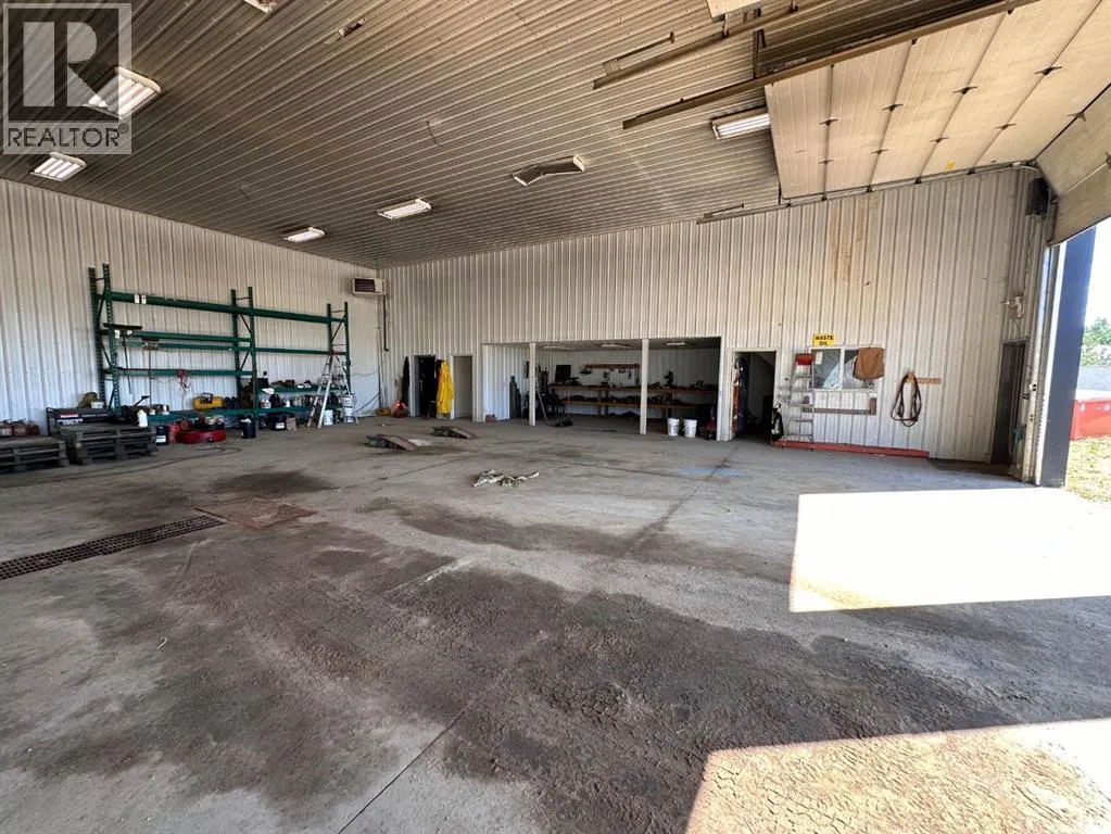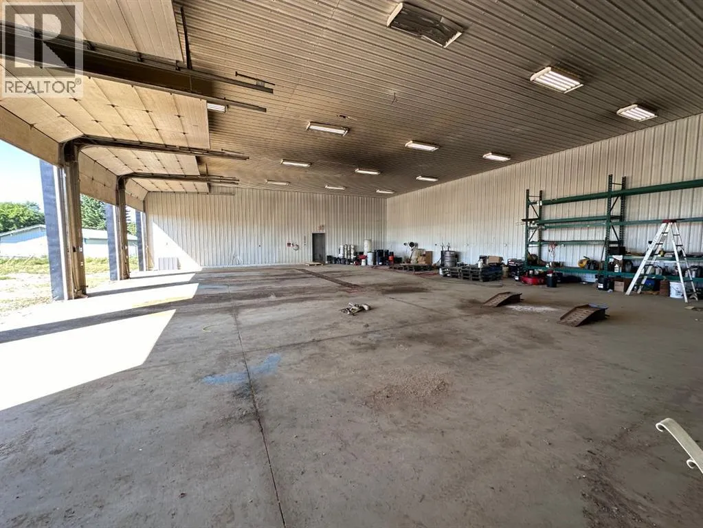 This spacious 4,448 sq ft shop, built in 2016, offers exceptional potential just a 2-minute drive from town. Situated on 1.72 acres, this property features four 12'x14' shop doors, a large tool crib, an office, and a bathroom for convenience. The upper floor includes an unfinished suite, offering the opportunity to create your own living quarters or other additional use. This property is connected to town water and sewer and is also enclosed by a fully functional chain linked fence providing extra security. Whether you need a functional workspace or the flexibility for future development, this property is ready to accommodate your industrial needs! Owner will consider leasing. (id:27476)