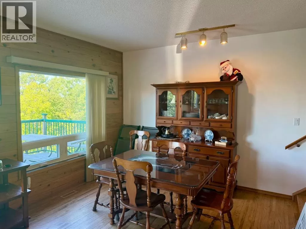 What an opportunity to own a Beautiful Lakefront Home at Lakeview Estates with summer sunsets and year round lakefront views. This 2 story home features vaulted cedar ceilings, sunken living room with hardwood floors and rock faced fireplace and open to the spacious kitchen with large and French patio doors will take you out to the wraparound sundeck! There's also a office/den with custom built in oak cabinets and built in desk and storage. Second story has the primary bedroom with private observation deck plus 2 kids rooms and full bath. The fully finished walkout basement has lots of storage, and a walk out rec room leading to the yard and firepit. The heated garage/workshop is the handy mans dream space with enough room for 4 vehicles and enough space for a work area or man den and toy storage. Landscaped with many trees, property offers a private yard with paved drive, exposed aggregate concrete walks, lake access, flowerbeds, shrubs, and garden space. Close to the golf course, boat launch and Sir Winston Churchill Park all on paved walking trails! Enjoy exploring one of Alberta's premiere walleye fishing lakes or exploring by boat, kayak, paddle board and enjoy nature at its best! (id:27476)