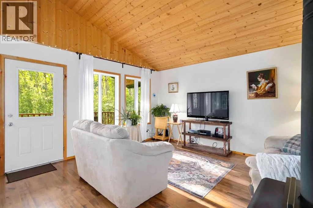 THIS ONE IS A GEM! LOG ALL SEASON HOME WITH BASEMENT AND IS SURROUNDED BY TREES AND OFFERS LAKE VIEWS TO ENJOY LAC LA BICHES INCREDIBLE SUNSETS. Situated on a half-acre of land that features a municipal reserve trail behind the home, the wildlife corridor, plus a bird sanctuary. The seller is sad to sell this little piece of paradise where she has enjoyed privacy and pure Zen living. This log home features a living area that shines with pride in ownership, vaulted ceilings, solid pine doors, a bright living area, and a cozy living room with a wood-burning fireplace. The main and lower level offers a combined living area of over 1500 sq ft. There is a beautiful kitchen that features a wrap-around island that overlooks your living room and dining nook. There are 2 bedrooms on the main level and a full bathroom. The lower level is almost fully complete and offers a great space for another family room, bedroom, and loads of storage space. Finishing off, this space already includes electrical and drywall. The lower level is complete with a laundry room. The exterior of the home is your private oasis where you can sit on the front veranda and take in picturesque views of the lake. The property has a 2000-gallon cistern and septic tank, furnace, hot water tank, 100-amp service, power, gas, and you will have satellite internet and phone service. The yard is fully landscaped, and you have direct driveway access to the property. This property is a rare find and priced to sell for under $300k. You are close to boat launches and a quick commute to town, and just over 2 hours away from Fort McMurray. This property can be the place you call home or your family's recreational property to enjoy lake living in the Summer, and the world-famous ice fishing in the winter. This is an outdoor lover's dream. Call today for your private tour of this special gem. (id:27476)