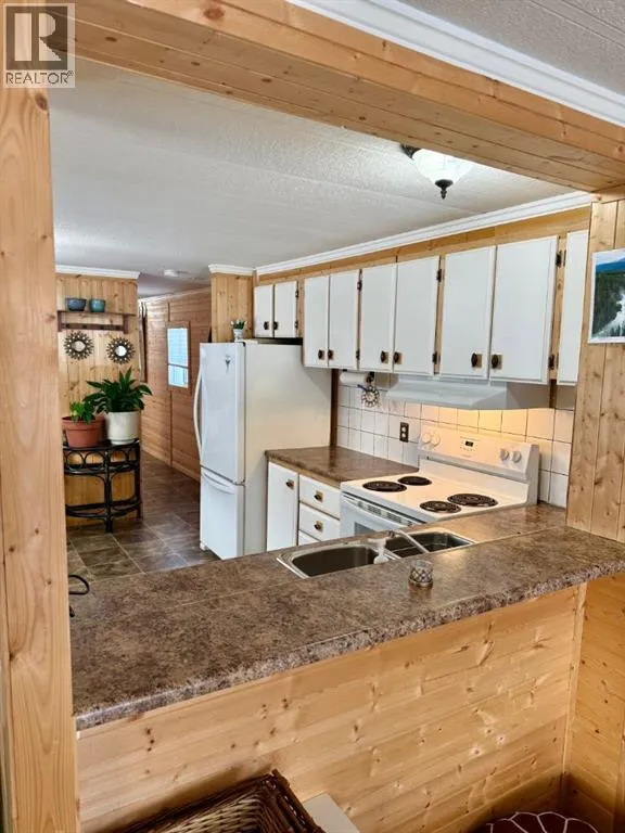 Welcome to this bright and inviting 2 bedroom manufactured home located in the well established Deer Meadows Mobile Home Park in Lac La Biche. Thoughtfully updated, this home features new windows, durable laminate flooring, and warm shiplap wood walls that add character and a cozy, modern feel throughout.The functional layout offers two comfortable bedrooms and a newly renovated bathroom, making it an ideal option for first-time buyers, downsizers, or anyone seeking affordable home ownership. Large windows and an open concept design allow natural light to fill the space, creating an airy and welcoming atmosphere.Situated on a leased lot, Deer Meadows is a professionally managed manufactured home community offering paved roads, green space, and a convenient location with easy access to local amenities. This is a great opportunity to own a move-in-ready home in a quiet, community oriented setting at an accessible price point. (id:27476)