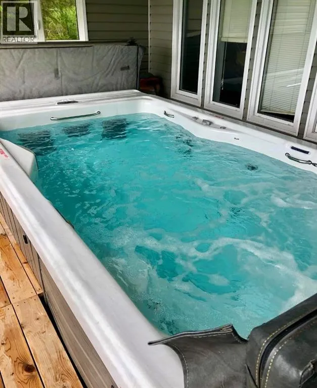 Dreaming about a lakefront home and lifestyle? Welcome to this stunning Sunset Bay home on a rare ½-acre level lot with direct lake accessâperfect for your private dock and boat launch! Enjoy over 2,325 sq ft of living space with breathtaking lake views from the kitchen, dining, and living room, full-length windows and a spacious deck with glass railing so you can gaze at the water and enjoy the sunsets! The kitchen features plenty of cabinetry and a large working island. To make carrying in supplies nice and easy, there is a walk through pantry from the garage to the kitchen. Next to the dining area are patio doors that bring in light and open to the large upper deck where you can bbq, dine outside, or relax with friends. Cozy up in the living room with a wood-burning fireplace. On the main floor you will also find 2 bedrooms, 2 bathrooms, a laundry area with story, and access to the garage!The walkout lower level includes a spacious family room & another fireplace with sculptured stone walls,, an additional bedroom, bathroom, office/hobby room. Your favorite space to retreat to just might be the covered swim spa area. In this sunroom there is a handy kitchenette bar area, and fitness area space. The beautifully landscaped yard includes an 8'x12' shed, and lawn that stretches right to the beach, with a gathering space around the firepit, and raised garden bed. Thereâs room for RV parking, with stunning views, and evenings under the stars! Enjoy community amenities like walking trails to the golf course and Sir Winston Churchill Park, a nearby playground, and a boat launchâall just steps away. Whether you're looking for a year-round residence or a turnkey family retreat, this lakefront gem has it all! This property offers one of the best lakefronts with municipal water and sewer services! To be sure you are ready to go for summer, a boat lift, and dock may also be available at the right price! (id:27476)