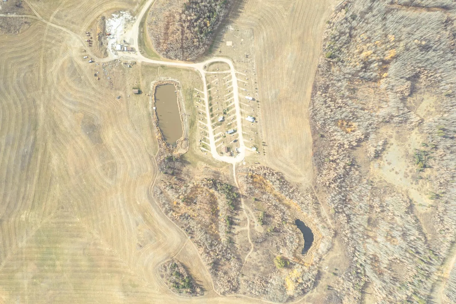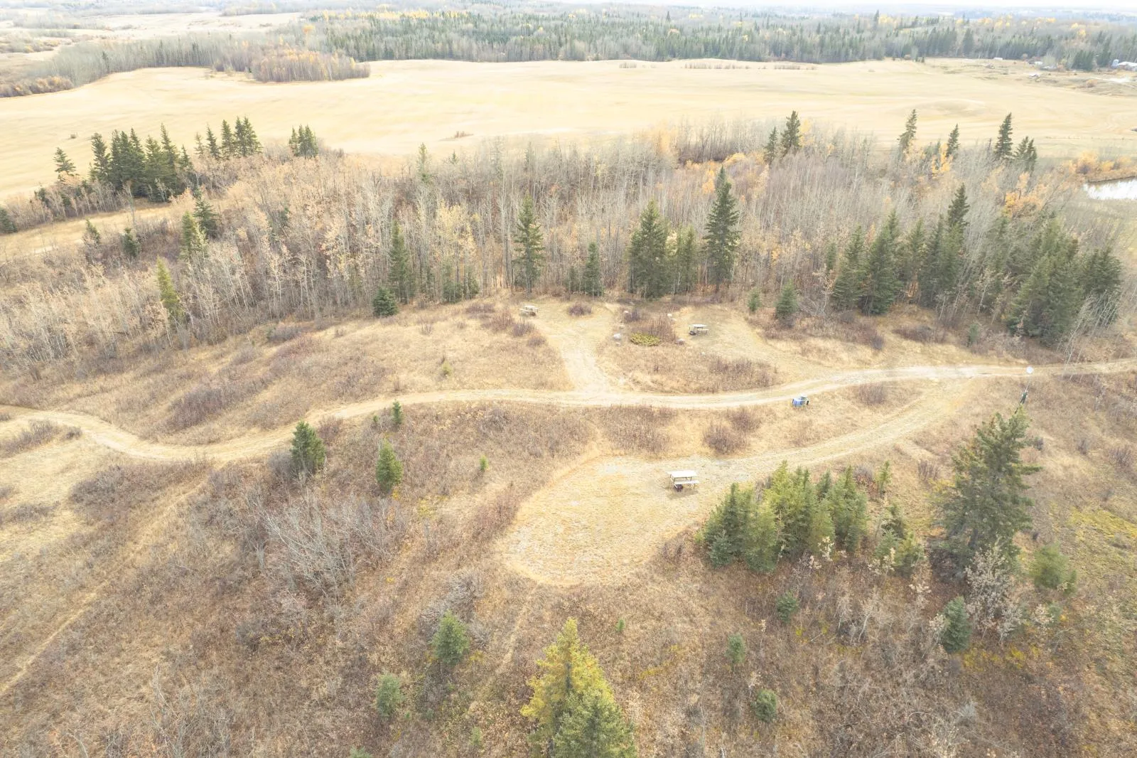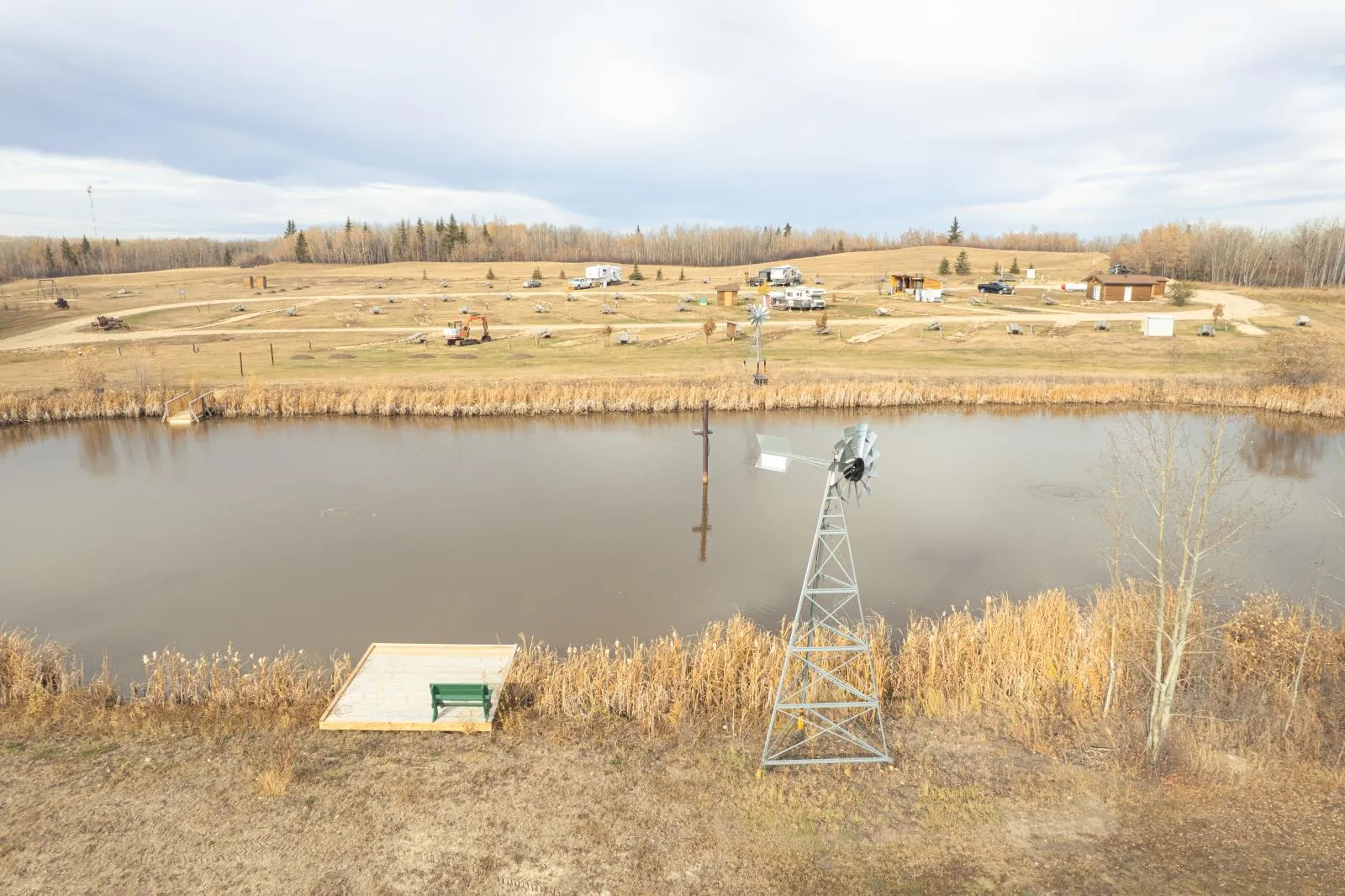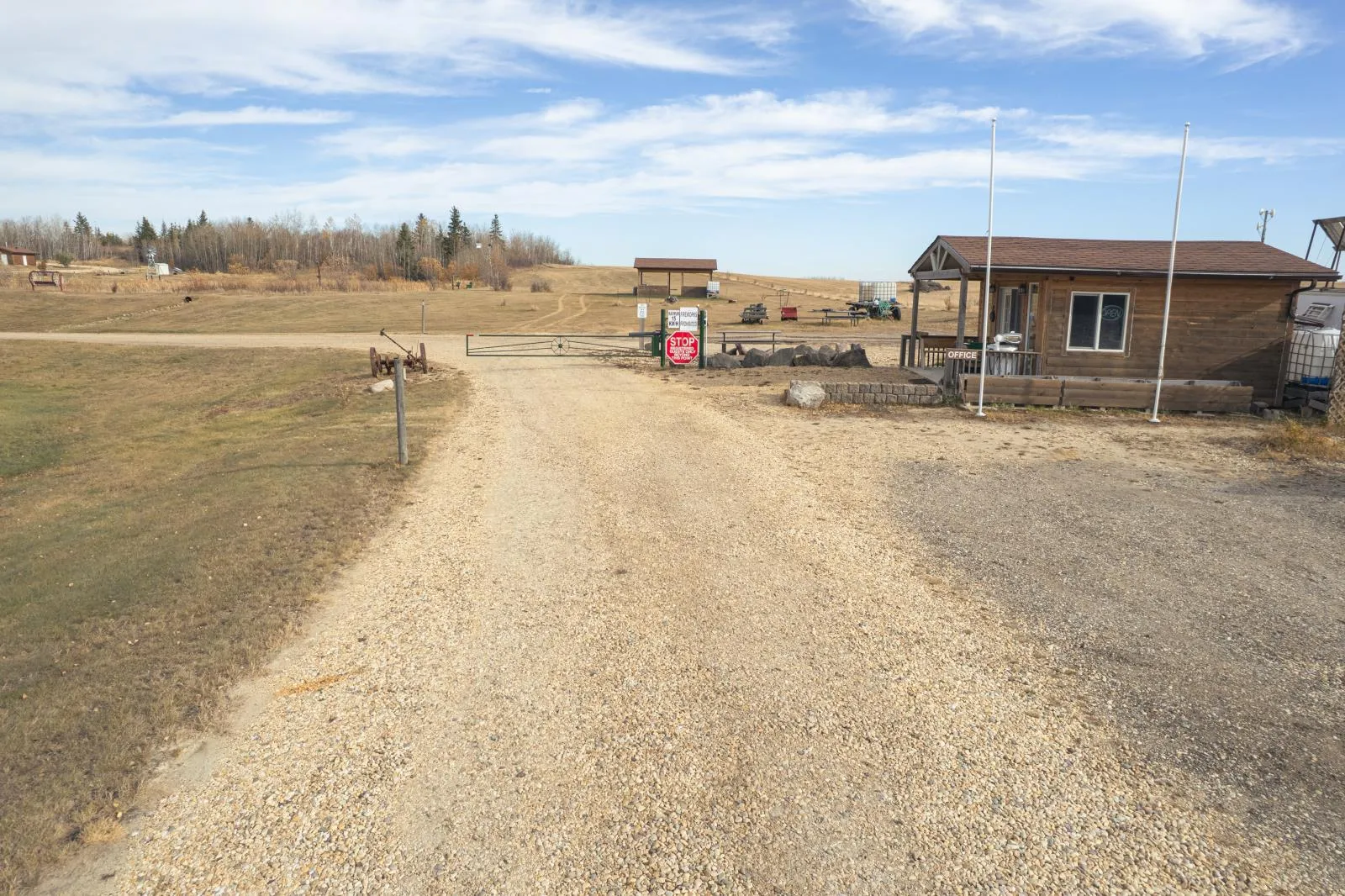 Established CREC-zoned RV park and campground situated on a large landholding, featuring looped internal road circulation, serviced RV sites, public washroom facilities, and central utility infrastructure. The property includes multiple fixed amenities such as covered picnic shelters, walking trails, playground areas, and a managed pond with dock, integrated into the overall site layout. Extensive treed areas and natural open space are incorporated throughout the site, providing buffering, privacy, and logical separation between activity zones, consistent with commercial recreation planning. The landholding also contains significant surplus land, offering long-term flexibility and potential for future expansion or reconfiguration, subject to municipal approvals and applicable planning requirements. Aerial imagery with approximate property boundaries is provided to illustrate scale and layout. Buyer to verify zoning, servicing, and permitted uses. (id:27476)