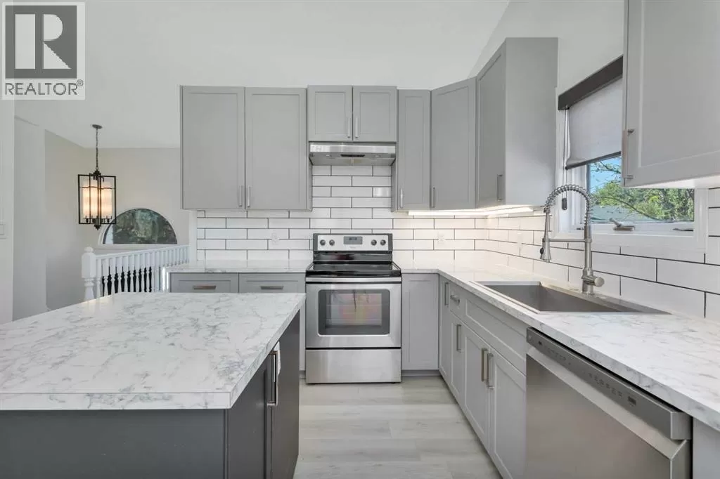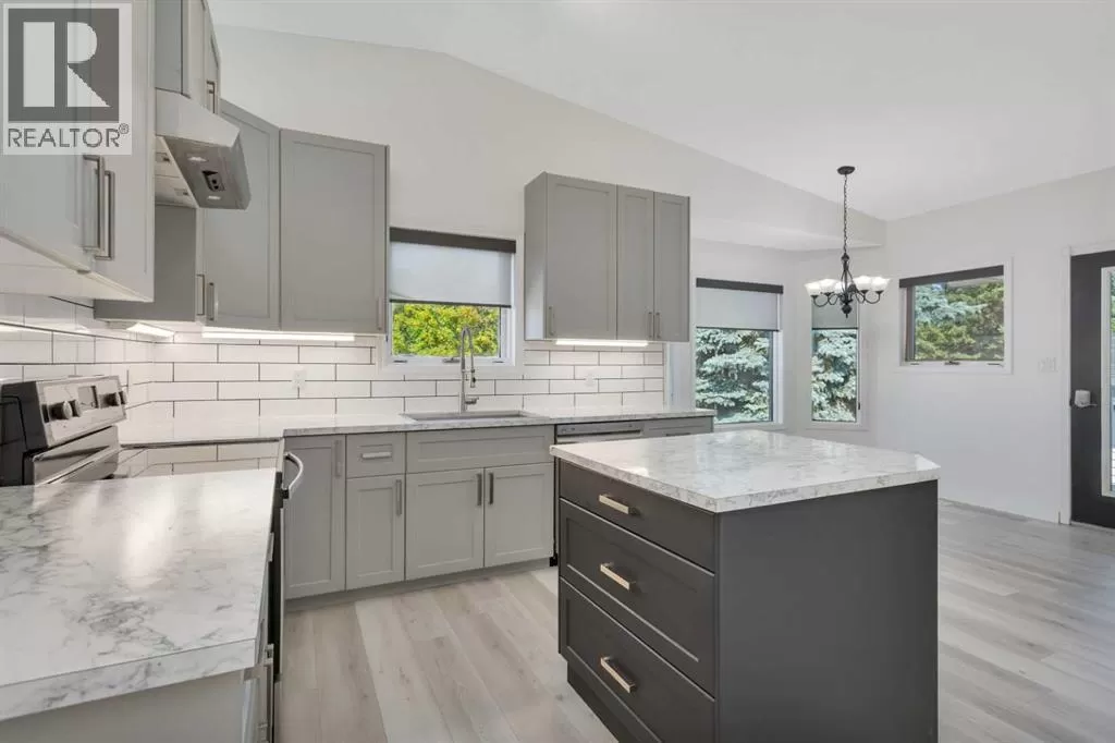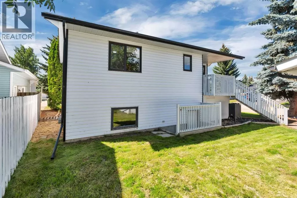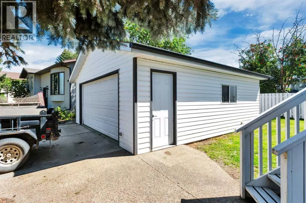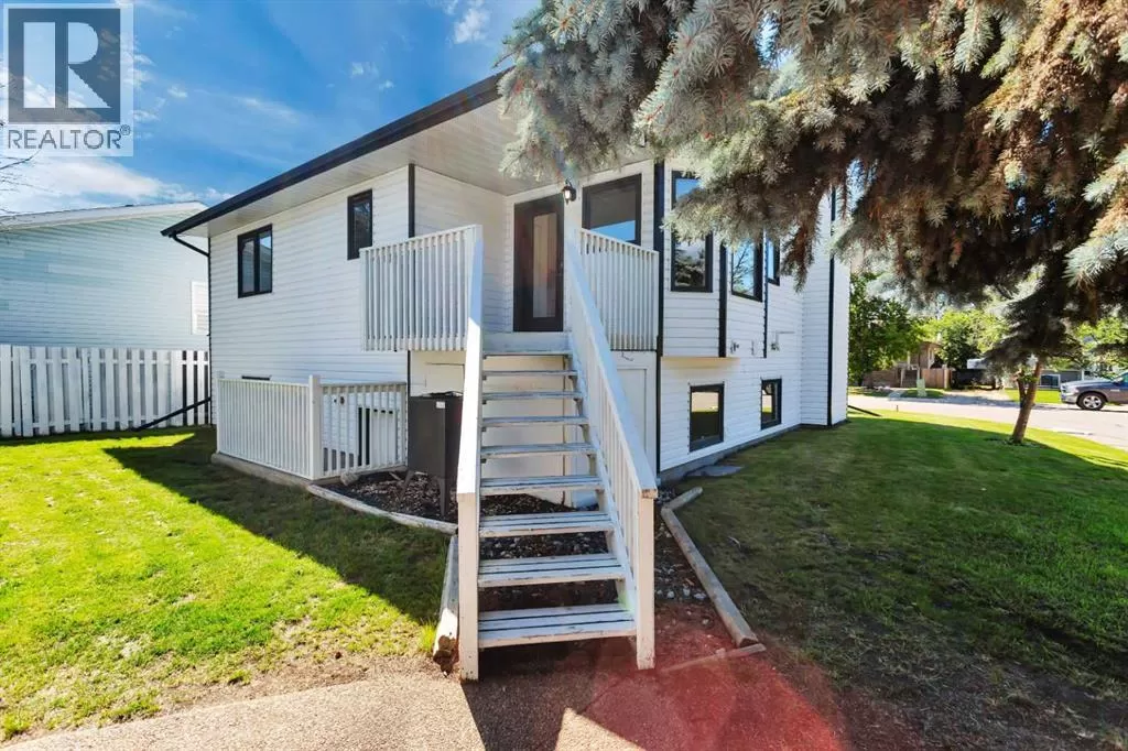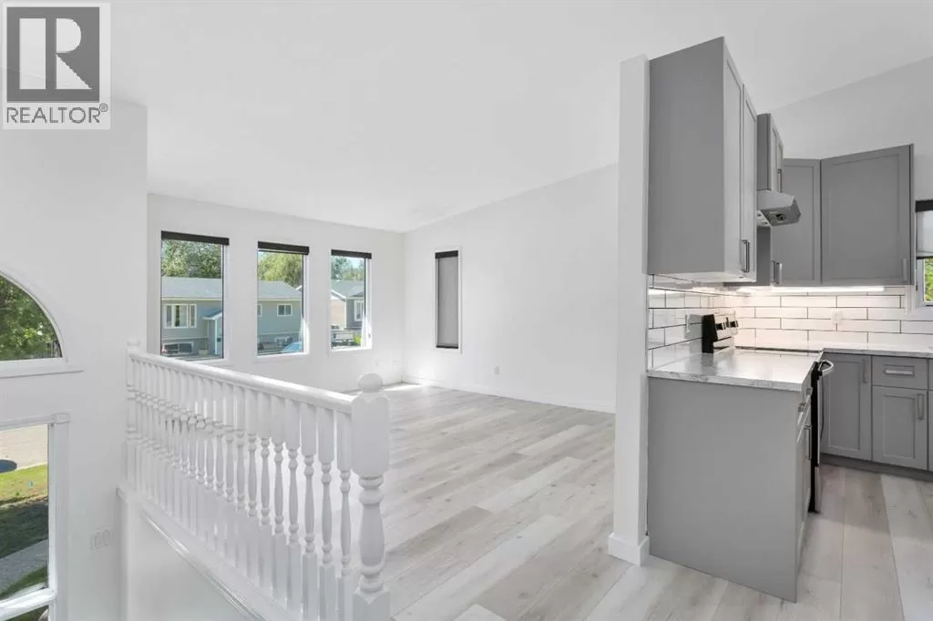 Great updates, an AMAZING location and some COOL features!11 Maple Bay is situated in the heart of Lacombe on a corner lot in this mature neighbourhood!This light filled bi-level has a great layout with fabulous curb appeal. The grand front entrance is open and inviting with access to the main or huge basement. The kitchen and living room share a soaring vaulted ceiling keeping this home big and bright! The spacious living room is west facing, keeping this bright and open! The LARGE kitchen has plenty of windows, newer cabinets, and an island with storage, new taps, fresh tile backsplash & countertops, new light fixtures and stainless steel appliances. Custom blinds, a deep stainless steel farmhouse sink and undercabinet lighting elevate this room. The bay window nook offers a great place for family meals and gatherings. There is a handy storage pantry and access to the covered deck. The bedrooms are tucked down the opposite hallway. The pretty primary bedroom features plush carpeting, a big window overlooking the yard, a walk in closet and a 3 piece bath. THere are two additional good sized bedrooms and a full 4 piece bath with a newer vanity, new backsplash, taps & mirror. The entire home has newly installed vinyl plank and features fresh paint and light fixtures. Heading into the basement, thereâs more great spaces to explore. With almost 10â ceilings, the rec room has huge windows keeping it big and bright!! There is a handy office nook which could also be converted to a bedroom if extra rooms are needed. The MAIN rec room features a FLOOR TO CEILING IMPACT screen. Perfect for virtual golf (projector not included) or even family movie nights. Thereâs a good pool table and a small dry bar for more family fun! There is also a convenient 2 piece bath tucked off this room. The other half of the basement features a big family room with a gas fireplace and additional storage. The laundry room has a wall of floor to ceiling storage cabinets along with your washer an d dryer. There is also WALK UP access to the backyard!The backyard is quiet and secluded with additional play space along the side. The garage offers great work space and parking with several windows for added light and a large garage door. Shingles and siding were replaced in 2016. You are truly STEPS to Cranna Lake and LAcombe schools in a quiet, family friendly neighbourhood. THIS is your place to call home! (id:27476)