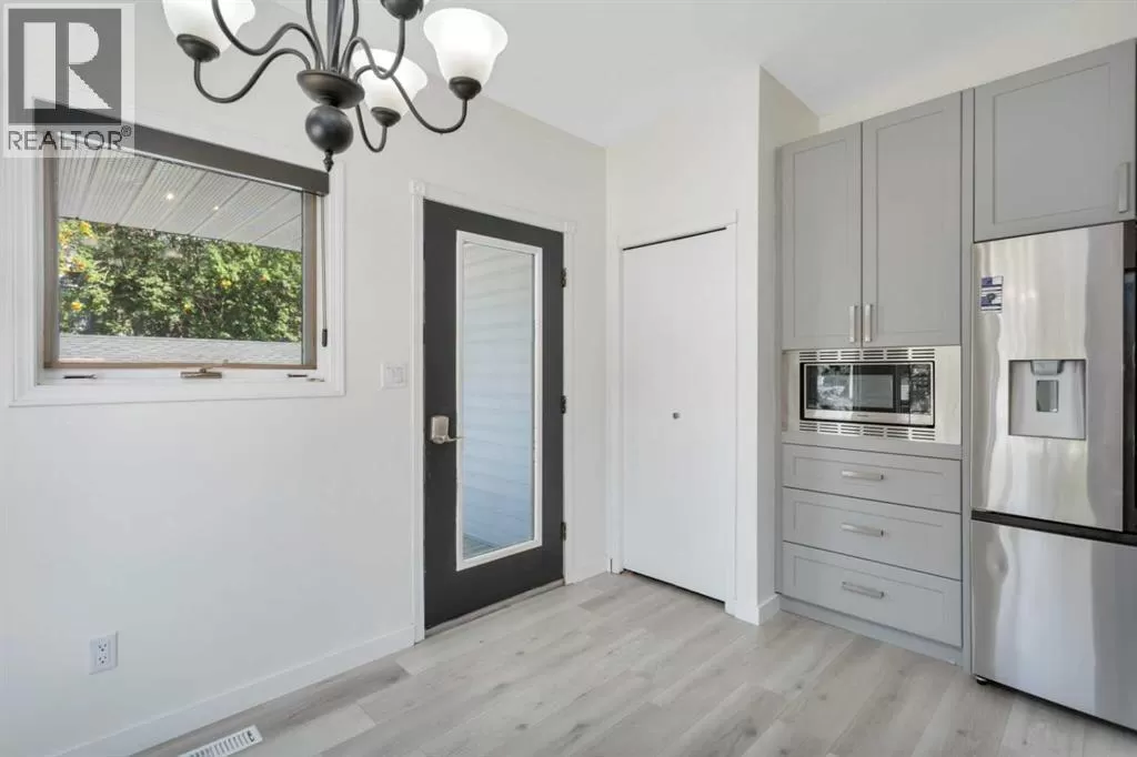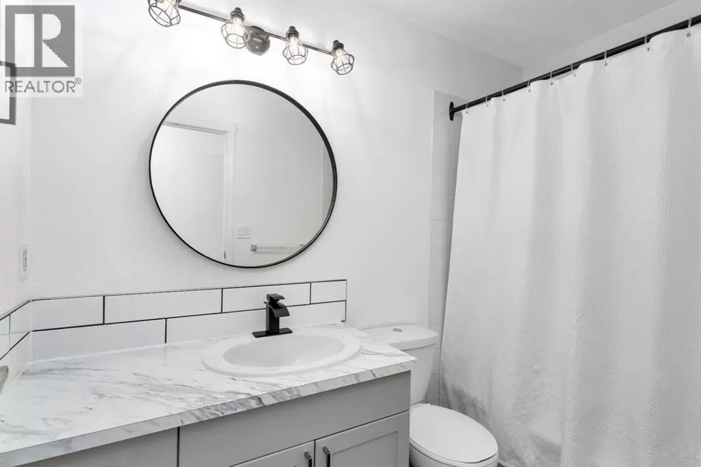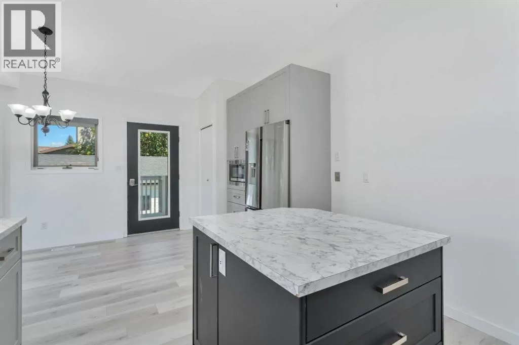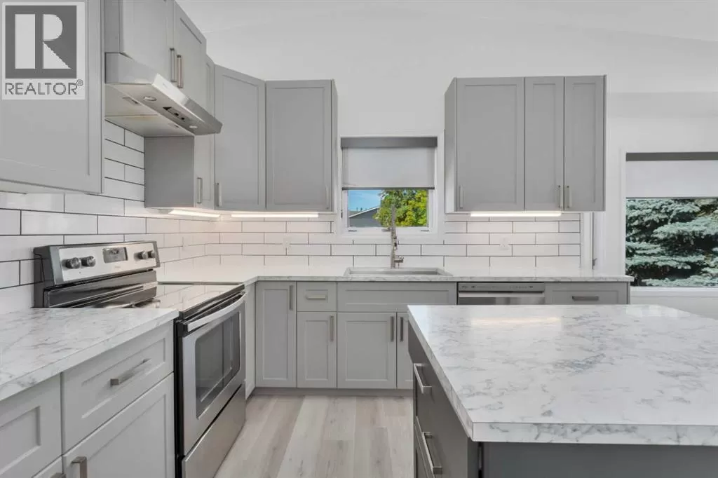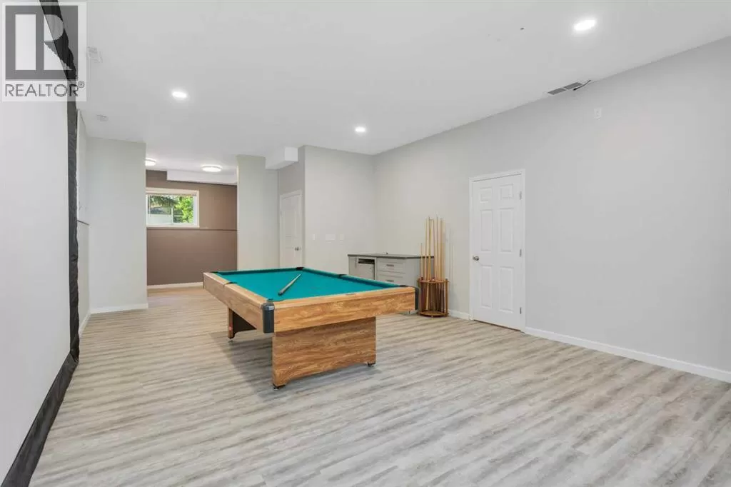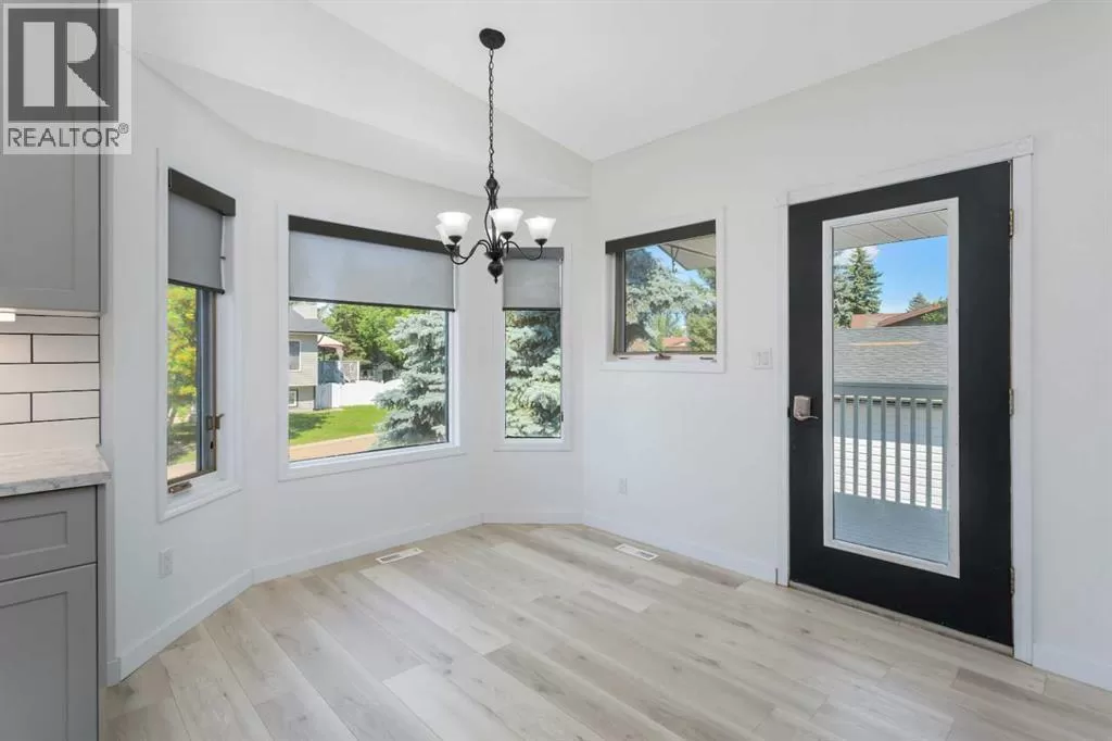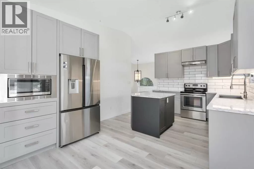 Great updates, an AMAZING location and some COOL features!11 Maple Bay is situated in the heart of Lacombe on a corner lot in this mature neighbourhood!This light filled bi-level has a great layout with fabulous curb appeal. The grand front entrance is open and inviting with access to the main or huge basement. The kitchen and living room share a soaring vaulted ceiling keeping this home big and bright! The spacious living room is west facing, keeping this bright and open! The LARGE kitchen has plenty of windows, newer cabinets, and an island with storage, new taps, fresh tile backsplash & countertops, new light fixtures and stainless steel appliances. Custom blinds, a deep stainless steel farmhouse sink and undercabinet lighting elevate this room. The bay window nook offers a great place for family meals and gatherings. There is a handy storage pantry and access to the covered deck. The bedrooms are tucked down the opposite hallway. The pretty primary bedroom features plush carpeting, a big window overlooking the yard, a walk in closet and a 3 piece bath. THere are two additional good sized bedrooms and a full 4 piece bath with a newer vanity, new backsplash, taps & mirror. The entire home has newly installed vinyl plank and features fresh paint and light fixtures. Heading into the basement, thereâs more great spaces to explore. With almost 10â ceilings, the rec room has huge windows keeping it big and bright!! There is a handy office nook which could also be converted to a bedroom if extra rooms are needed. The MAIN rec room features a FLOOR TO CEILING IMPACT screen. Perfect for virtual golf (projector not included) or even family movie nights. Thereâs a good pool table and a small dry bar for more family fun! There is also a convenient 2 piece bath tucked off this room. The other half of the basement features a big family room with a gas fireplace and additional storage. The laundry room has a wall of floor to ceiling storage cabinets along with your washer an d dryer. There is also WALK UP access to the backyard!The backyard is quiet and secluded with additional play space along the side. The garage offers great work space and parking with several windows for added light and a large garage door. Shingles and siding were replaced in 2016. You are truly STEPS to Cranna Lake and LAcombe schools in a quiet, family friendly neighbourhood. THIS is your place to call home! (id:27476)