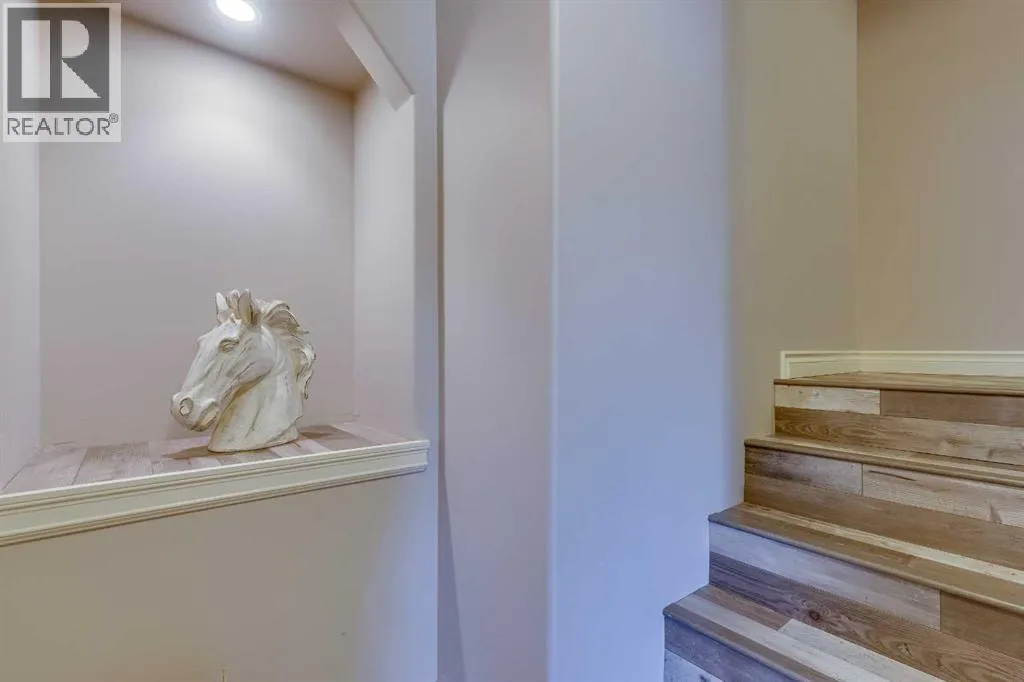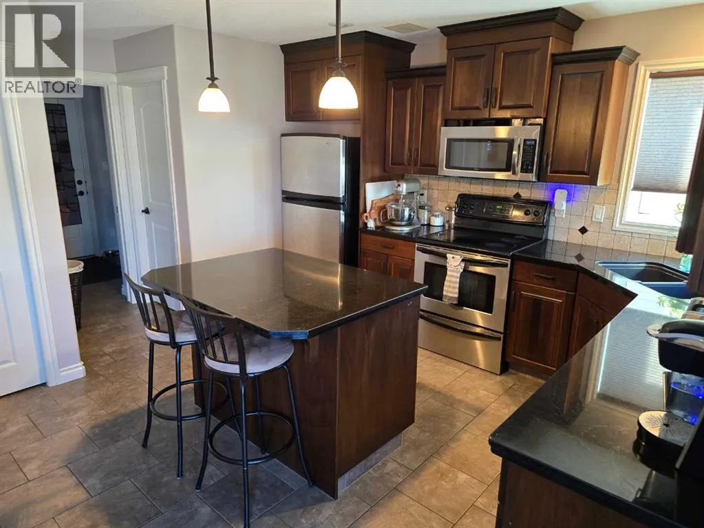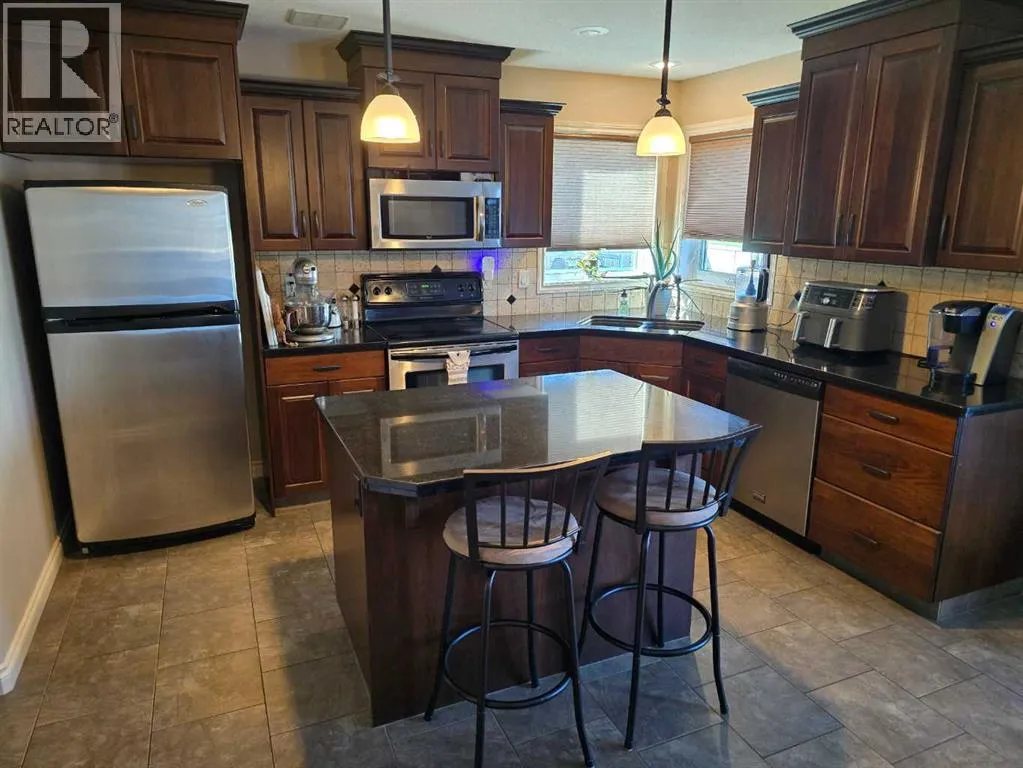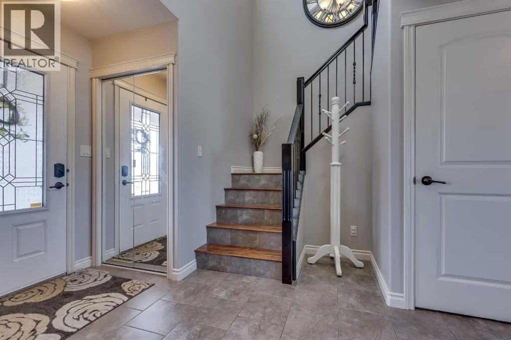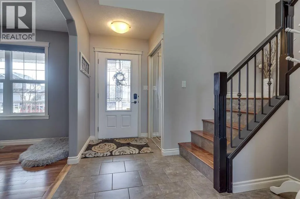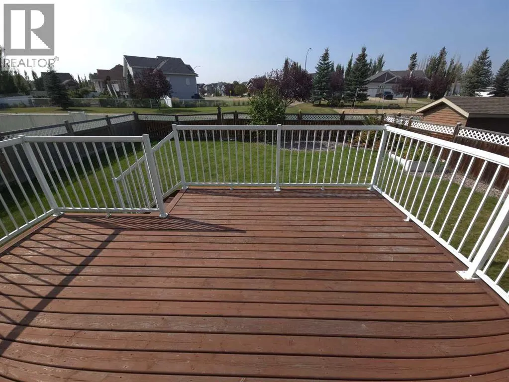 7128 Henner's Road is a terrific family home located in beautiful Lacombe, Alberta. The front yard is nicely landscaped. The polished look of the home and cute covered porch facing the morning sun will catch your eye. The fully fenced back yard is attractive and welcoming with its fruit trees, raspberry bushes, and deck that includes a natural gas line for the bbq. A big bonus is the back lane with RV/utility trailer access. Another big bonus is the fact that this home backs onto a playground and a walking path that connects to Lacombe's famous trail system - including a nearby walk around Henner's Pond. The long driveway and heated double attached garage (along with the previously mentioned RV capacity) provides the next owner with plenty of parking options. Inside, you'll be very pleased with the thoughtful plan and design. The high ceiling at the entrance and nearby library/study welcomes you with open arms. The home is filled with natural light throughout much of the day. The front room is a cozy place to have a coffee and enjoy the morning sun. The open concept kitchen and living room (with a natural gas fireplace) is a perfect place to gather while visiting with family and friends. The kitchen features black walnut cabinets, stainless steel appliances, a pantry, and a useful island with an abundance of storage. The flooring and luxurious trim adds a touch of class to the home. The laundry and 2 piece bath complete the main floor. Upstairs, you'll find 3 bedrooms and 2 full bathrooms. The master bedroom is very large, and the spa-like ensuite provides plenty of space for two. Closets (some walk-in) throughout the house include handy organizers. All the upstairs bedrooms feature blackout blinds. The basement is fully finished and includes another full, 4 piece bathroom, bedroom, and a great sized family/rec room. The utility room provides additional storage space, a high efficient furnace, and hot water on demand. The seller loves the quiet street, the convenient access to the QEII and 2A highways, the neighborhood, and the community of Lacombe. (id:27476)