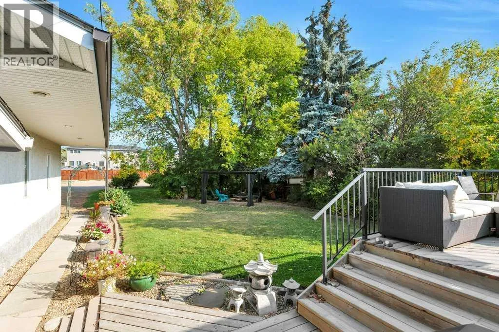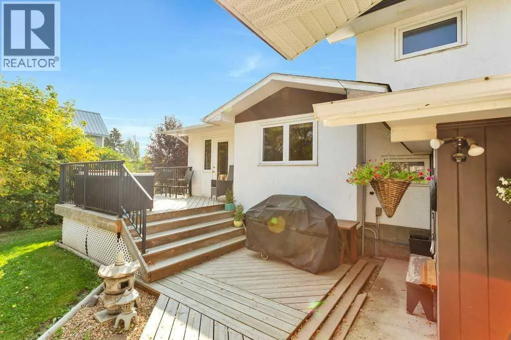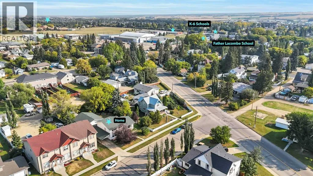 Nestled just steps away from schools, the arena, and historic downtown Lacombe, this inviting home offers the perfect combination of mid-century charm and thoughtful, modern updates. From the moment you arrive, youâll appreciate the curb appeal and care thatâs gone into maintaining this property over the years. Inside, youâll be greeted by the warmth of REFINISHED ORIGINAL HARDWOOD FLOORS and classic MAHOGANY doors and trim, which showcase the character of this 1961 home. Built-in shelving and drawers in the dining area add personality and extra storage while keeping that mid-century feel. The kitchen is light and bright with plenty of cabinets, a dedicated pantry cupboard, and a window over the sink that frames views of the mature, private yard. HEATED TILE FLOORS in the kitchen and lower entry make this space feel extra cozy during Albertaâs cooler months! This home is spacious, offering 5 BEDROOMS and 2 BATHROOMS, making it ideal for growing families. Three bedrooms are found on the upper level along with a full bath (easily updated to include a shower if desired), while the lower levels provide two additional bedrooms, a second full bathroom with a TILE SHOWER, and a generously sized family room â perfect for movie nights, kidsâ play space, or a home gym. Over the years, LIGHTING, ELECTRICAL, AND MECHANICAL SYSTEMS have been upgraded, along with NEWER WINDOWS & DOORS, ROOF, DECK & RAILING, EAVES (2024), NEWER APPLIANCES (approx. 5 yrs) NEW INSULATION and even a NEW SEWER LINE with BACKFLOW VALVE, so you can enjoy a home thatâs been cared for from top to bottom. Step outside and take in the impressive 75â x 160â LOT! Thereâs room to park an RV or boat, space for kids and pets to play, and even room to garden or add outdoor features if you wish. The oversized 32â x 26â DETACHED GARAGE is only 15 years old and offers a 10â DOOR for trucks or toys, plus a gas line for future heat. Thoughtful design means the garage overhang keeps rain and snow off the walkway betwee n the garage and the house, making winter days a little easier. The home also has a LONG DRIVEWAY and CARPORT along the side â great for multiple vehicles. The current owners considered converting the carport area into a sitting room or sunroom, giving the next owners a chance to create a beautiful transition space between indoors and outdoors. The yard is PARTIALLY FENCED with a tall privacy fence on the one side, and the garage is perfectly positioned â creating a private backyard retreat. Enjoy warm summer evenings around the FIREPIT, or entertain friends on the LARGE DECK just off the dining room. This is a home that truly offers the best of both worlds â vintage charm, modern comfort, and a location thatâs hard to beat. Surrounded by other character homes on a quiet, friendly street and just a short stroll to Lacombeâs downtown shops, cafes, schools, and recreation, youâll love being part of this welcoming community. All thatâs left to do is move in and enjoy! (id:27476)