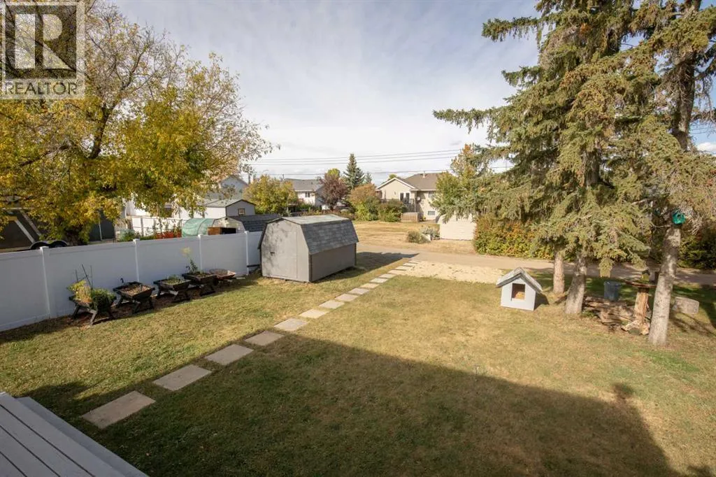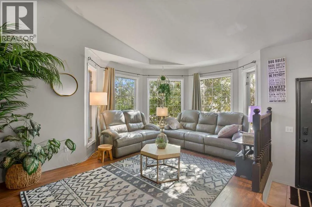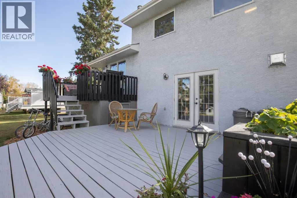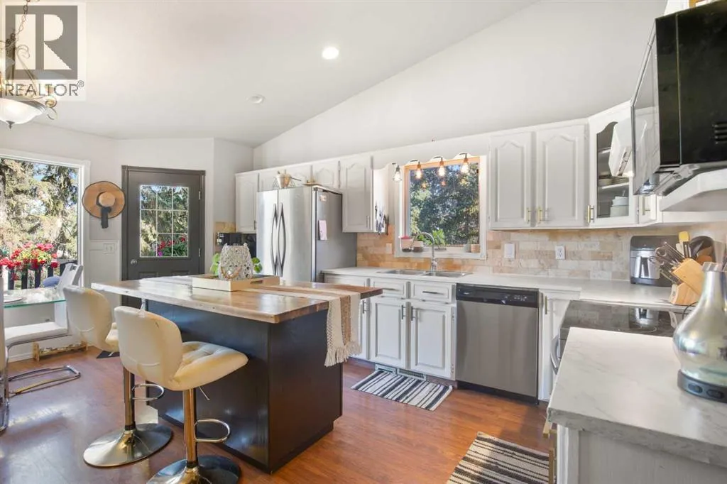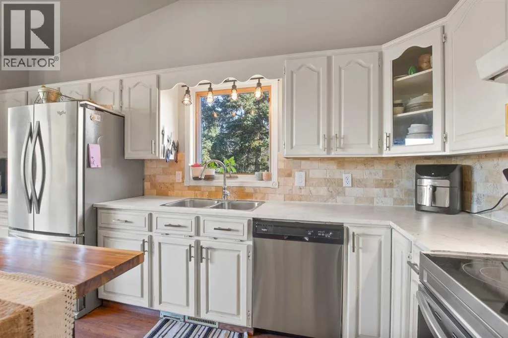 Welcome to this beautiful 5-bedroom home set on a large, private lot surrounded by mature trees and birdsongâoffering the tranquility of country style living with the convenience of town amenities. And best of all, there are no sidewalks to shovel in the winter! Inside, youâll find a bright and inviting main floor with vaulted ceilings that create a sense of openness and generate natural light throughout. There's plenty of cupboard space, a large pantry area, and good looking stainless steel appliances in the kitchen. The kitchen island is a great gathering spot for friends and family. Upstairs, the spacious master bedroom provides plenty of room for relaxation. Two additional bedrooms, a refreshed full bathroom with large vanity, and a dedicated laundry room complete the upstairs. You'll appreciate the all-in-one washer/dryer combo that adds convenience, saved space, and efficiency to your laundry tasks. The lower two levels feature a recently finished 2-bedroom, 1-bathroom basement suite (illegal) - perfect for extended family and guests. With a separate entrance on the North (backyard) side of the house and back lane parking, this suite is in demand in today's tough-to-find-a-decent rental world. It contains its own kitchen with stainless steel appliances, sizeable living room area, two bedrooms, an updated bathroom, extra storage, and a separate laundry area with washer and dryer. Some of the updates throughout the home include flooring, paint, countertops, and tile. All appliances on the main levels and in the suite are included in the sale. 61 Pickwick Lane is ideally situated on a desirable City of Lacombe/English Estates lot with a peaceful country feel - offering plenty of space to play, garden, or simply relax with friends and family. The natural gas bbq on the two-tiered deck, the shed, and garden boxes are included. Youâll be pleased with the double garage for secure parking and extra storage. The driveway and backyard pad provide additiona l parking for vehicles, work trailers, RVs, and/or other toys. English Estates is quiet, safe, and ideally located near shopping, coffee, restaurants, playgrounds, parks, ball diamonds, schools. It is also connected to Lacombe's excellent walking/biking trail system. The home offers quick access to the primary roads of Alberta (Highways 2A and the QEII) - making commuting a breeze.. This home offers space, versatility, and natural beautyâeverything youâve been looking for. (id:27476)