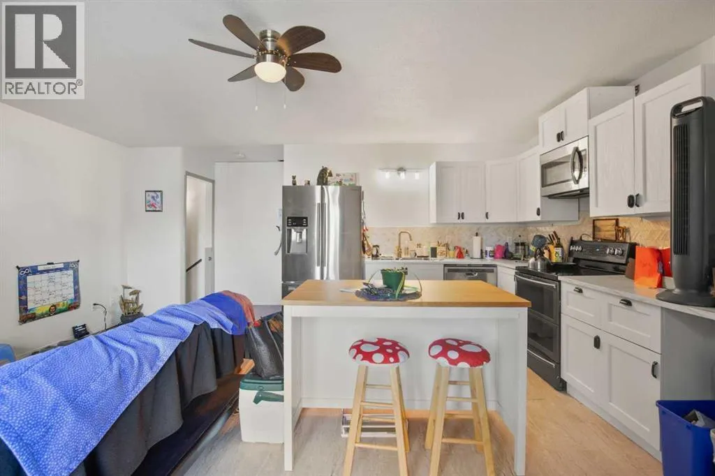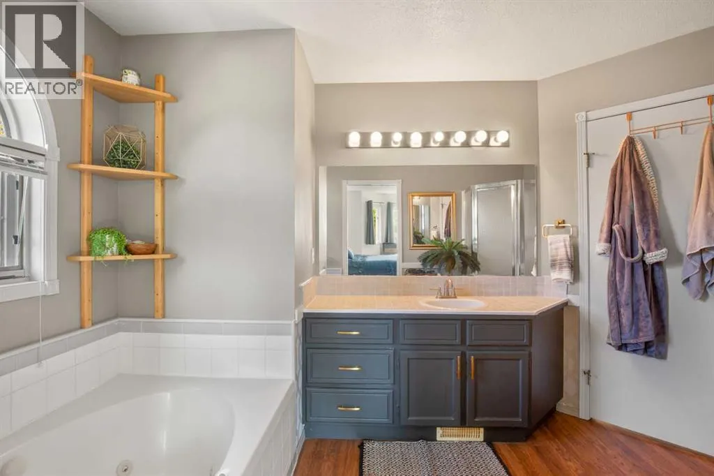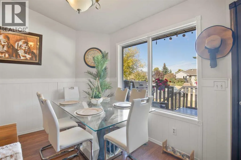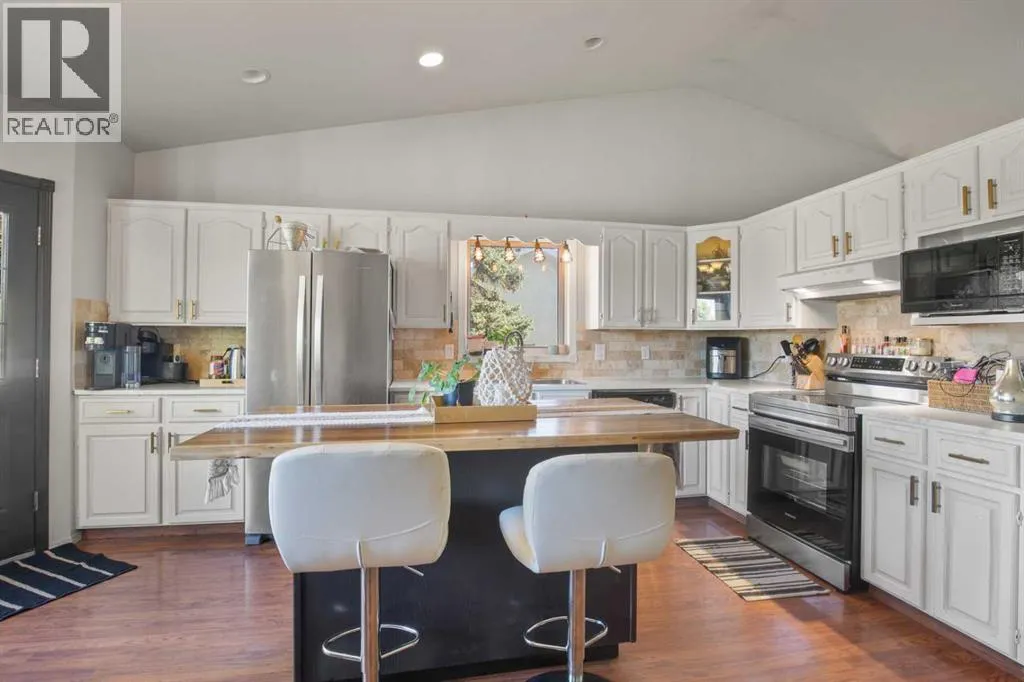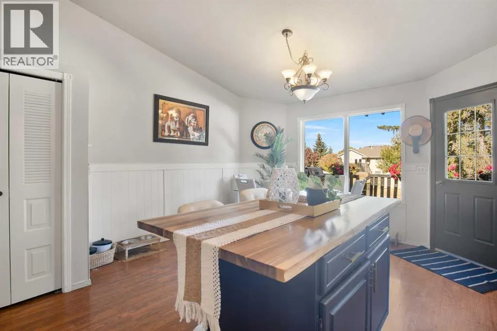 Welcome to this beautiful 5-bedroom home set on a large, private lot surrounded by mature trees and birdsongâoffering the tranquility of country style living with the convenience of town amenities. And best of all, there are no sidewalks to shovel in the winter! Inside, youâll find a bright and inviting main floor with vaulted ceilings that create a sense of openness and generate natural light throughout. There's plenty of cupboard space, a large pantry area, and good looking stainless steel appliances in the kitchen. The kitchen island is a great gathering spot for friends and family. Upstairs, the spacious master bedroom provides plenty of room for relaxation. Two additional bedrooms, a refreshed full bathroom with large vanity, and a dedicated laundry room complete the upstairs. You'll appreciate the all-in-one washer/dryer combo that adds convenience, saved space, and efficiency to your laundry tasks. The lower two levels feature a recently finished 2-bedroom, 1-bathroom basement suite (illegal) - perfect for extended family and guests. With a separate entrance on the North (backyard) side of the house and back lane parking, this suite is in demand in today's tough-to-find-a-decent rental world. It contains its own kitchen with stainless steel appliances, sizeable living room area, two bedrooms, an updated bathroom, extra storage, and a separate laundry area with washer and dryer. Some of the updates throughout the home include flooring, paint, countertops, and tile. All appliances on the main levels and in the suite are included in the sale. 61 Pickwick Lane is ideally situated on a desirable City of Lacombe/English Estates lot with a peaceful country feel - offering plenty of space to play, garden, or simply relax with friends and family. The natural gas bbq on the two-tiered deck, the shed, and garden boxes are included. Youâll be pleased with the double garage for secure parking and extra storage. The driveway and backyard pad provide additiona l parking for vehicles, work trailers, RVs, and/or other toys. English Estates is quiet, safe, and ideally located near shopping, coffee, restaurants, playgrounds, parks, ball diamonds, schools. It is also connected to Lacombe's excellent walking/biking trail system. The home offers quick access to the primary roads of Alberta (Highways 2A and the QEII) - making commuting a breeze.. This home offers space, versatility, and natural beautyâeverything youâve been looking for. (id:27476)