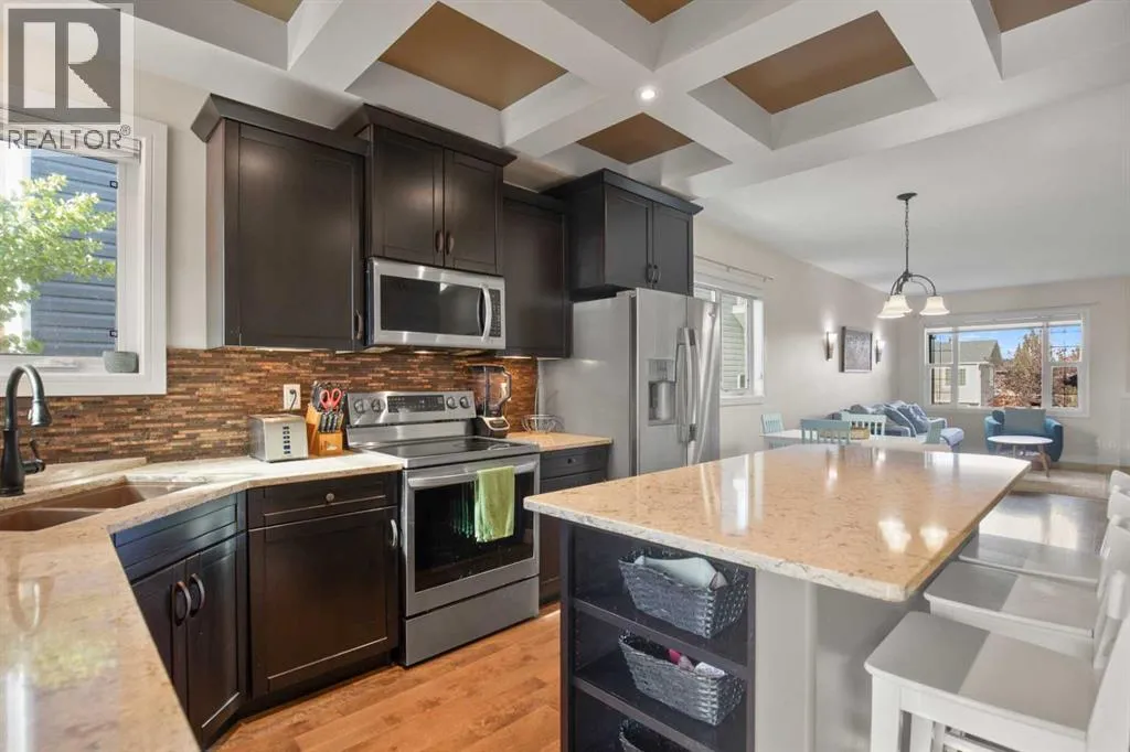 ABSOLUTELY GORGEOUS Modern Family Friendly Home in Iron Wolf. You'll love this fully finished 4 bedroom, 3 bathroom home backing the green space. This home is clean, bright and modern. You'll love the floor plan of this home, with open plan living room/dining room/kitchen. The main floor features beautiful hardwood flooring. The kitchen has a beautiful tray ceiling with pot light inset above the island. The kitchen has quartz countertops and ample cabinet and counter space for cooking and entertaining. The owner's suite is very spacious, with room for the largest furniture. It has a large walk-in closet and full ensuite bathroom with jetted tub. The second bedroom and full bathroom are on this floor as well. There is a very large main floor laundry room for your convenience, with washer and dryer included. The basement is fully finished with a large open plan family room, two additional bedrooms and full bathroom. The floor plan and windows would allow for a fifth bedroom to be framed in if needed. Recent improvements in 2023 include a new high efficiency furnace, hot water tank, and carpet in the basement. The low maintenance yard is fully fenced with composite fencing and the gorgeous covered composite deck overlooks the open fields. You'll never have neighbours behind you! The yard is beautifully finished with fire pit area, lush lawn, and with a shed and greenhouse included. This home is move-in ready! (id:27476)