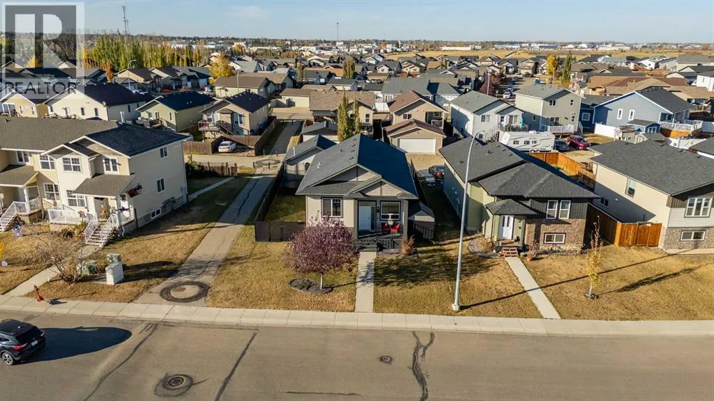 Welcome to this beautifully maintained south facing 5-bedroom, 3-bathroom home in the family-friendly community of Mackenzie Ranch. Thoughtfully designed for functionality and comfort, this home offers a bright and open layout on the main floor, along with a well-equipped illegal basement suiteâperfect for extended family or added flexibility. The main floor features a spacious living area filled with natural light, a welcoming kitchen with pantry, and a comfortable dining space ideal for gatherings. Youâll find three bedrooms and two full bathrooms, including a primary suite with a private ensuite. The lower level is set up for convenience and privacy, featuring a full kitchen, cozy living room, two large bedrooms, bathroom & laundry / utility room. Both levels have separate laundry facilities, making shared living easy and efficient. Step outside to enjoy the beautifully landscaped lot, complete with underground sprinklers and garden irrigation lines ready for drippers. Thereâs no shortage of storage hereâwith shelving in the double detached garage, a landscaping shed, enclosed under-deck storage, and ample space throughout the home. The double detached garage is heated with a natural gas furnace, and thereâs also a gas line to the deck for your BBQ. Additional features include central air conditioning to keep you cool through the summer months. This home offers quick and easy access to Highway 12 for convenient commutes to Joffre or the Prentiss Gas Plants. (id:27476)