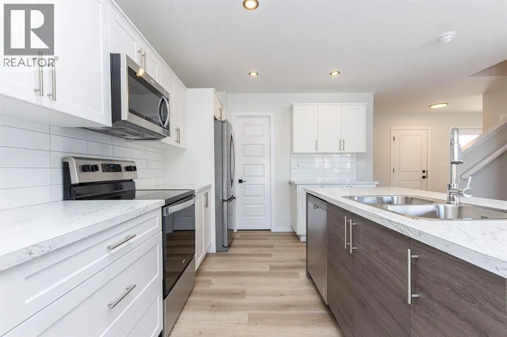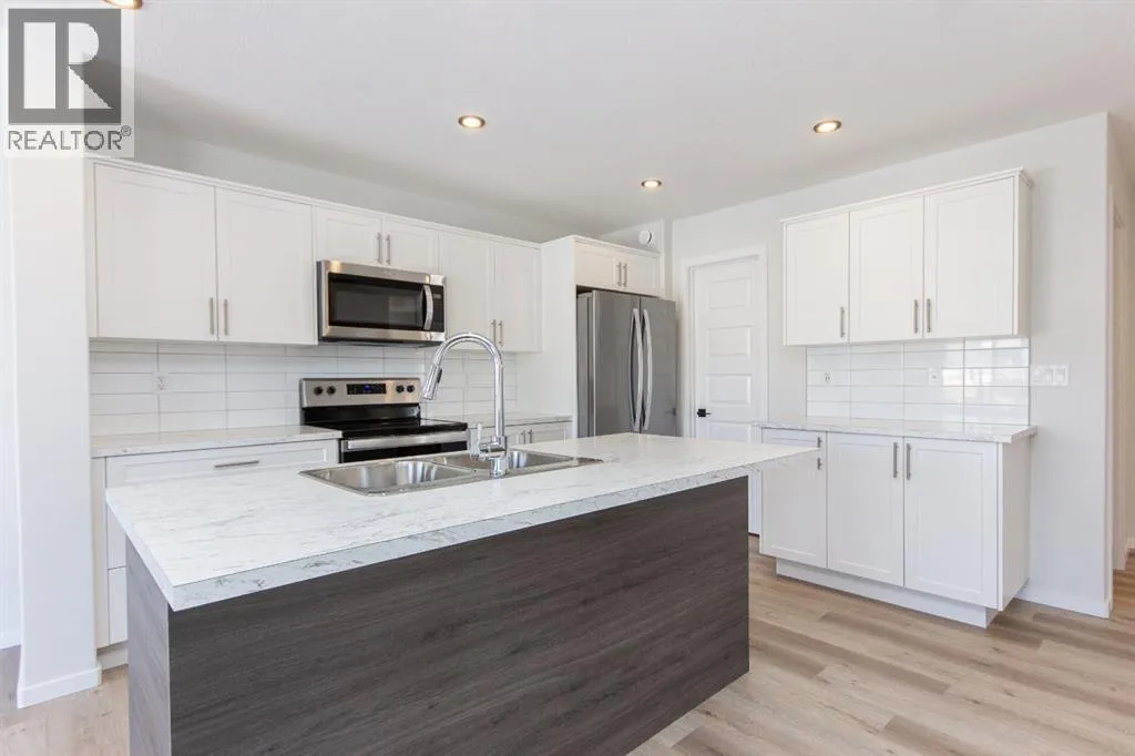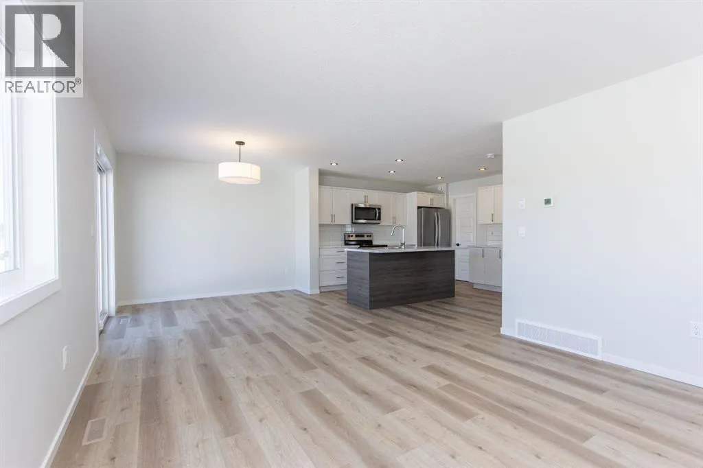 Situated just steps from a large green space, parks, playgrounds, Terrace Ridge school, and scenic walking paths, this brand new Laebon built home in the desirable subdivision of Trinity Crossing is ready for its new family! Offering 1707 square feet, this 2 storey Paxton floorplan offers a wide open main floor layout, an attached double garage, and a large second floor bonus room! The kitchen is well appointed with two toned raised cabinetry, stainless steel appliances, quartz countertops, a large island with eating bar, and a convenient walk in pantry. The living area is spacious and bright, and the adjacent dining area offers access to the back deck through large sliding patio doors. Upstairs you'll find the spacious master bedroom suite with a large walk-in closet, and your own private 4 pce ensuite. Two kids rooms share a 4 pce bathroom, and you'll appreciate the convenience of upper floor laundry close to all the bedrooms. You'll love ending your day in the huge bonus room, which makes the perfect space for family movie nights or a relaxing space to wind down. The attached garage is insulated, drywalled, and taped. If you need more space, the builder can complete the basement development for you, and allowances can also be provided for blinds and a washer and dryer. Poured concrete front driveway, front sod, and rear topsoil are included in the price and will be completed as weather permits. 1 year builder warranty and 10 year Alberta New Home Warranty are included. Taxes have yet to be assessed. Home is under construction and has an estimated completion date of mid January 2026. Photos are examples from a previous built home of this floor plan, and do not necessarily reflect the finishes and colours used in this home. (id:27476)