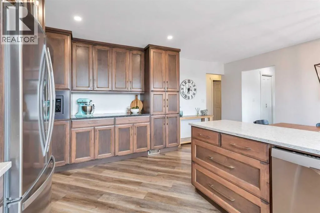 MLS® Listing DescriptionAre you looking for an updated family home in a desirable neighbourhood with five bedrooms and incredible views? Welcome to 7 Westview Drive â this beautifully renovated bi-level offers nearly 3,600 sq. ft. of TOTAL living space designed for comfort, entertaining, and everyday living.The open-concept main floor features warm rustic vinyl plank flooring, crisp white paint and trim, and a spacious living room anchored by a stunning floor-to-ceiling slate wall with a gas fireplace (2022).The fully renovated kitchen (2021) impresses with custom maple cabinetry, quartz and granite countertops, stainless steel appliances, and bold modern lighting. Large windows fill the space with natural light â perfect for gathering and entertaining.Just off the kitchen, enjoy a bright additional living area with floor-to-ceiling windows and a wood-burning fireplace (WETT certified). This flexible room is ideal as another entertaining area, formal dining area, music room, with access to the deck and backyard. The primary bedroom includes sliding doors to the deck, a spacious PAX wardrobe, and a luxury ensuite with dual sinks, tile flooring, and a spa shower with multiple jets. Two additional bedrooms and a renovated 4-piece bath complete the main level.Downstairs, the fully finished basement offers a theatre room with a soundproof wall (cozy couch included), two more large bedrooms, an updated 3-piece bath, dedicated laundry room with new washer and dryer, and a gym area with custom built-in lockers and garage access.The heated garage includes a workbench and room for vehicles. Outside, enjoy a large deck, newer shed, lush lawn, and a beautiful new fence â ready for family fun and entertaining.Additional Features: Central Air Conditioning (2022), Wide lot with RV/off-street parking, New playground across the street, Direct access to Lacombeâs trail system, Fantastic curb appeal and great neighbours7 Westview Drive combines space, style, and location â th e perfect place to call home! (id:27476)