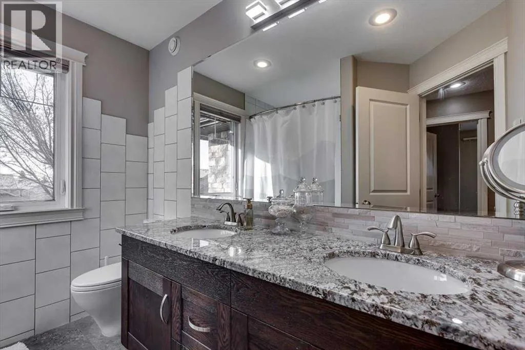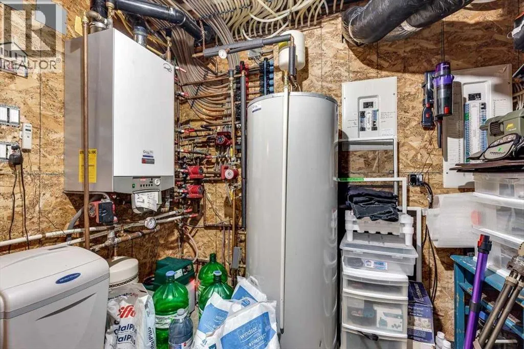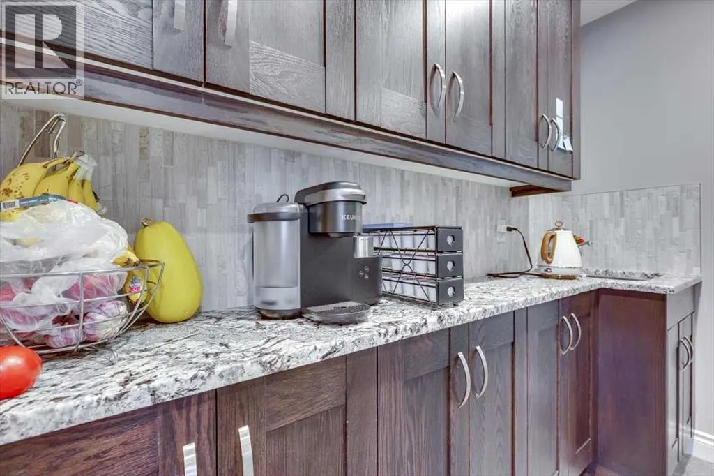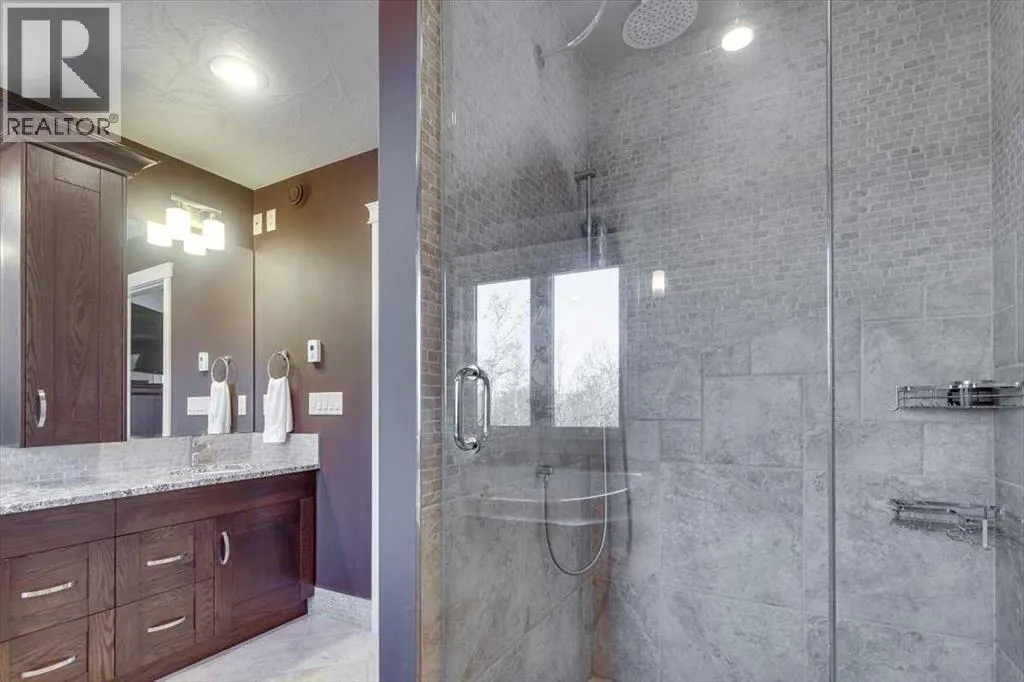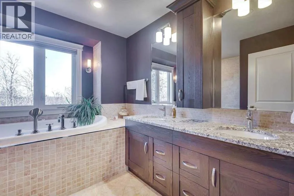 Beautifully finished 2 Storey home, tucked away in a peaceful community, with a Triple Attached Garage, and backing on to the picturesque walking trails of Elizabeth Park. Upon entry, you are greeted by a tiled foyer, nicely appointed Den/Office that comes with a sink, and gorgeous built in cabinetry. Further on in, you will be immediately drawn to the flood of natural light throughout the 2 Storey living room, vaulted ceiling, accented by the stone finishing on the fireplace from floor to ceiling. Plenty of high end finishes in the kitchen, including quartz countertops, soft-close drawers, full tile backsplashes, large kitchen island, and walk-through pantry with a prep sink. The dining room is surrounded by more windows, and provides access to the huge deck, partially covered, with Gas hookup for the BBQ. The back yard also includes a garden shed with siding and finishes that match the house, along with a concrete path & pad for the firepit area. The main floor also includes a 2 piece bathroom, and of course access to the heated Triple Attached Garage, which also has a separate entrance into the back yard. Upstairs features an area overlooking the living room, convenient laundry room next to the bedrooms, a 5 piece main bathroom with dual sinks, along with 3 bedrooms. The primary bedroom is an oasis, with a couple of windows overlooking the living room, and 5 piece ensuite that features a pedestal tub with tile surround, dual sinks, nicely tiled shower, and walk in closet. Downstairs features a recreation area set up for pure entertainment, with full wet bar, a feature nook, the fourth bedroom currently set up as a gym, and a 3 piece bathroom with steam shower! Additional features include LED lighting throughout, efficient in-floor heating serviced by a boiler system, oversized H/W tank, and water softening equipment. Recent upgrades include newly installed A/C, the in-floor heating system has been flushed and new glycol installed, and the cushion tanks, PSV's and zone valves have been replaced. Washer & Dryer, and the induction stove top in the kitchen were replaced about 2 years ago. (id:27476)