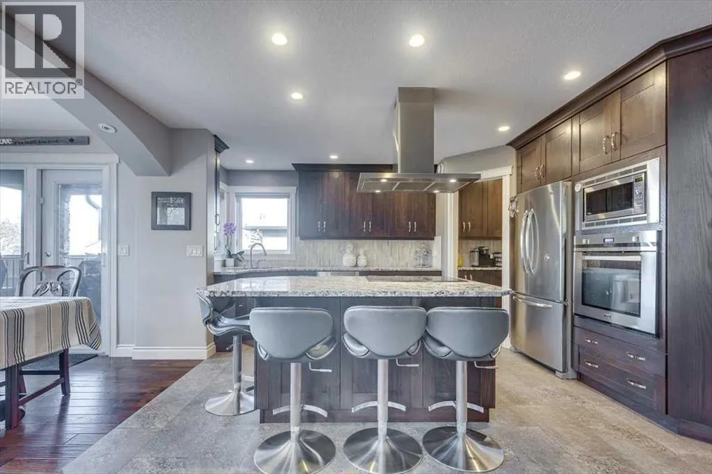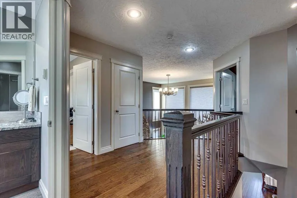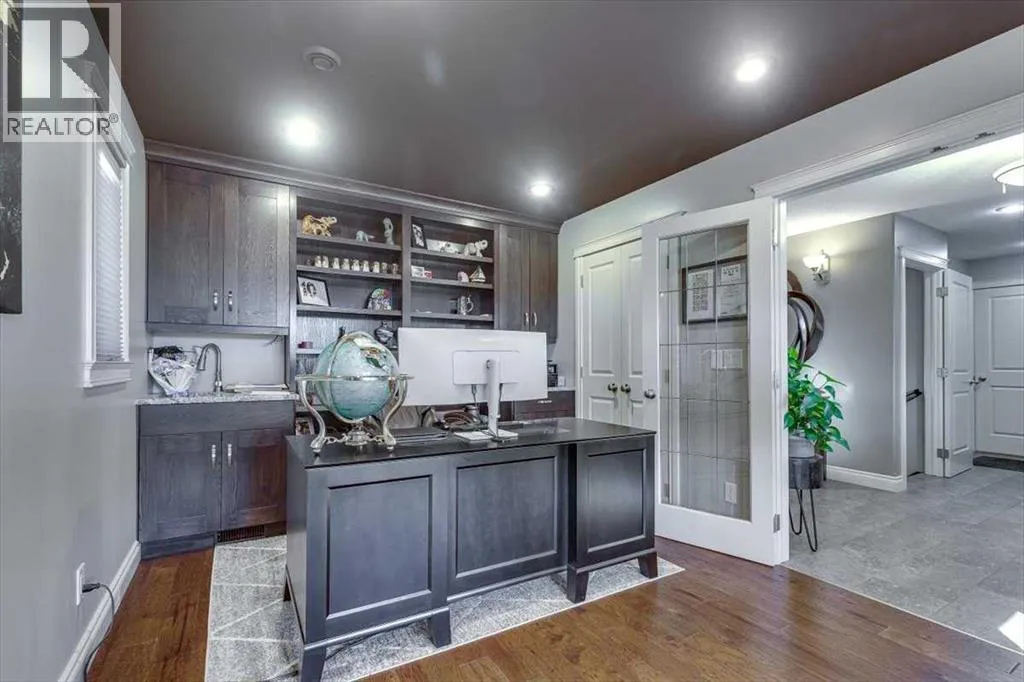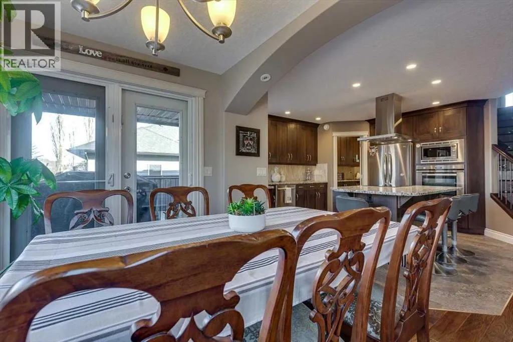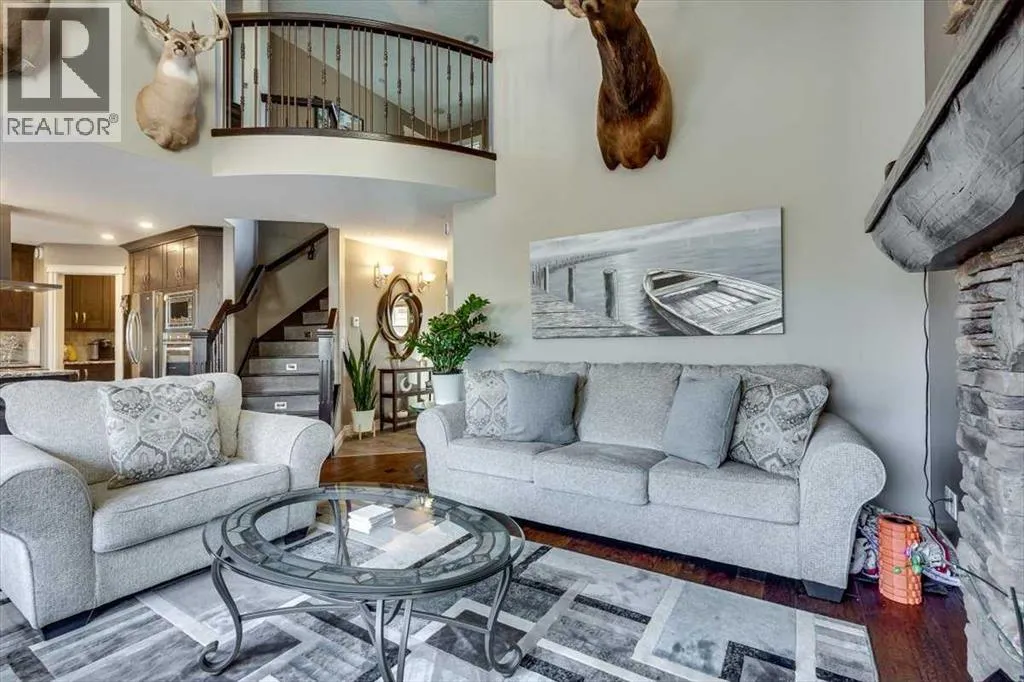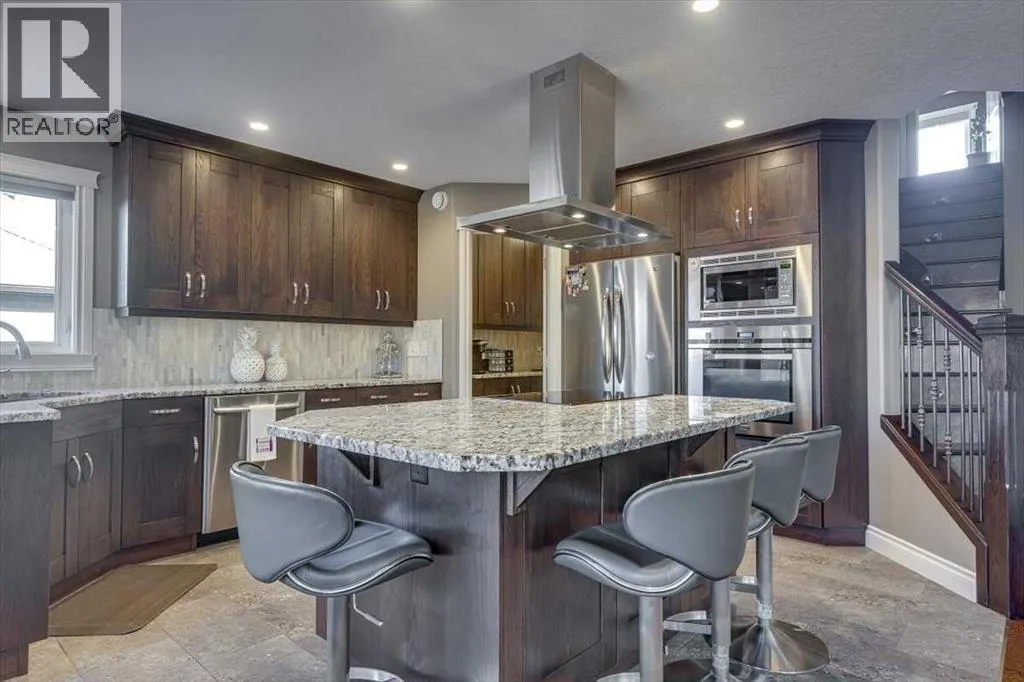 Beautifully finished 2 Storey home, tucked away in a peaceful community, with a Triple Attached Garage, and backing on to the picturesque walking trails of Elizabeth Park. Upon entry, you are greeted by a tiled foyer, nicely appointed Den/Office that comes with a sink, and gorgeous built in cabinetry. Further on in, you will be immediately drawn to the flood of natural light throughout the 2 Storey living room, vaulted ceiling, accented by the stone finishing on the fireplace from floor to ceiling. Plenty of high end finishes in the kitchen, including quartz countertops, soft-close drawers, full tile backsplashes, large kitchen island, and walk-through pantry with a prep sink. The dining room is surrounded by more windows, and provides access to the huge deck, partially covered, with Gas hookup for the BBQ. The back yard also includes a garden shed with siding and finishes that match the house, along with a concrete path & pad for the firepit area. The main floor also includes a 2 piece bathroom, and of course access to the heated Triple Attached Garage, which also has a separate entrance into the back yard. Upstairs features an area overlooking the living room, convenient laundry room next to the bedrooms, a 5 piece main bathroom with dual sinks, along with 3 bedrooms. The primary bedroom is an oasis, with a couple of windows overlooking the living room, and 5 piece ensuite that features a pedestal tub with tile surround, dual sinks, nicely tiled shower, and walk in closet. Downstairs features a recreation area set up for pure entertainment, with full wet bar, a feature nook, the fourth bedroom currently set up as a gym, and a 3 piece bathroom with steam shower! Additional features include LED lighting throughout, efficient in-floor heating serviced by a boiler system, oversized H/W tank, and water softening equipment. Recent upgrades include newly installed A/C, the in-floor heating system has been flushed and new glycol installed, and the cushion tanks, PSV's and zone valves have been replaced. Washer & Dryer, and the induction stove top in the kitchen were replaced about 2 years ago. (id:27476)
