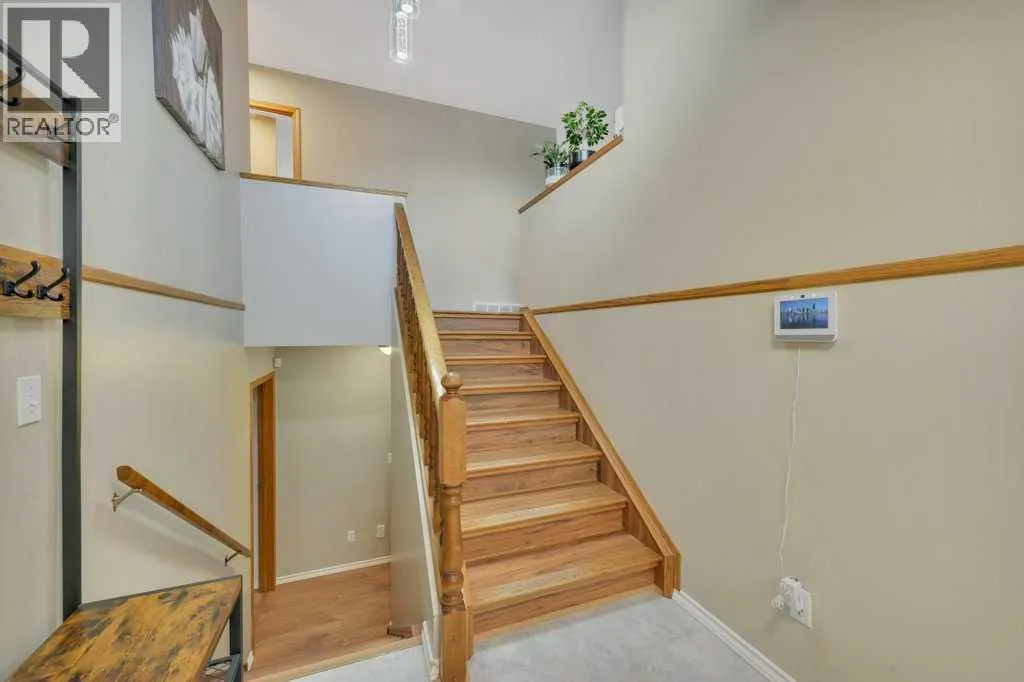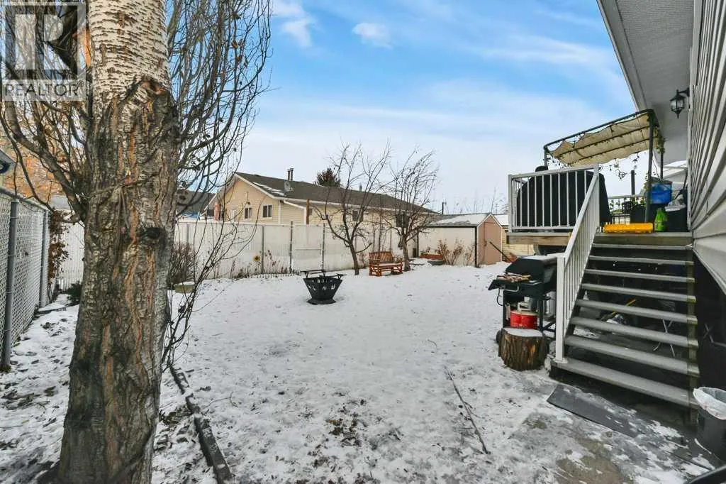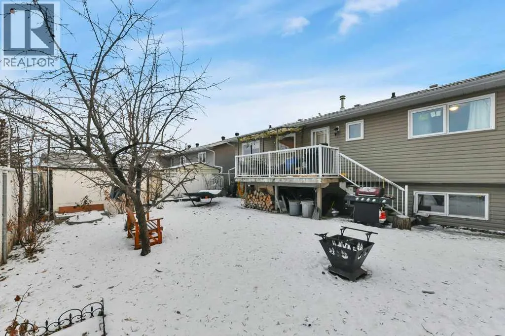 Welcome to this well-maintained 4-bedroom, 3-bathroom bi-level located in the sought-after Hearthstone subdivision in Lacombe. Thoughtful updates throughout include new kitchen appliances, new lighting in the kitchen, dining room, upstairs hallway and downstairs family room, new vinyl windows and window coverings on the main floor 2025. New front entry door, storm door and rear entry door 2025. Updated flooring, trim, and paint, a 2-year-old hot water tank, and 30-year shingles installed just 5 years ago, offering comfort and peace of mind. The home features bright, inviting living spaces designed for everyday living and entertaining. Step outside to enjoy a cozy front patio shaded by a mature tree, a rear deck perfect for BBQs and relaxation, along with fruit trees, garden beds, and a storage shed for the avid gardener. A double attached garage completes the package, all conveniently located close to schools, shopping, and playgrounds, making this a move-in-ready home ideal for families and lifestyle-focused buyers. (id:27476)