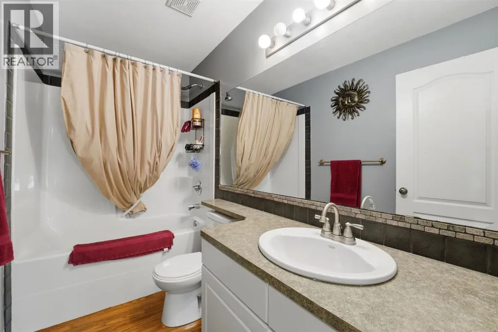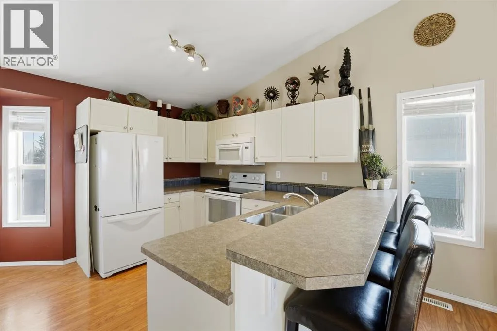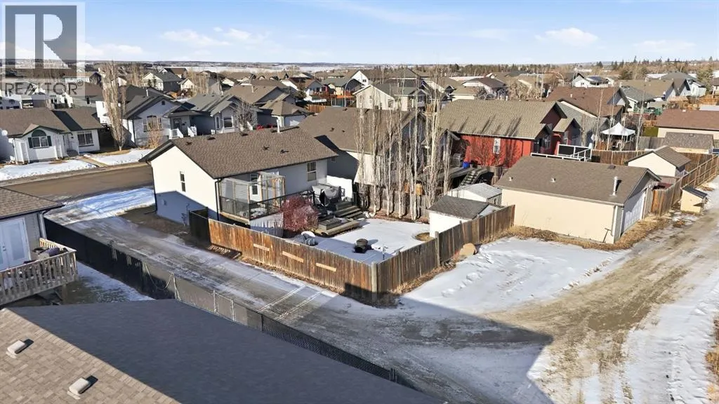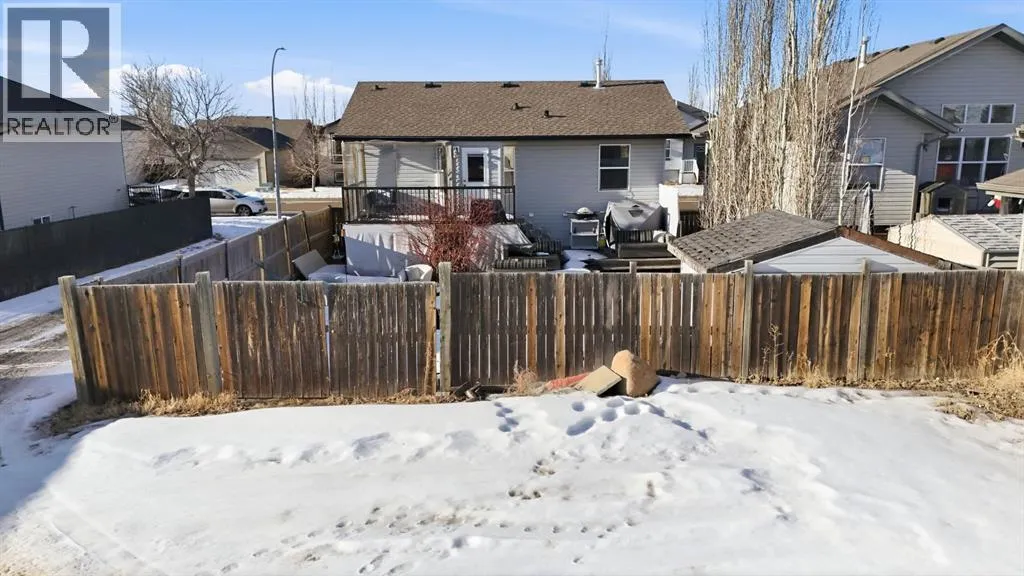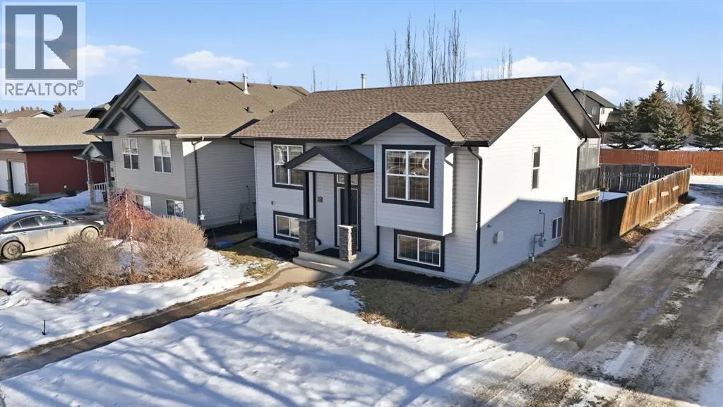 Welcome to 57 Garden Road, a clean, well-kept bi-level located in Lacombeâs Willow Ridge. This fully developed home offers strong value in a quiet, family-friendly neighbourhood.The main floor is bright and open, with vaulted ceilings and large windows that fill the space with natural light. The layout includes a dedicated dining area framed by bay-style windows and a well-planned kitchen with ample cabinetry and a raised eating bar.Two bedrooms and a full four-piece bathroom complete the upper level. The finished basement features a large family room, an oversized third bedroom, a second full bathroom, a separate laundry area, and additional storage. The layout also allows for the easy addition of a fourth bedroom, if needed.Outside, the yard is fully fenced and landscaped, with a two-tiered deck and a rear parking pad. Swing gates are already in place, providing convenient access for RV parking or future garage development.This is a well-maintained home with a practical layout and long-term potential. (id:27476)