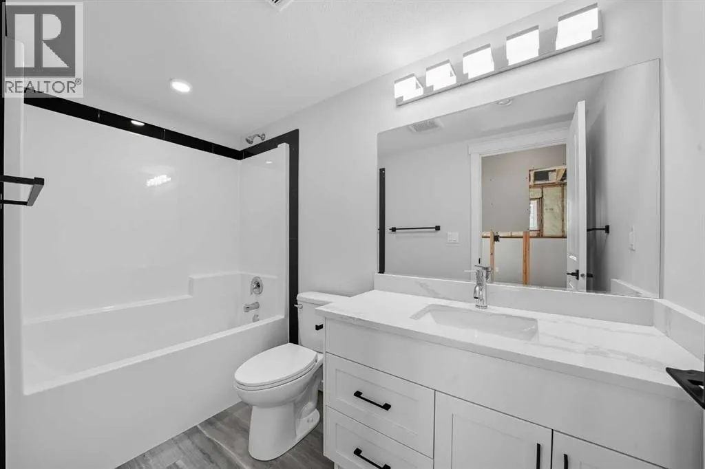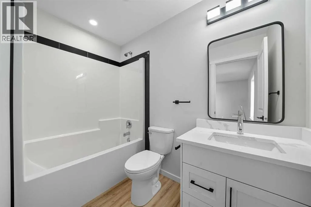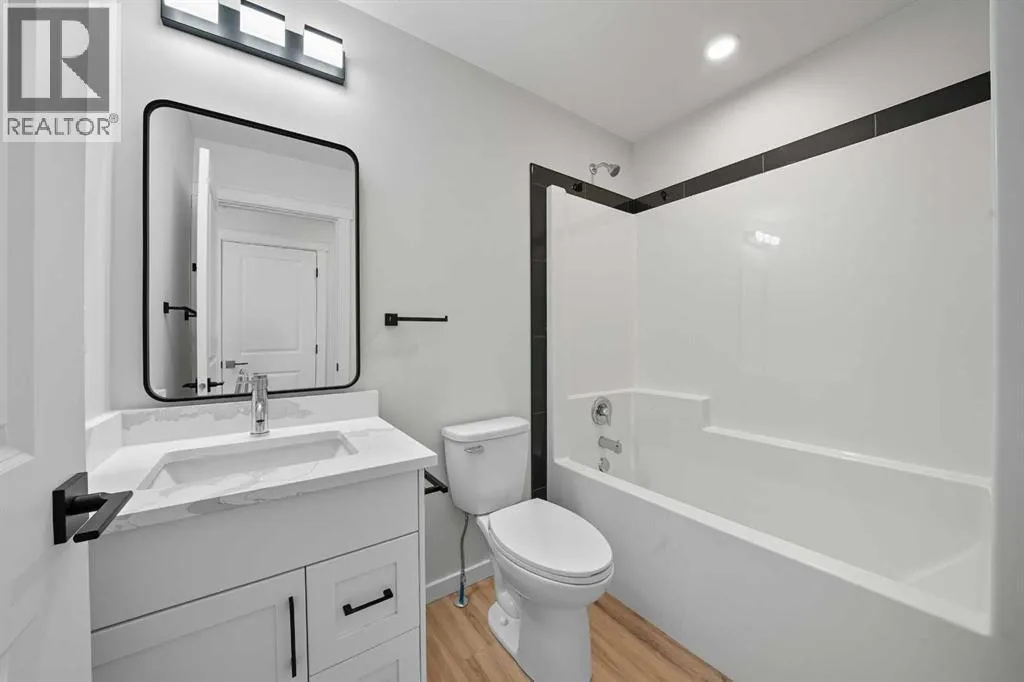 Step right in to this brand new home with a practical and functional floorplan, ideal for a growing family. IMPRESSIVE CURB APPEAL sets the tone- modern architectural lines, striking exterior finishes, and a welcoming front entry that feels fresh and inviting! Inside you will be wowed by the contemporary design, where clean lines, airy open spaces, and thoughtfully chosen finishes come together to create a home that feels both STYLISH and livable. High-end materials, sleek cabinetry, and high-end luxury vinyl plank flooring gives every room a polished, magazine worthy look, while large windows flood the home with natural light.. The main floor features an OPEN CONCEPT, 3 bedrooms, a four-piece bathroom, living room, dining and kitchen. Kitchen features: corner pantry with censored lighting, QUARTZ COUNTERTOPS, soft close doors and drawers, FULL POLISHED BLACK SUBWAY TILE, water line to the fridge, STAINLESS STEEL APPLIANCES, Undermount granite sink and black hardware. Shingles are 35-year asphalt, foundation is (ICF) insulated concrete form. The basement has been mostly wired and features a finished four-piece bathroom. The basement is wide open for your ideas, in the utility room you will find the laundry hook ups and roughed in in-floor heat. PROGRESSIVE 10-year NEW HOME WARRANTY! The 20x24 double attached garage has rough in for heat, a floor drain and soft close modern overhead doors with driftwood finish. Other great features include: whitewash pine VAULTED CEILINGS on main floor, beams in living, dining and kitchen, electric fireplace in living room has feature wall with a wood mantle, commercial grade hot water tank, 35 year shingles, LED lighting and QUARTZ countertops throughout. Every detail in this show home has been carefully curated to showcase the latest in modern trends and craftsmanship- a perfect blend of function and flair. Itâs a home that doesn't just impress at first glance. but continues to inspire as you explore every beautiful space. (id:27476)