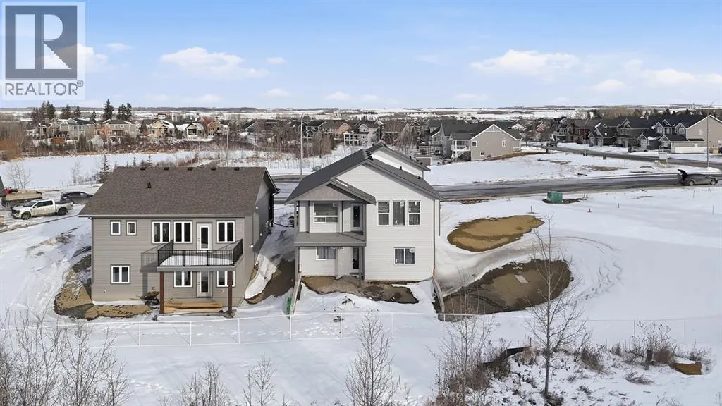 STUNNING VIEWS IN ONE OF LACOMBE'S MOST DESIRABLE LOCATIONS! Opportunities like this are rare. This exceptional new home by Darnell Homes Ltd is ideally situated in a quiet cul-de-sac in one of the most sought-after areas of Lacombe. The beautiful lot backs onto reserve land, scenic ponds, and extensive walking trails, offering breathtaking natural views! This thoughtfully designed modified bi-level with a walkout basement features an excellent floor plan that is ideal for families or retirees seeking a special location. Upon entering, you are welcomed by a spacious foyer with a convenient closet and access to both the main and lower levels.The main floor showcases soaring vaulted ceilings, an open-concept layout, and large west-facing windows that maximize natural light while capturing the spectacular surrounding views. The kitchen is beautifully appointed with white shaker cabinetry, a large island, a corner walk-in pantry, and elegant quartz countertops.The living room will offer a warm and inviting atmosphere with a striking rock-faced gas fireplace. Additional features include rough-in for central vacuum, as well as a spacious main-floor laundry room complete with cabinetry and generous shelving for additional storage.Two well-sized bedrooms are located on the main level, along with a conveniently positioned full bathroom. The upper level is dedicated to a private primary retreat, featuring a spacious bedroom and an impressive ensuite with a jetted tub, separate shower, private water closet, and a large walk-in closet. The walkout basement offers excellent future development potential and includes roughed-in in-floor heating, large west-facing windows, and a patio door leading to a concrete patioâan ideal space for a future hot tub or outdoor entertaining. Outdoor living is equally impressive with a large covered deck off the dining area, providing incredible views to the west and north and creating the perfect setting to relax and enjoy the surrounding landsca pe. With the high-quality craftsmanship and finishes that Darnell Homes Ltd is known for, this 3-bedroom, 2-bath walkout home offers an exceptional opportunity to own a truly remarkable property. (id:27476)