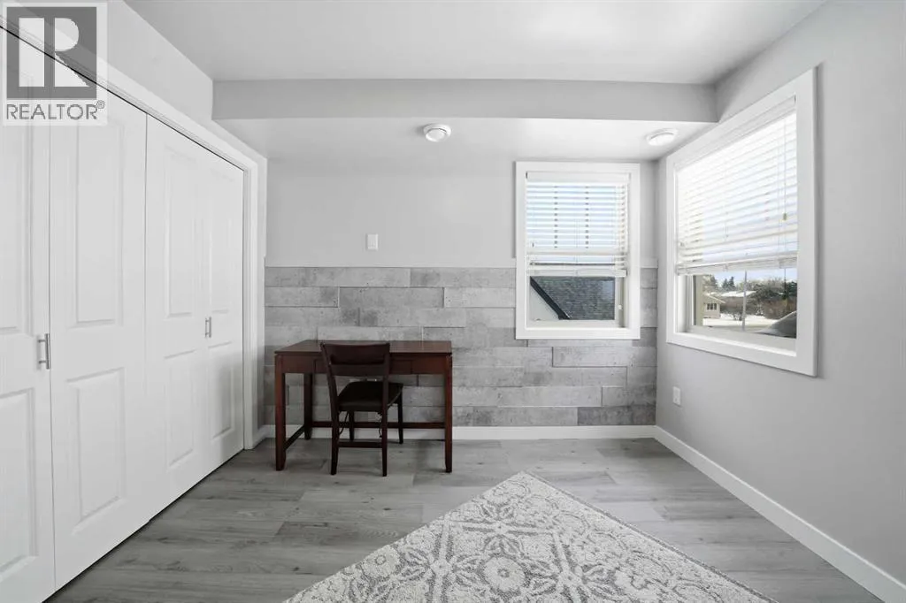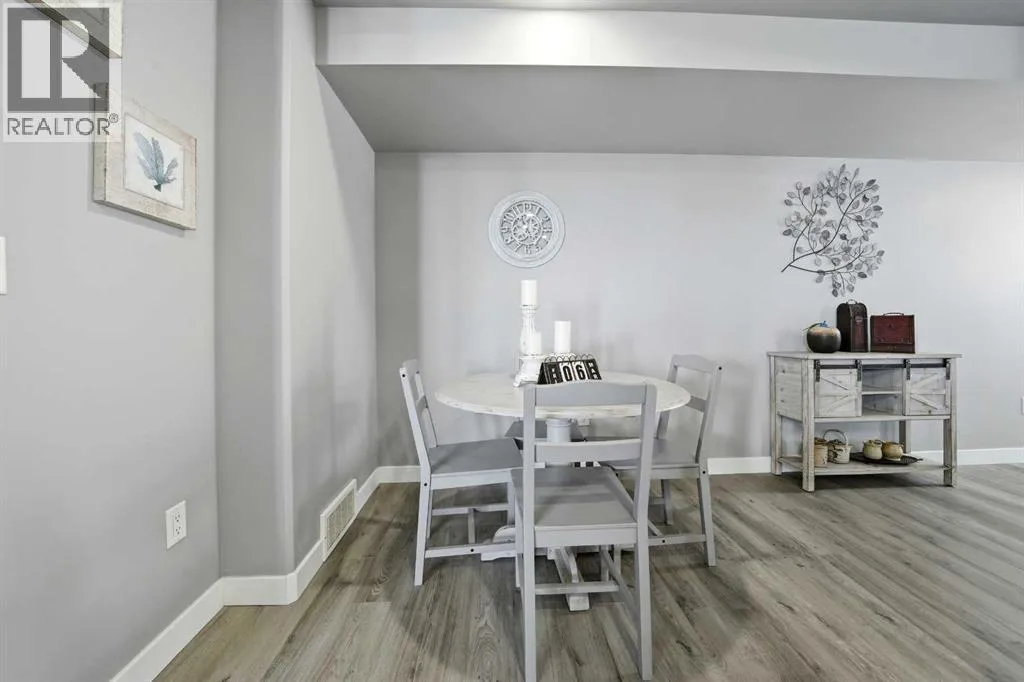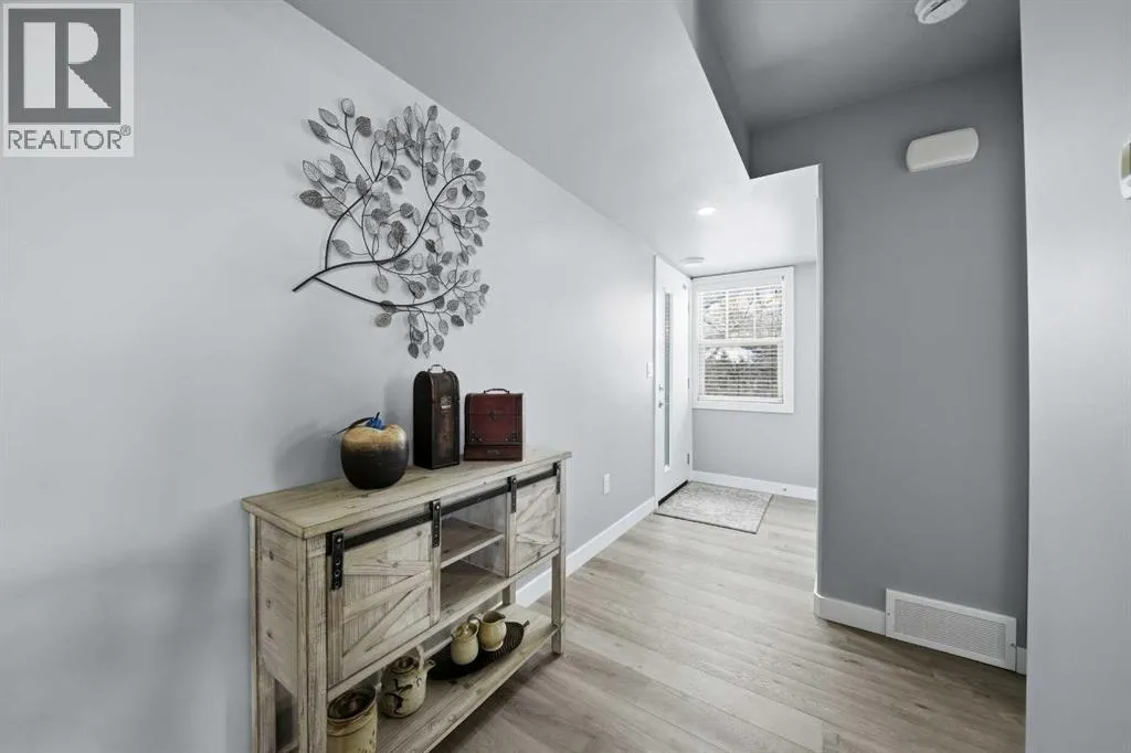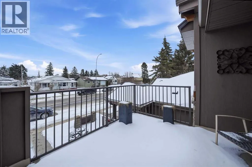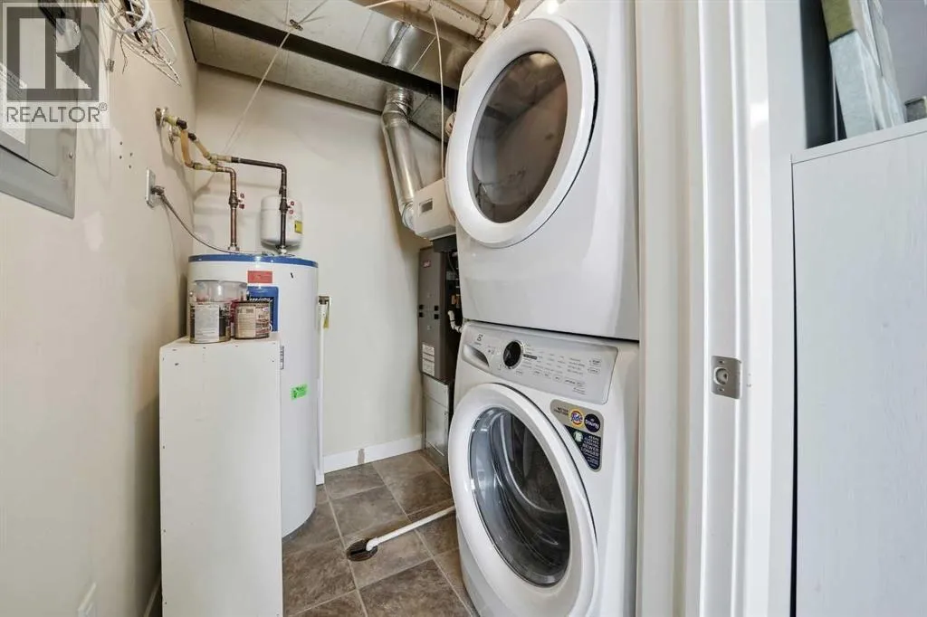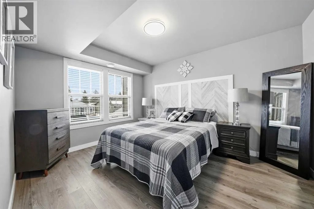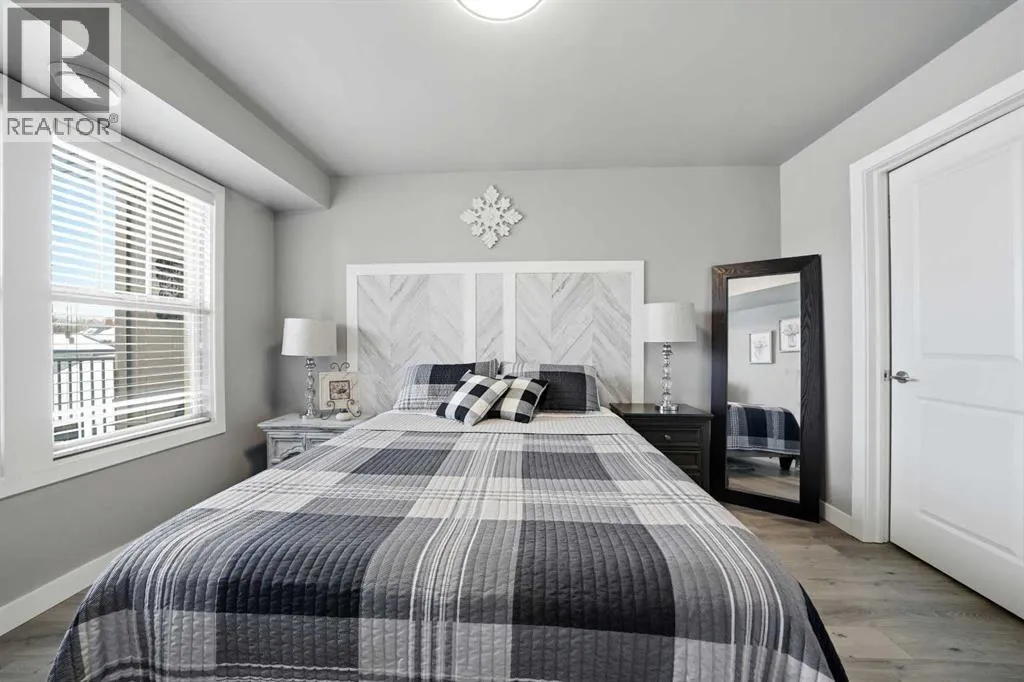 This exquisite, fully renovated top floor corner unit condo is a showstopper! From the high ceilings to the stunning quartz counter tops, fluted feature walls, chandelier lighting, and custom window coverings throughout, this suite has it all. The bright and open floor plan boast a dining area, kitchen with quartz countertops, island w/ eating bar, two-tone cabinets, wall pantry, and stainless appliances. The living room boasts a custom feature wall w/ electric fireplace and access to the east facing balcony to enjoy your morning coffee. The primary bedroom features built-in headboard and a good size walk-in closet. A second bedroom, 3 pc bathroom, and in-suite washer & dryer complete this stunning condo. This unit also comes with 1 assigned parking stall and an additional storage room. Located in the heart of downtown Lacombe, just steps from local amenities and shopping, this is low-maintenance living at its finest. (id:27476)