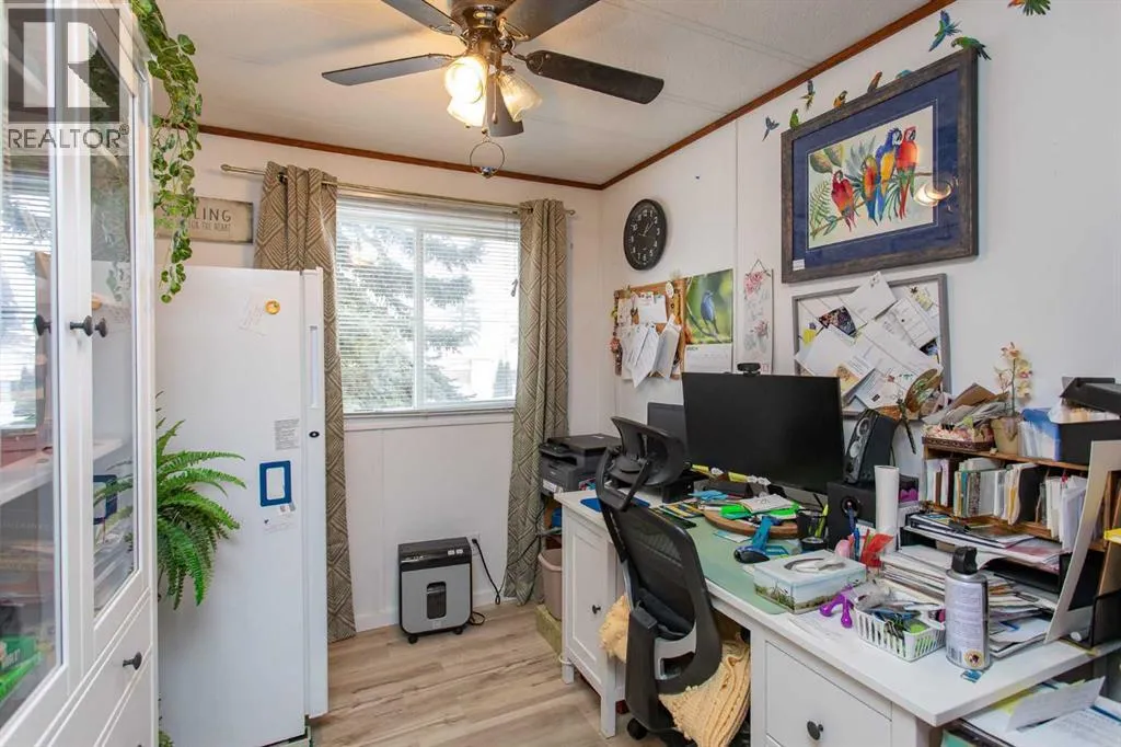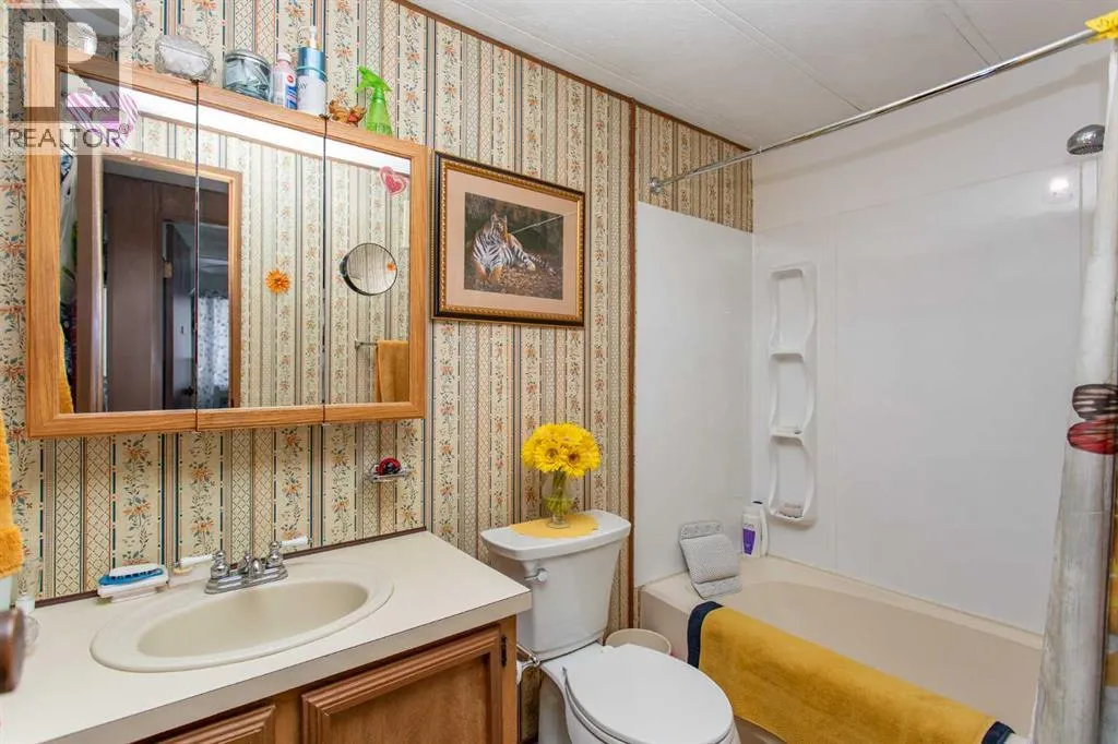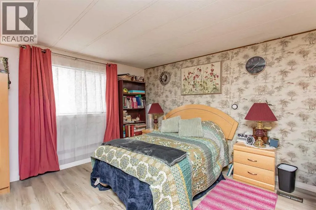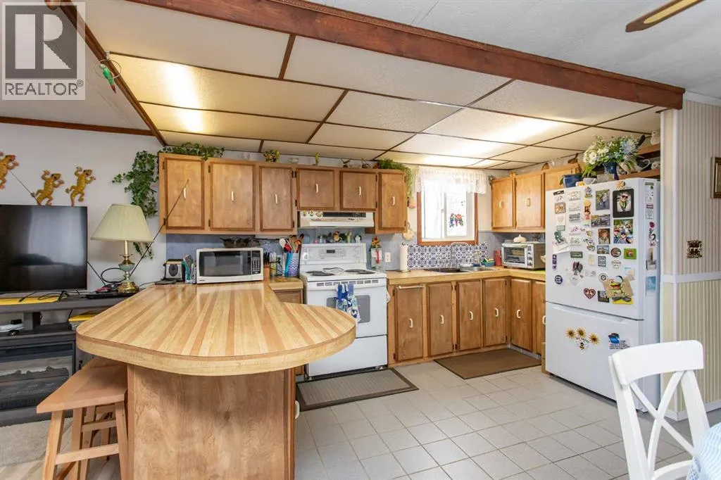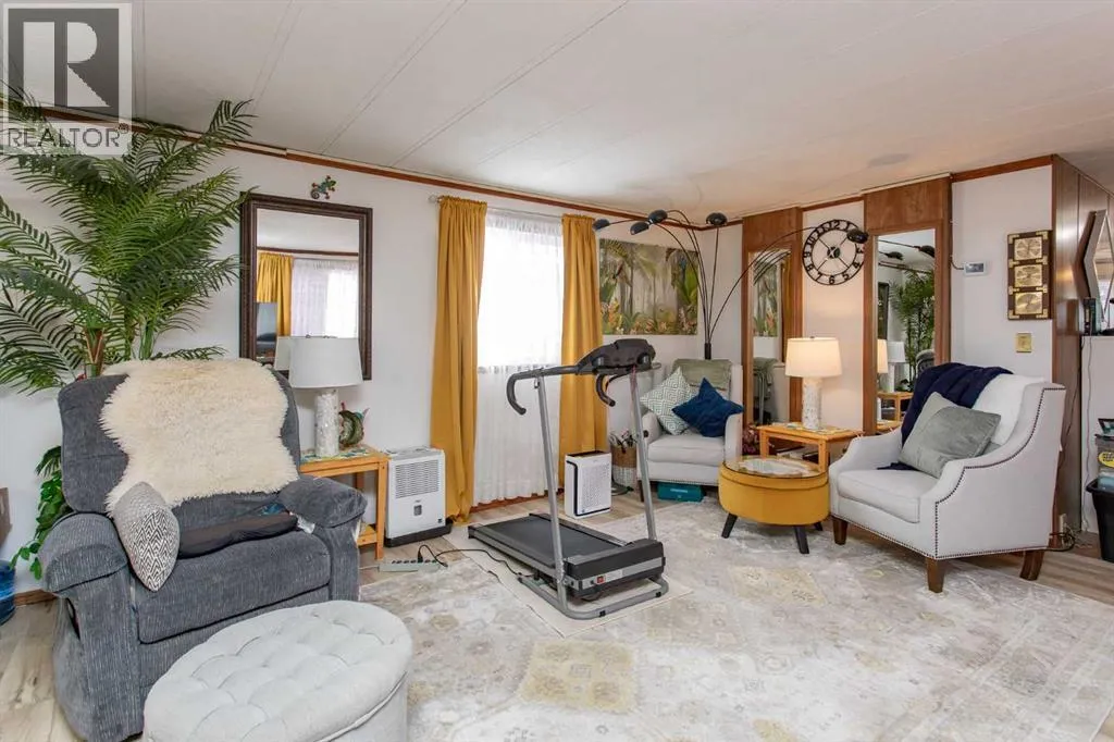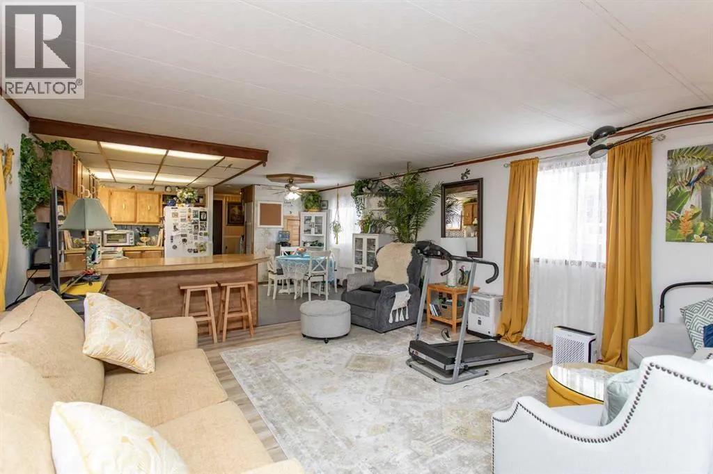 Opportunities to acquire properties such as this are rare. This well-maintained mobile home with a 26 x 22 double detached garage is situated on its own lot in Lacombe, offering affordable home ownership with ample living space. The open concept main living area features a kitchen equipped with generous cabinetry, abundant countertop space, and a sunshine ceiling. The primary bedroom is positioned at the north end of the home, conveniently located near a four-piece bathroom, while two additional bedrooms are situated at the south end alongside another four-piece bathroom. An attractive addition provides extra living space and has its own exit to the side and back yard. Numerous updates have been completed: windows replaced, furnace (approximately 9 years old), hot water tank (approximately 10 years old), bathtub surrounds redone 7 years ago, roof on the north side replaced 3 years ago, and the south side approximately 9 years ago. The mobile home is anchored and set on cement pilings. The detached garage, measuring 26 x 22, is powered and features a garage door opener (not insulated). The fenced yard backs onto green space and the property is conveniently located near Terrace Heights Schools and Burman University. This property is ready to welcome its next owner. (id:27476)