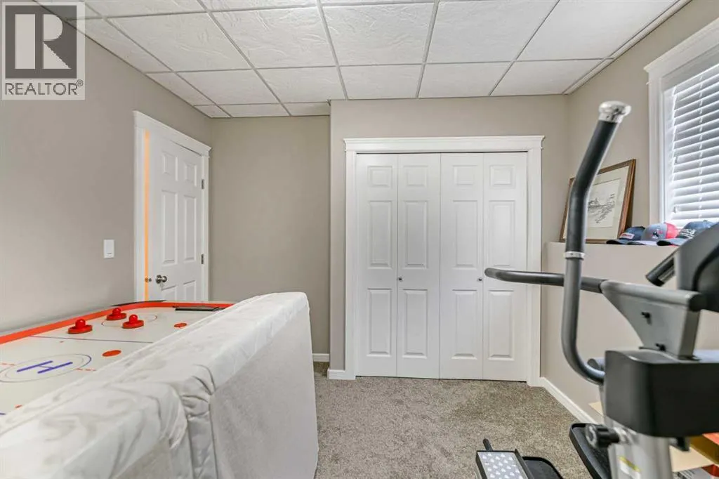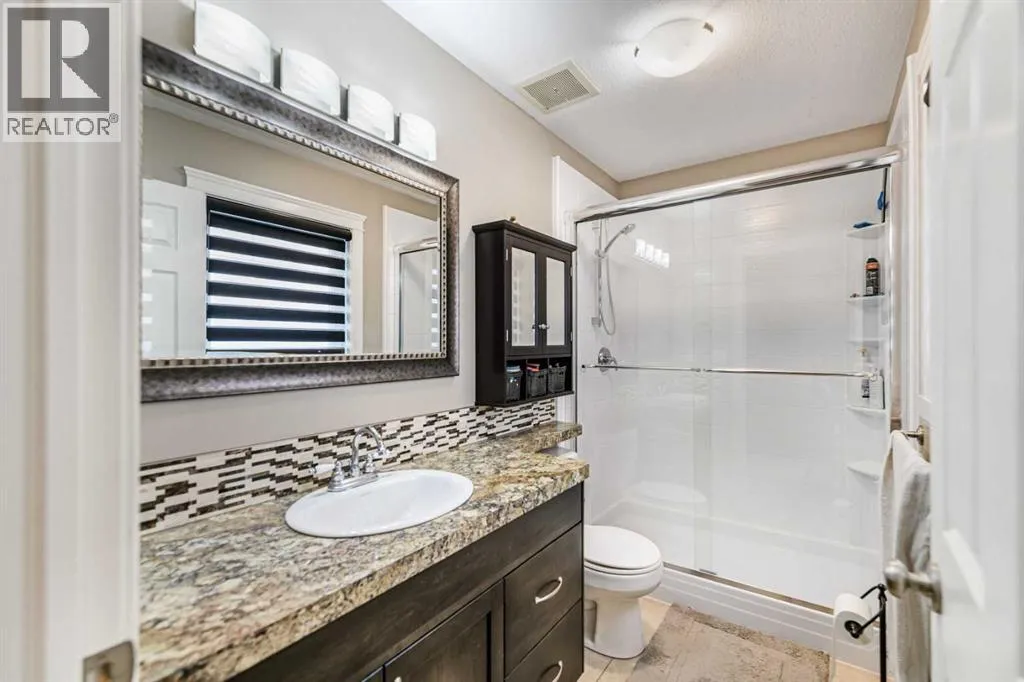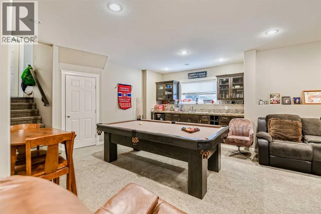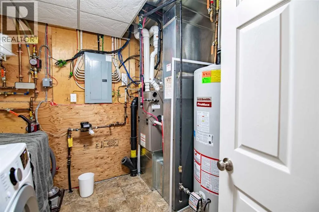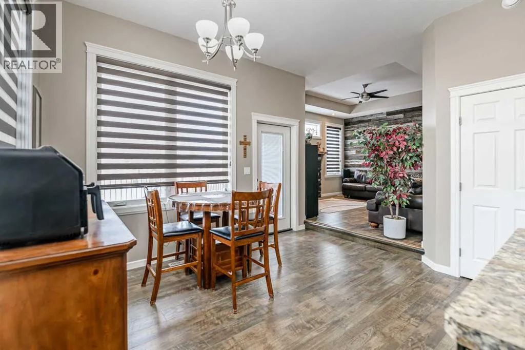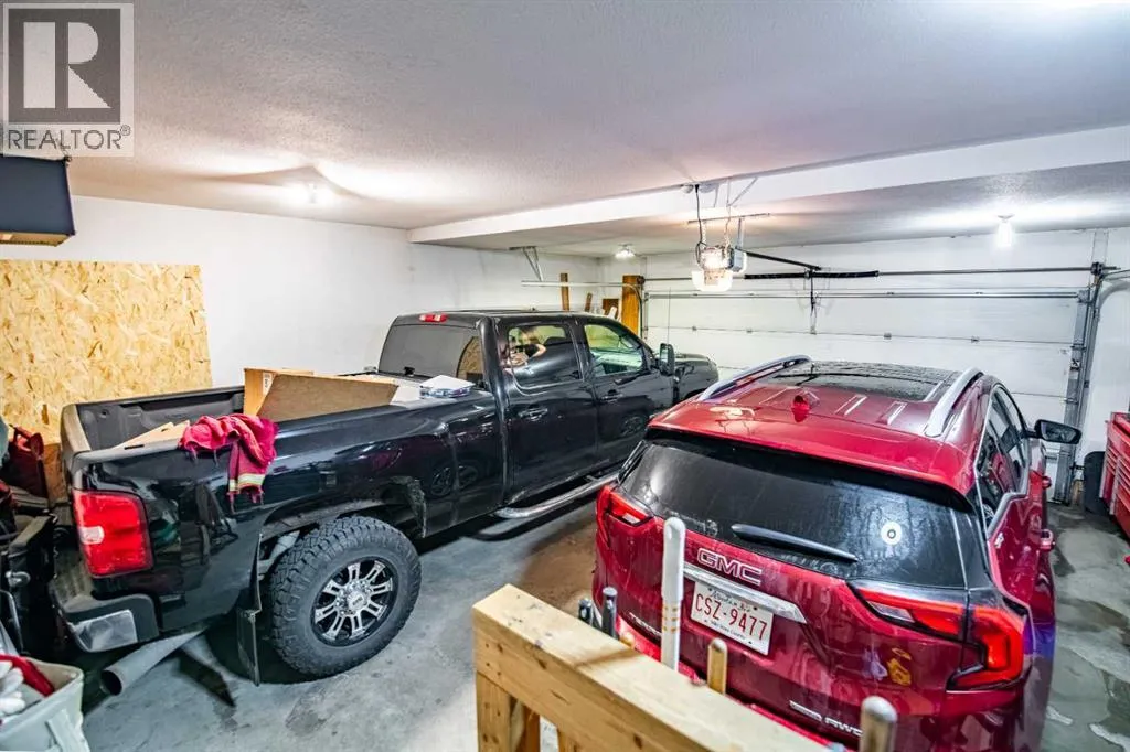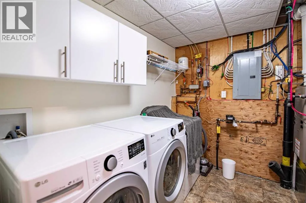 Nestled on a quiet crescent in one of Lacombe's well-established neighbourhoods, this charming 1½ storey home offers a functional and inviting layout with quality finishes throughout. The main floor welcomes you with a bright living room featuring a striking feature wall and a cozy fireplace with beautiful stone surround. Natural light flows generously through the home, creating an airy and comfortable atmosphere. The kitchen is a standout space, thoughtfully designed with ample workspace and easy access to the partially covered back deck that offers a gas hookup for a BBQ. Gas stove top with electric double ovens and dishwasher 4 years old. Two bedrooms are located on the main floor, with the spacious primary suite on the upper level, complete with a large walk-in closet and private ensuite. The fully developed basement with 9 ft ceilings adds excellent versatility, offering two additional bedrooms, a full bathroom, dedicated laundry/utility room, and a storage room. The impressive wet bar makes this lower level a natural gathering space, and in-floor heat throughout ensures year-round comfort. Outside, the large heated double attached garage provides convenient parking and storage. The backyard is a practical featuring dedicated RV parking with a 50-amp hookup and the added benefit of an extra-wide back alley for easy access.Additional features include central air conditioning and central vacuum. A meticulously well kept home home offering space, comfort, and standout amenities. This home is ready to welcome its next family. (id:27476)