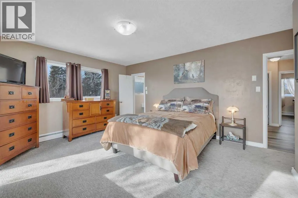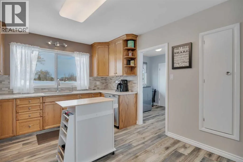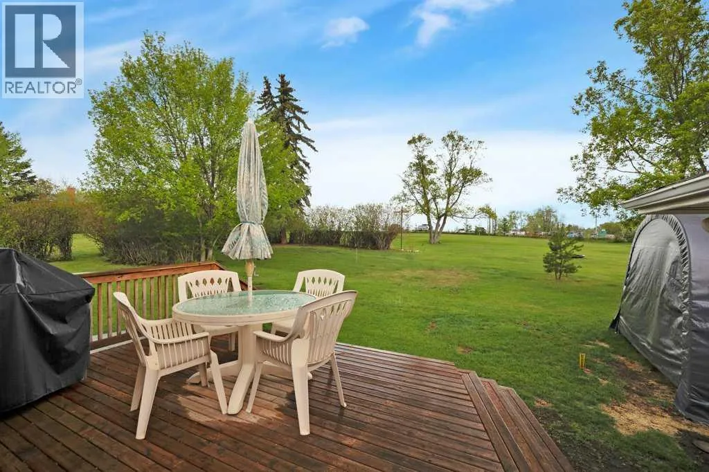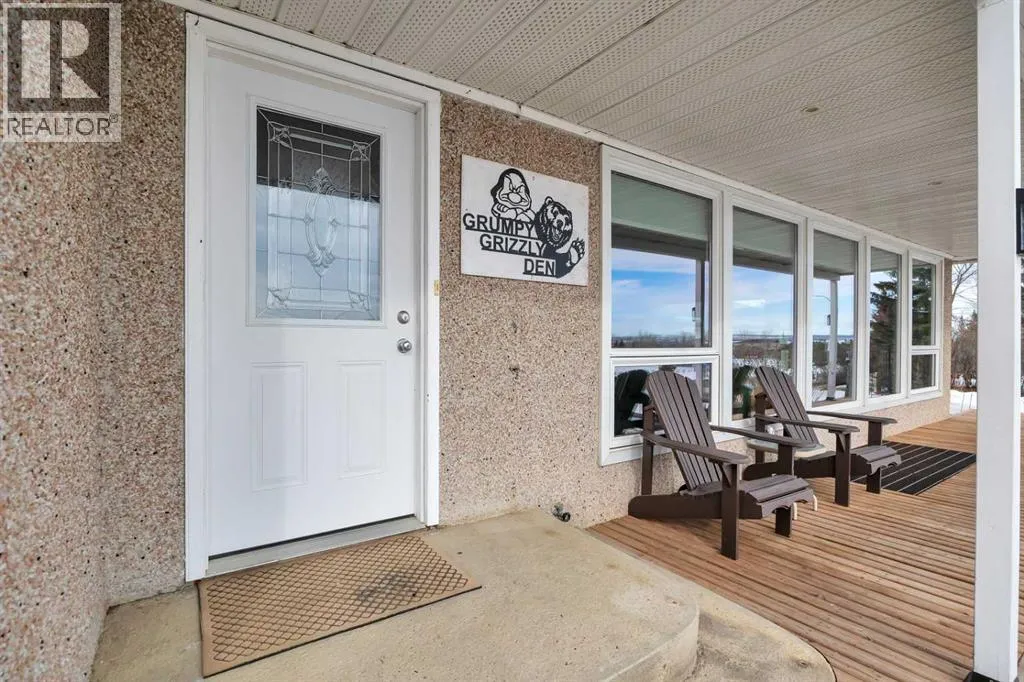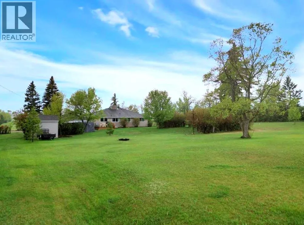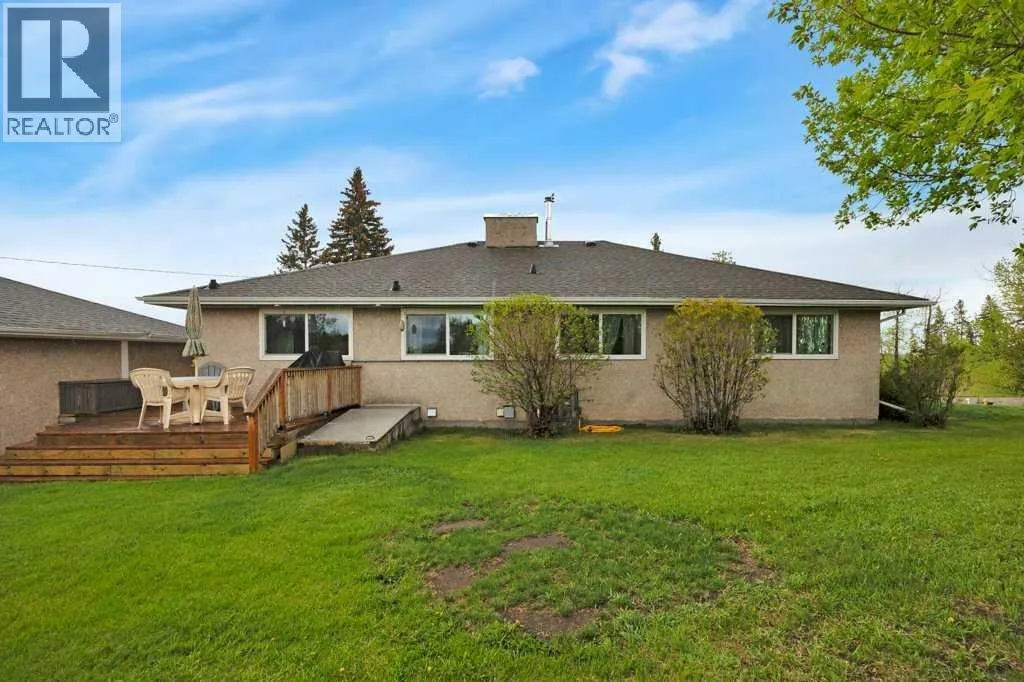 This place is a hole-in-one â perfectly teed up on top of the hill right beside the golf course. Sitting on 1.73 acres inside city limits, this fully renovated property is packed with upgrades that matter. Newer roof, newer electrical panel, full septic replacement (2023), zoned HVAC with independent climate control on each level, on-demand hot water, and added attic insulation. Move in knowing the big-ticket items are done. The main floor features a king-sized primary retreat with an upgraded ensuite, floor-to-ceiling vinyl windows that flood every room with natural light, new vinyl plank flooring and carpet throughout, custom blinds, and fresh paint top to bottom. The kitchen is clean and functional â ceiling-height cabinetry, quartz countertops, newer appliances including an induction range, and a large window over the sink framed by trees. Built-in shelving in the living room adds character and storage. Main floor laundry and a spacious mudroom with its own two-piece bath round out the everyday essentials. The lower level is fully self-contained. A large family room anchored by a cozy wood stove, two oversized bedrooms with above-grade windows, a full bathroom, a second living area, and cold storage. The full kitchen downstairs includes cabinetry for days, a stove, fridge, dishwasher, and pantry, with roughed-in laundry hookups ready to go. A lockable door between levels allows each floor to function independently â ideal for multi-generational living, extended family, or anyone who values flexibility and separation. Outside matches inside. A wraparound deck catches southern and eastern sun, while the fully fenced yard is lined with lilacs, raspberry bushes, and Saskatoon berries. Two gated access points, RV parking, an extended driveway, a heated double detached garage, and a storage shed give you room for every vehicle, project, and hobby. No one in front, no one behind â just open sky, golf course views, and your own patch of paradise. You're across from the ball diamonds, steps from a seasonal farmers' market, and two minutes to the clubhouse. Red Deer is under 20 minutes; Edmonton International about an hour. Space, privacy, updates, and a layout that works however you need it to. Don't wait â book your showing before someone else sinks it. (id:27476)