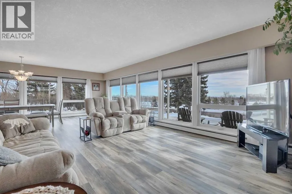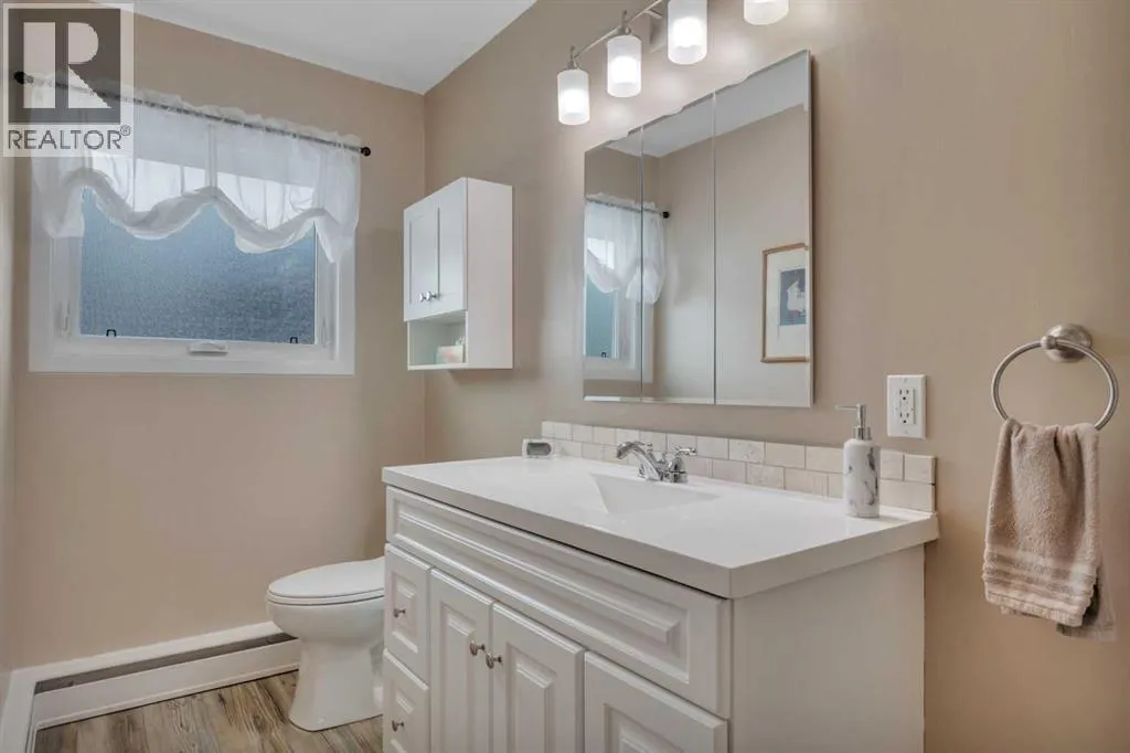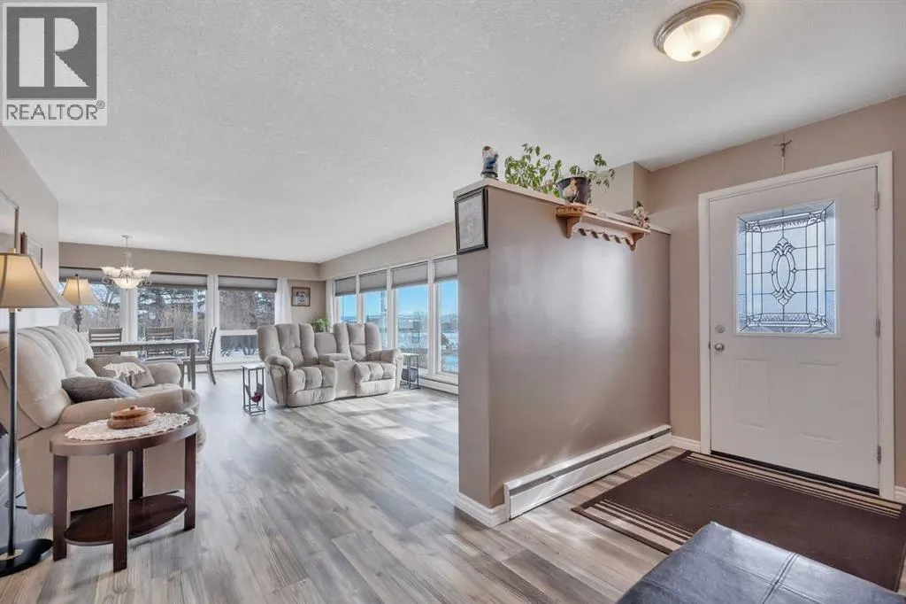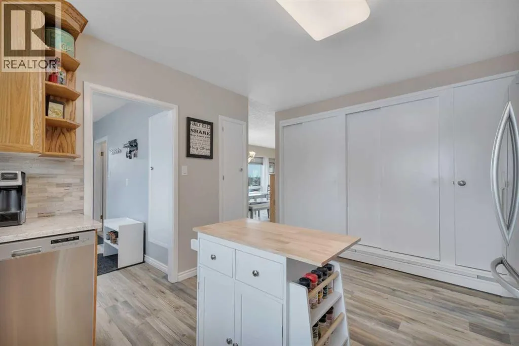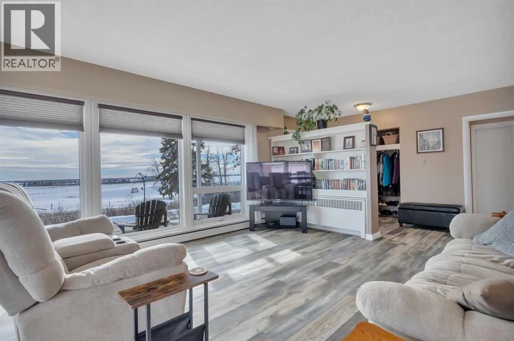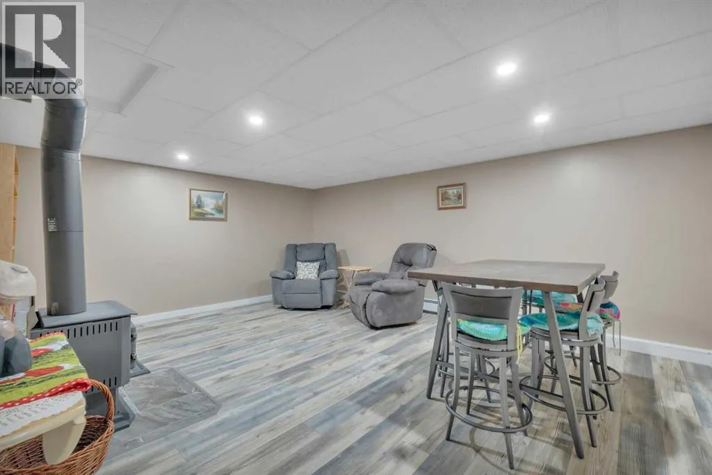 This place is a hole-in-one â perfectly teed up on top of the hill right beside the golf course. Sitting on 1.73 acres inside city limits, this fully renovated property is packed with upgrades that matter. Newer roof, newer electrical panel, full septic replacement (2023), zoned HVAC with independent climate control on each level, on-demand hot water, and added attic insulation. Move in knowing the big-ticket items are done. The main floor features a king-sized primary retreat with an upgraded ensuite, floor-to-ceiling vinyl windows that flood every room with natural light, new vinyl plank flooring and carpet throughout, custom blinds, and fresh paint top to bottom. The kitchen is clean and functional â ceiling-height cabinetry, quartz countertops, newer appliances including an induction range, and a large window over the sink framed by trees. Built-in shelving in the living room adds character and storage. Main floor laundry and a spacious mudroom with its own two-piece bath round out the everyday essentials. The lower level is fully self-contained. A large family room anchored by a cozy wood stove, two oversized bedrooms with above-grade windows, a full bathroom, a second living area, and cold storage. The full kitchen downstairs includes cabinetry for days, a stove, fridge, dishwasher, and pantry, with roughed-in laundry hookups ready to go. A lockable door between levels allows each floor to function independently â ideal for multi-generational living, extended family, or anyone who values flexibility and separation. Outside matches inside. A wraparound deck catches southern and eastern sun, while the fully fenced yard is lined with lilacs, raspberry bushes, and Saskatoon berries. Two gated access points, RV parking, an extended driveway, a heated double detached garage, and a storage shed give you room for every vehicle, project, and hobby. No one in front, no one behind â just open sky, golf course views, and your own patch of paradise. You're across from the ball diamonds, steps from a seasonal farmers' market, and two minutes to the clubhouse. Red Deer is under 20 minutes; Edmonton International about an hour. Space, privacy, updates, and a layout that works however you need it to. Don't wait â book your showing before someone else sinks it. (id:27476)