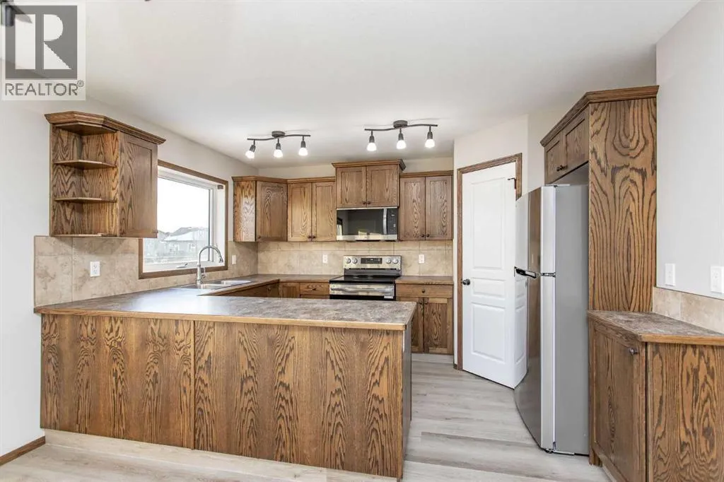 This well-maintained, move-in-ready home features timeless wood cabinetry and a functional kitchen with a corner pantry, new appliances, and new vinyl plank flooring & carpet. Freshly painted throughout in a modern, neutral palette, the home is filled with natural light, creating a bright and welcoming atmosphere.The spacious primary bedroom offers a comfortable retreat, with the added convenience of laundry located on the same level as the bedrooms. Outside, enjoy a fully fenced, low-maintenance chain-link backyard complete with a firepitâperfect for relaxing or entertaining. Additional highlights include attractive curb appeal, a good-sized storage shed, and rear parking.An excellent value and an ideal opportunity for first-time buyers or those looking to downsize, all in a great neighbourhood. (id:27476)