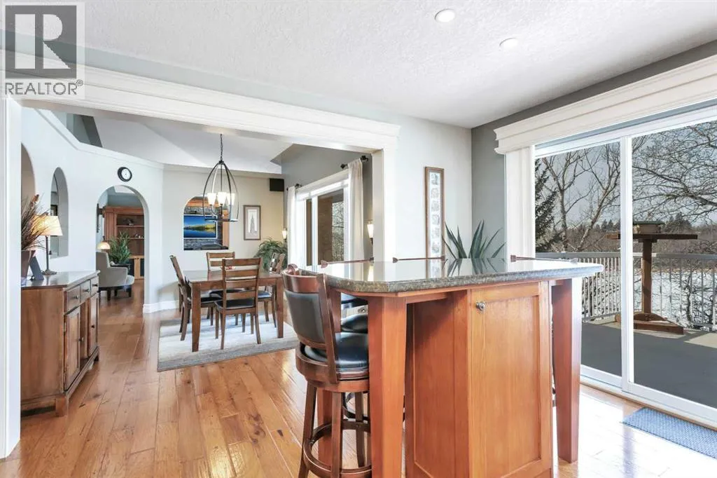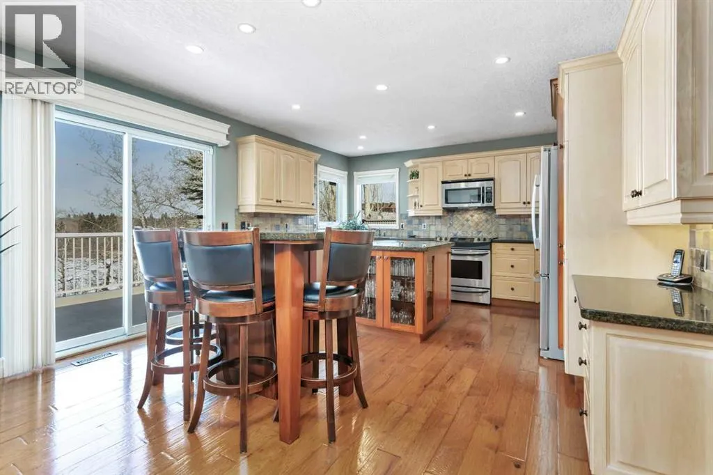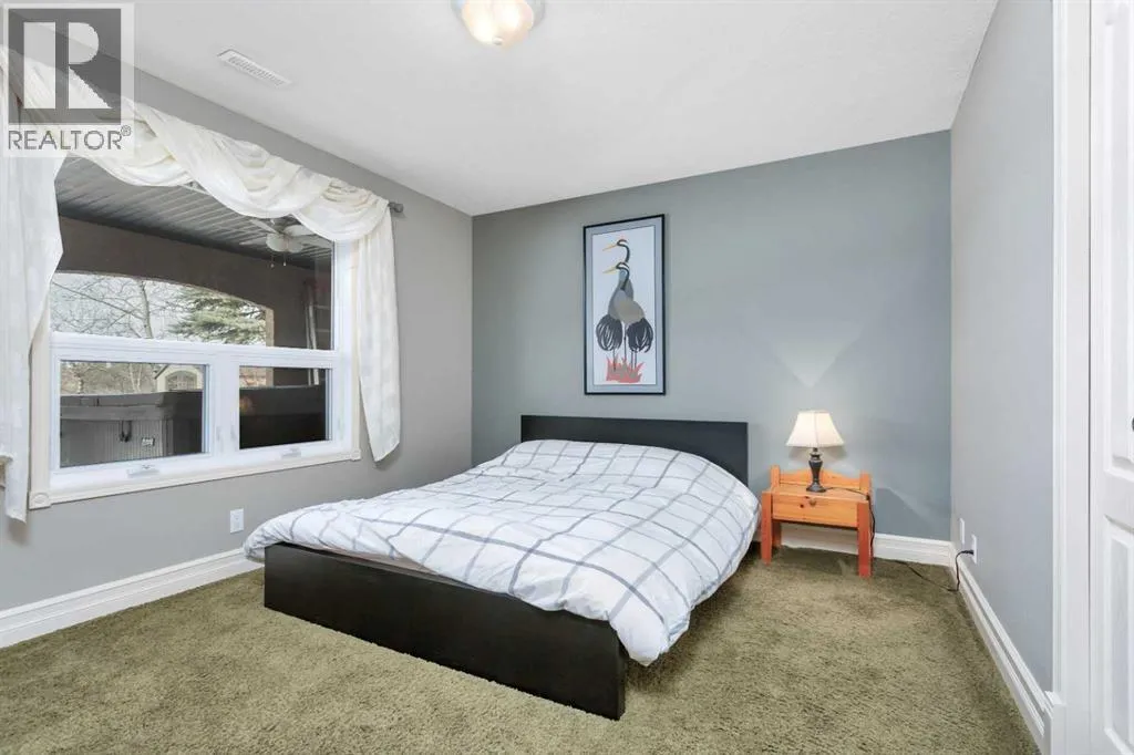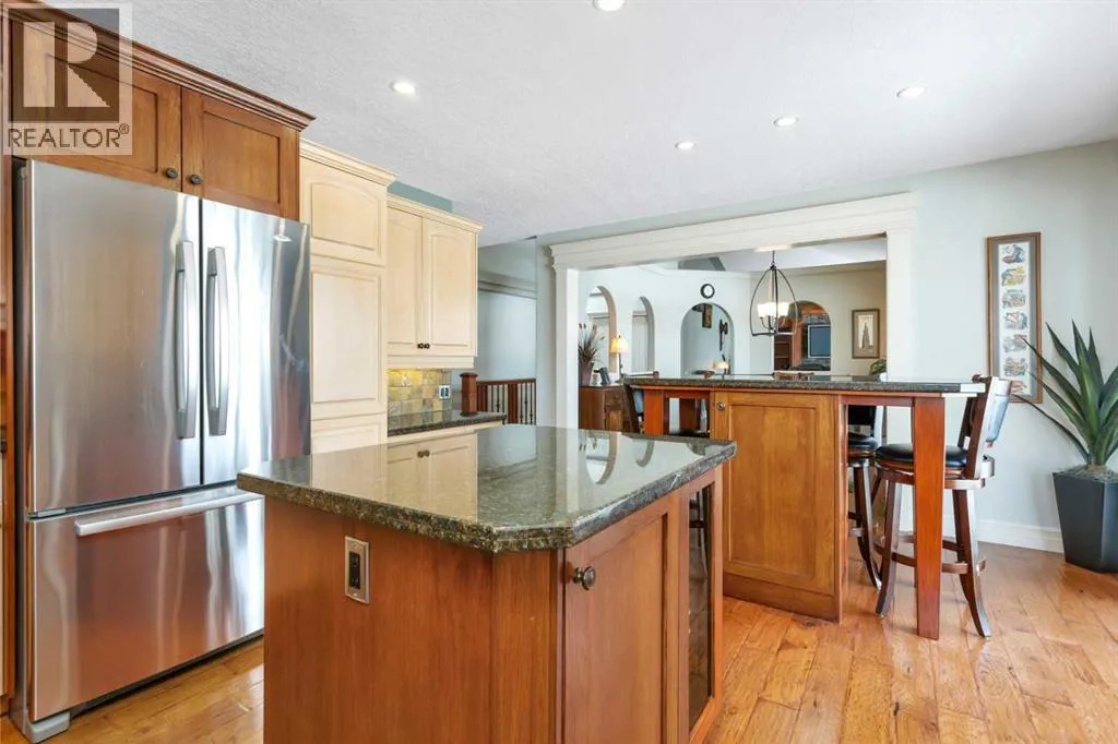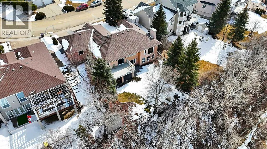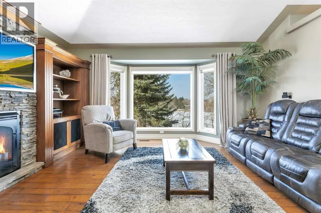 Welcome to one of Lacombeâs most sought-after locations in The Lakes, where this FULLY FINISHED WALKOUT BUNGALOW with TRIPLE GARAGE backs directly onto the water with NO NEIGHBOURS behind, offering beautiful lake views, privacy, and frequent wildlife right from your backyard. This 5 bedroom, 3 bathroom home is located on a QUIET CRESCENT with long-term neighbors and minimal traffic, and provides over 3,000 sq ft of well-designed living space. Inside, youâll find large windows throughout flooding the home with NATURAL LIGHT, engineered HARDWOOD floors, custom railings, and VAULTED CEILINGS. The kitchen is set up perfectly for everyday living and entertaining with GRANITE countertops, an ISLAND, a large built-in EATING BAR with additional seating, under and over CABINET LIGHTING, and a separate dining area. The main living room features custom built-ins surrounding a cozy gas fireplace and showcases incredible views of the water. The primary suite accommodates large furniture, includes a walk-in closet, 3-piece ensuite, and beautiful east-facing morning sunlight. Downstairs offers bright WALKOUT living with a spacious family room, IN-FLOOR HEATING, and a second gas fireplace, along with a WET BAR and a versatile flex space currently used as a gym, previously set up for a pool table, and easily adaptable into a 6th bedroom if desired. Outside, enjoy an OVERSIZED MAINTENANCE-FREE wraparound deck with natural gas, covered lower patio ideal for a hot tub, beautifully professionally landscaped low-maintenance yard, and two sheds including one with power. Additional features include AIR CONDITIONING, POT LIGHTING throughout, newer hot water tanks, UPDATED PEX PLUMBING, laundry room with sink, alarm system, and a fully finished TRIPLE GARAGE with IN-FLOOR HEATING and hot and cold taps. Located within walking distance to elementary, junior high, and high schools, parks, pathways, and Cranna Lake just across the street for year-round enjoyment including skating in the winter, plus access to an extensive trail system. This is a rare opportunity to own a solid, high-quality home in a premium location that offers both everyday comfort and long term value. (id:27476)