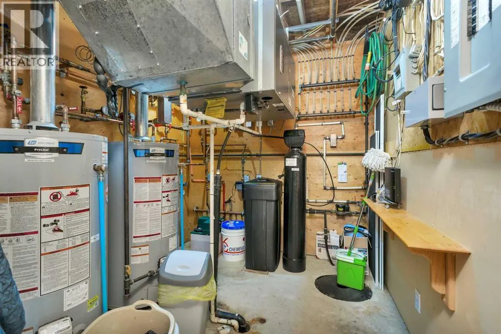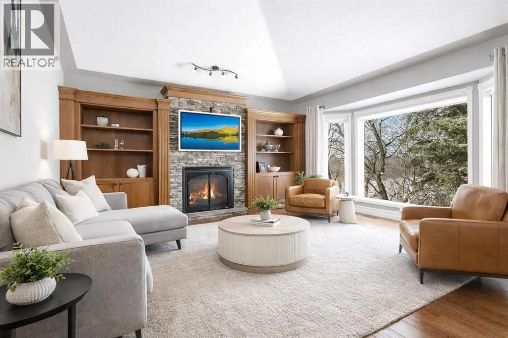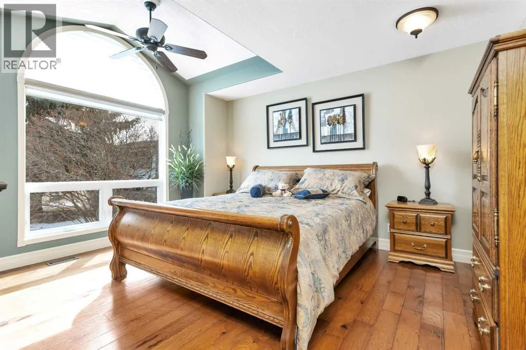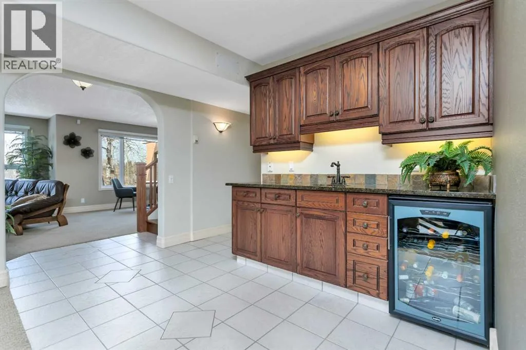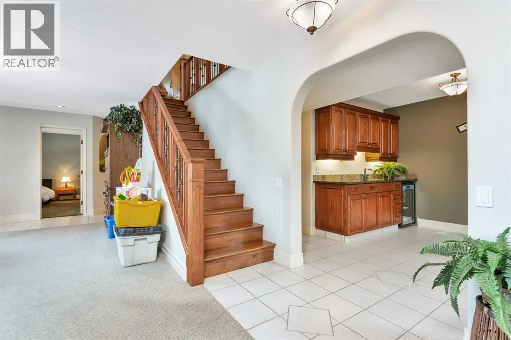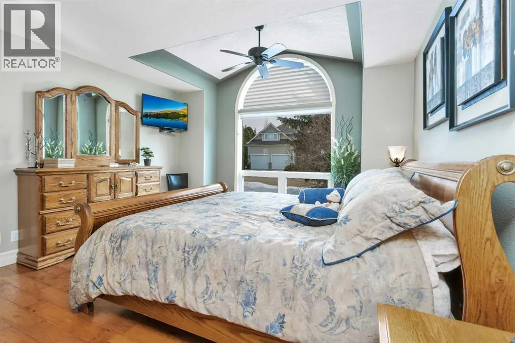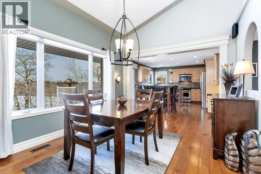 Welcome to one of Lacombeâs most sought-after locations in The Lakes, where this FULLY FINISHED WALKOUT BUNGALOW with TRIPLE GARAGE backs directly onto the water with NO NEIGHBOURS behind, offering beautiful lake views, privacy, and frequent wildlife right from your backyard. This 5 bedroom, 3 bathroom home is located on a QUIET CRESCENT with long-term neighbors and minimal traffic, and provides over 3,000 sq ft of well-designed living space. Inside, youâll find large windows throughout flooding the home with NATURAL LIGHT, engineered HARDWOOD floors, custom railings, and VAULTED CEILINGS. The kitchen is set up perfectly for everyday living and entertaining with GRANITE countertops, an ISLAND, a large built-in EATING BAR with additional seating, under and over CABINET LIGHTING, and a separate dining area. The main living room features custom built-ins surrounding a cozy gas fireplace and showcases incredible views of the water. The primary suite accommodates large furniture, includes a walk-in closet, 3-piece ensuite, and beautiful east-facing morning sunlight. Downstairs offers bright WALKOUT living with a spacious family room, IN-FLOOR HEATING, and a second gas fireplace, along with a WET BAR and a versatile flex space currently used as a gym, previously set up for a pool table, and easily adaptable into a 6th bedroom if desired. Outside, enjoy an OVERSIZED MAINTENANCE-FREE wraparound deck with natural gas, covered lower patio ideal for a hot tub, beautifully professionally landscaped low-maintenance yard, and two sheds including one with power. Additional features include AIR CONDITIONING, POT LIGHTING throughout, newer hot water tanks, UPDATED PEX PLUMBING, laundry room with sink, alarm system, and a fully finished TRIPLE GARAGE with IN-FLOOR HEATING and hot and cold taps. Located within walking distance to elementary, junior high, and high schools, parks, pathways, and Cranna Lake just across the street for year-round enjoyment including skating in the winter, plus access to an extensive trail system. This is a rare opportunity to own a solid, high-quality home in a premium location that offers both everyday comfort and long term value. (id:27476)