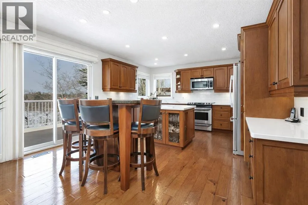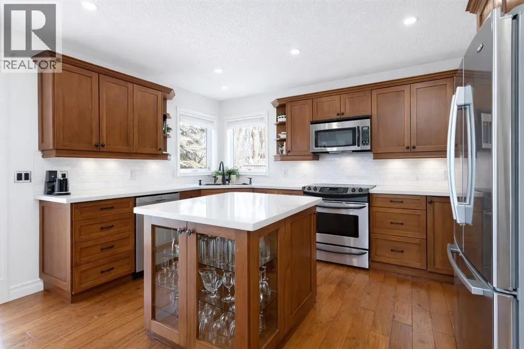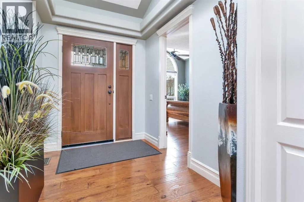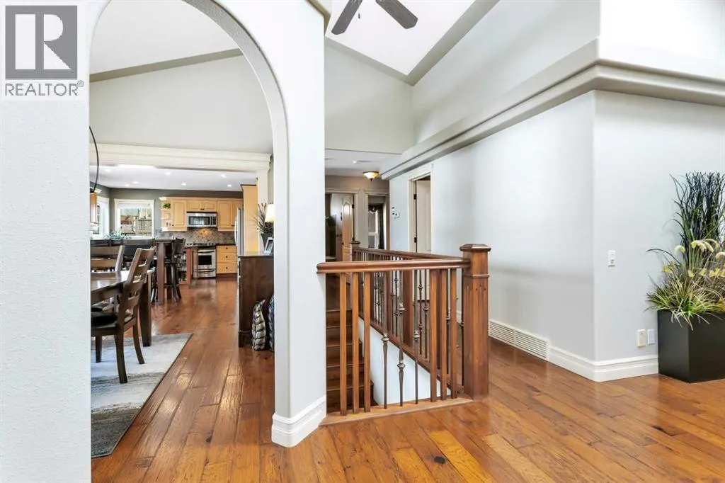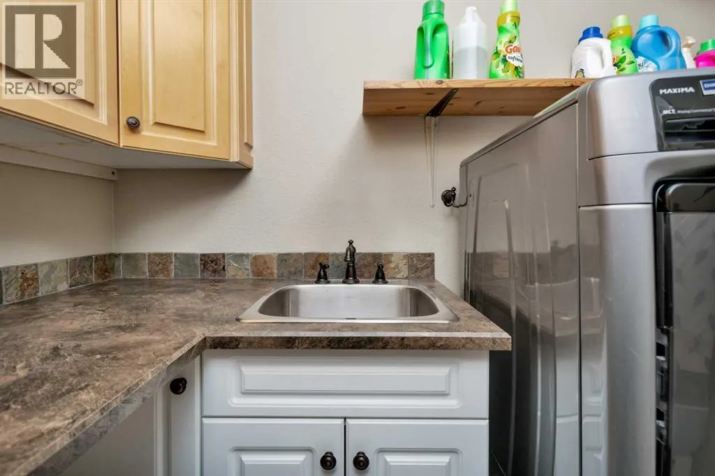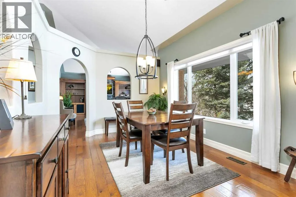 Welcome to one of Lacombeâs most sought-after locations in The Lakes, where this FULLY FINISHED WALKOUT BUNGALOW with TRIPLE GARAGE backs directly onto the water with NO NEIGHBOURS behind, offering beautiful lake views, privacy, and frequent wildlife right from your backyard. This 5 bedroom, 3 bathroom home is located on a QUIET CRESCENT with long-term neighbors and minimal traffic, and provides over 3,000 sq ft of well-designed living space. Inside, youâll find large windows throughout flooding the home with NATURAL LIGHT, engineered HARDWOOD floors, custom railings, and VAULTED CEILINGS. The kitchen is set up perfectly for everyday living and entertaining with GRANITE countertops, an ISLAND, a large built-in EATING BAR with additional seating, under and over CABINET LIGHTING, and a separate dining area. The main living room features custom built-ins surrounding a cozy gas fireplace and showcases incredible views of the water. The primary suite accommodates large furniture, includes a walk-in closet, 3-piece ensuite, and beautiful east-facing morning sunlight. Downstairs offers bright WALKOUT living with a spacious family room, IN-FLOOR HEATING, and a second gas fireplace, along with a WET BAR and a versatile flex space currently used as a gym, previously set up for a pool table, and easily adaptable into a 6th bedroom if desired. Outside, enjoy an OVERSIZED MAINTENANCE-FREE wraparound deck with natural gas, covered lower patio ideal for a hot tub, beautifully professionally landscaped low-maintenance yard, and two sheds including one with power. Additional features include AIR CONDITIONING, POT LIGHTING throughout, newer hot water tanks, UPDATED PEX PLUMBING, laundry room with sink, alarm system, and a fully finished TRIPLE GARAGE with IN-FLOOR HEATING and hot and cold taps. Located within walking distance to elementary, junior high, and high schools, parks, pathways, and Cranna Lake just across the street for year-round enjoyment including skating in the winter, plus access to an extensive trail system. This is a rare opportunity to own a solid, high-quality home in a premium location that offers both everyday comfort and long term value. (id:27476)