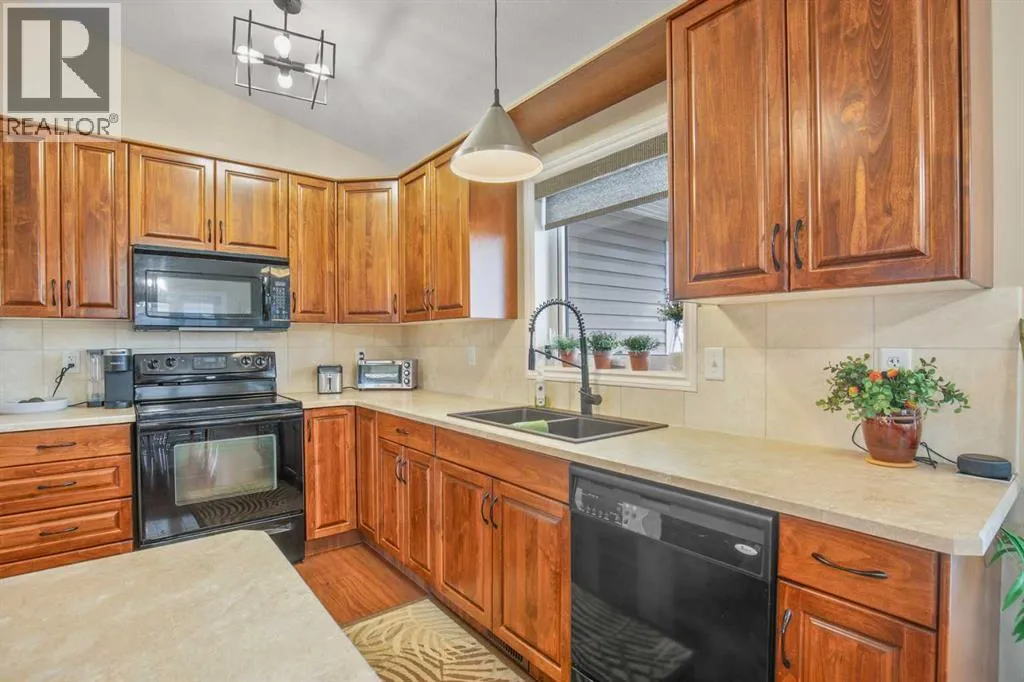 Beautiful, well kept bungalow with walk out basement in Elizabeth Park is now available for viewings. Main floor features two bedrooms along with a 4pc bath and a 3pc ensuite. When one enters the home they are greeted with an open floor plan, vaulted ceilings and a large kitchen with alderwood cabinetry. One can access a covered front porch or covered rear deck with a gas bbq line from the main floor so as to enjoy a cup of coffee rain or shine. Main floor laundry is a nice bonus. The basement features two more bedrooms along with a 4pc bath with the potential for a fifth bedroom if one wanted. Infloor heat and a walk out to a covered seating area is also nice. Updates include a new hot water tank in 2025, new edison lighting throughout the home and gutter guards at the rear of the home for the eavestrough. This home must be seen to be appreciated so don't be afraid to book a showing. (id:27476)
