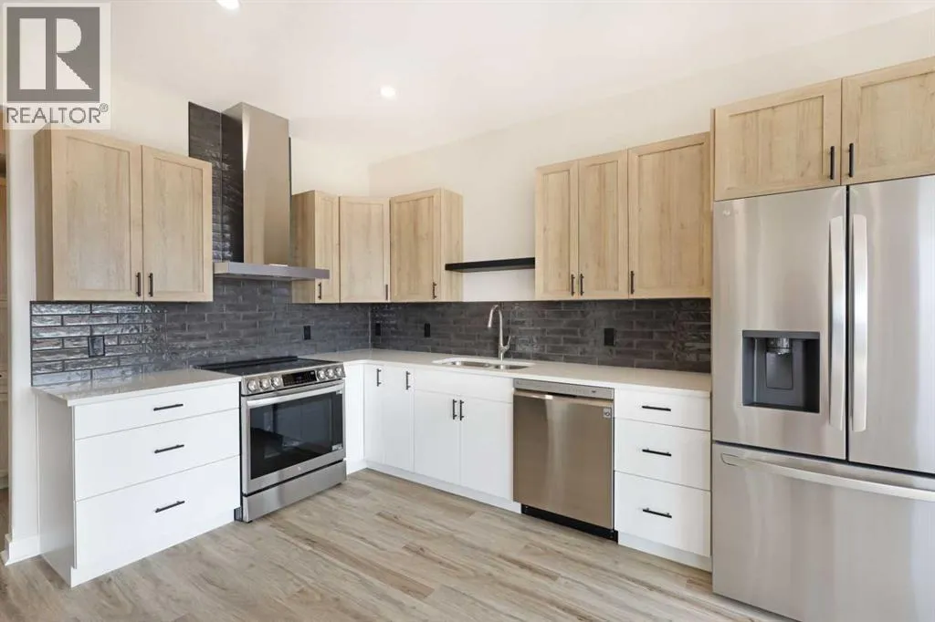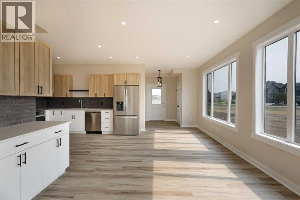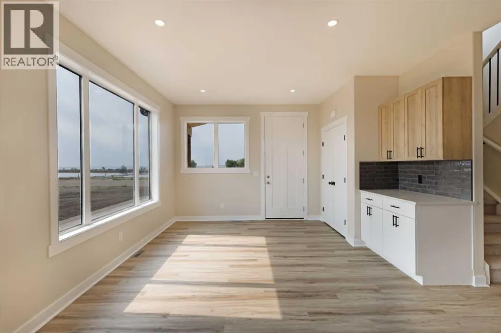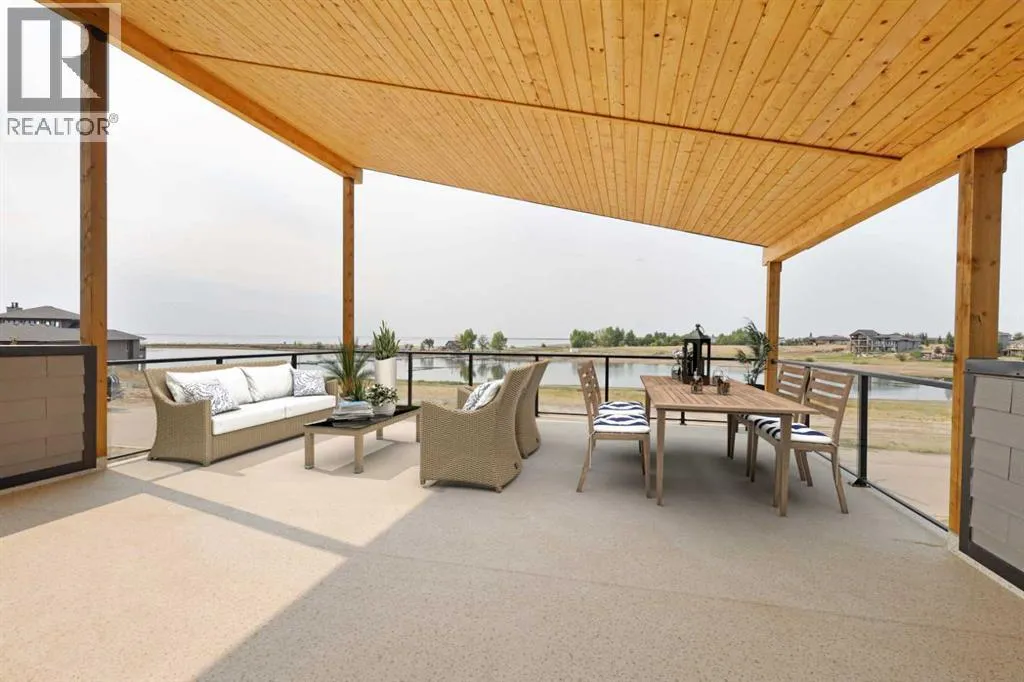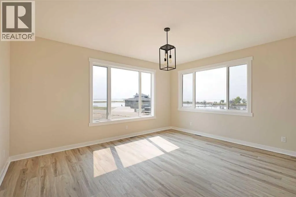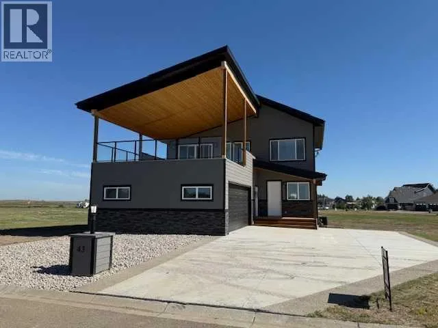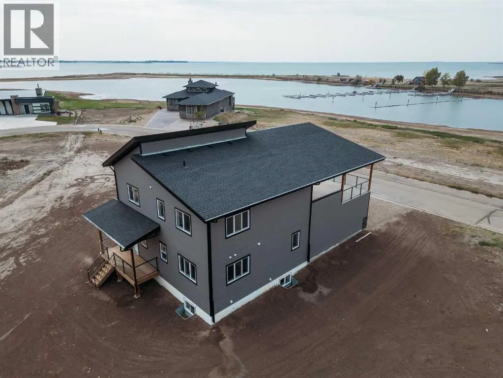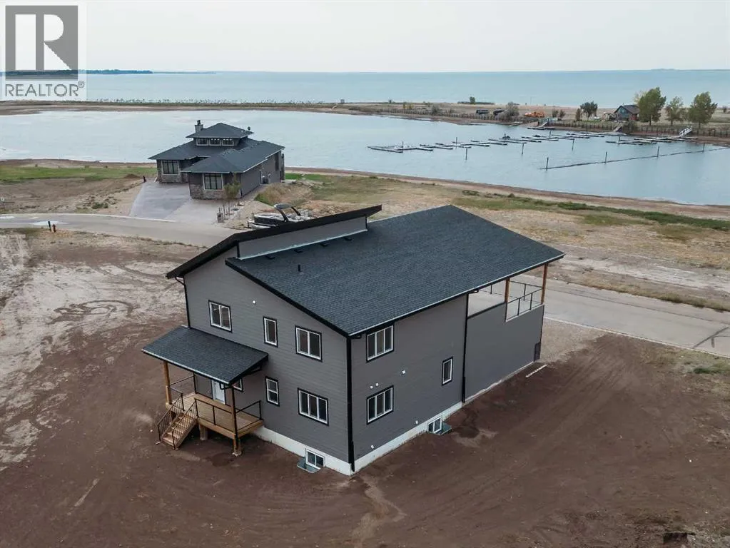BRAND NEW BUILD - 43 KINGFISHER DRIVE is an image of modern design in the exclusive community of Lake Newell Resort. Located on an oversized .33 acre lot, with lake views, this property boasts 2248 square feet of totally uncharted living space. This home's building plans features an open concept design that smoothly blends the living & kitchen area on the main floor, which also contains the master bedroom, walk-in closet & ensuite bath. The main floor also includes a half bath, laundry room & access to the covered back. The second floor is where you will find the jewel feature of this home: an over 600 sq/ft covered deck, where you can enjoy gorgeous lake views while watching the sunrise or set. This space is especially designed as an outdoor cooking & dining area - your own private oasis. Complementary to the deck, the second floor offers a family room with a wet bar, sitting area, two bedrooms & a full bath. Other desirable features of this home include vinyl floors throughout, hardie board siding and in-floor heat for the garage and basement is roughed in. Don't miss this fantastic opportunity to own your own modern dream home in the highly sought-after community of Lake Newell Resort!! A great family community with plenty of outdoor activities all year round. Check out the 3D tour. GST is included in the purchase price. (id:27476)