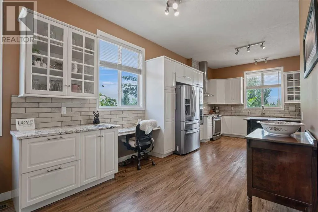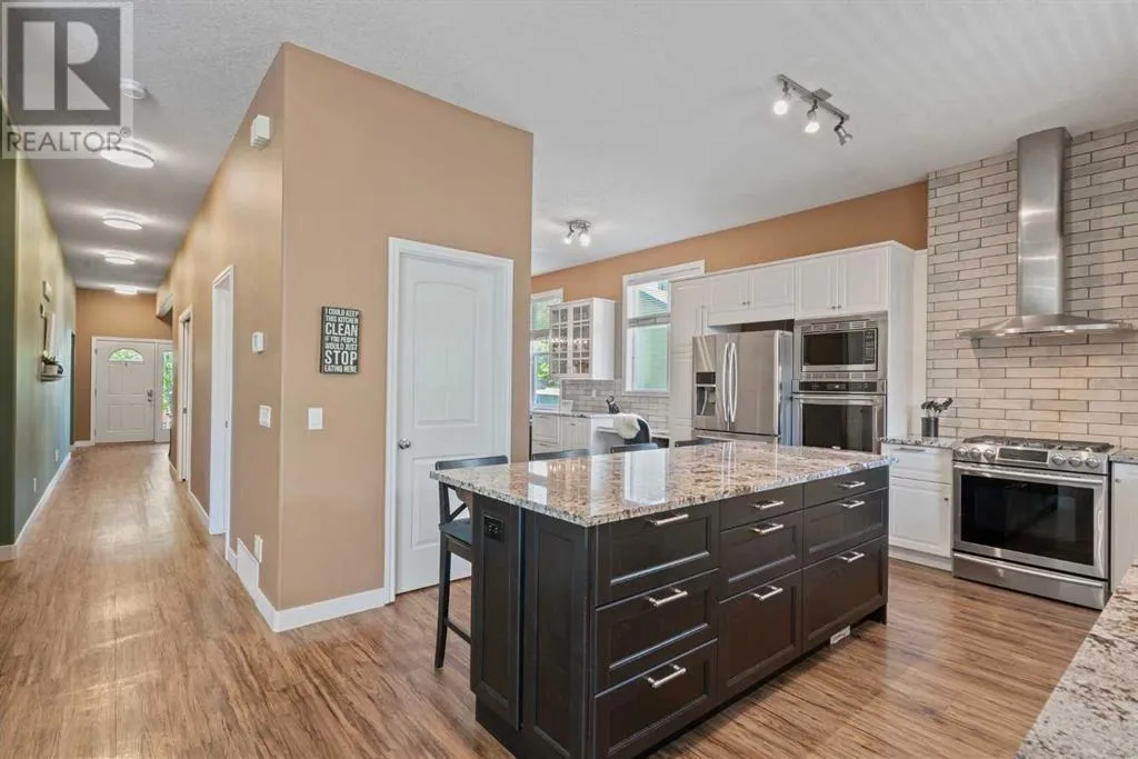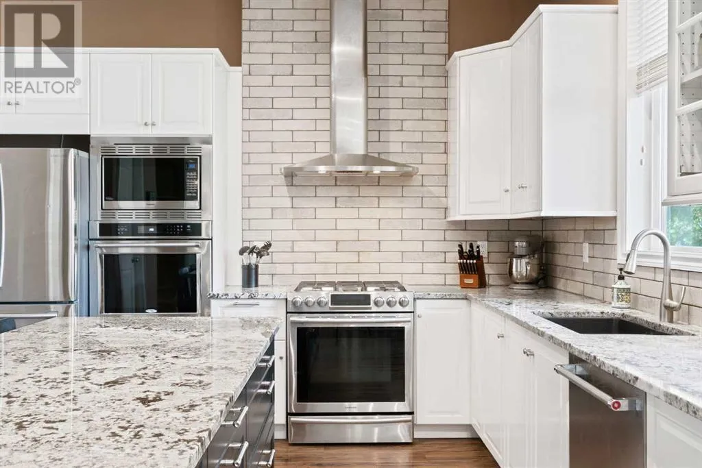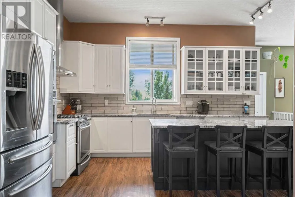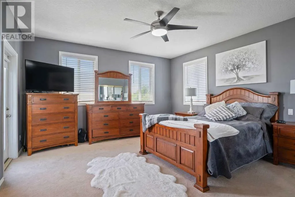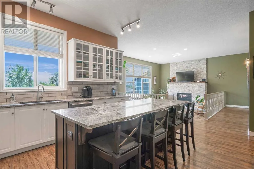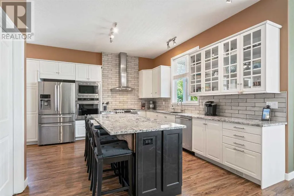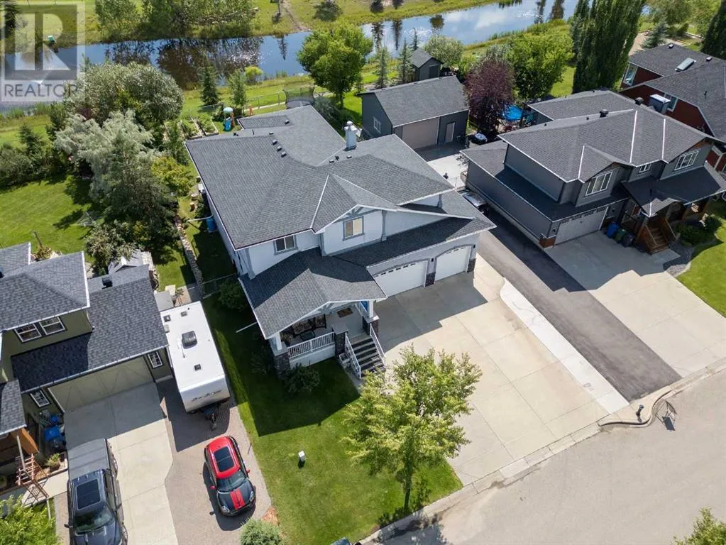 Exceptional Custom Family Home Backing Onto a Scenic Pond with Fountain.Discover the perfect blend of luxury, space, and functionality in this stunning custom-built family home nestled in a tranquil setting with picturesque views of a serene pond and fountain. With over 3,000 sq. ft. of thoughtfully designed living space, this home offers everything your growing family needsâand more!Step inside to soaring 10-foot ceilings on the main floor and 9-foot ceilings upstairs, creating a sense of openness and elegance throughout. The heart of the home is the updated gourmet kitchen, complete with granite countertops, stainless steel appliances, a massive island, and an abundance of custom cabinetryâ flowing effortlessly into a spacious dining room ideal for family gatherings, perfect for hosting and daily living. The sunken living room adds character and comfort.Upstairs, you'll find five oversized bedrooms, including a luxurious primary suite with a private balcony, and spa-inspired ensuite featuring a jetted tub and steam shower. A sixth large bedroom is located in the fully developed basement, which also boasts in-floor heating for year-round comfort.Enjoy the outdoors from your maintenance-free deck or gather around the backyard fire pit under the stars. The immaculately landscaped yard includes underground sprinklers and irrigated garden beds, making it easy to maintain your personal oasis.Additional highlights include:Heated triple attached garage with 9-foot doors3 full bathrooms plus a convenient half bath.Two furnaces, two air conditioners, two hot water tanks, and two sump pumps for optimal efficiency.Roof replaced in 2018.This extraordinary home truly has it allâspace, luxury, and a premium location backing onto nature with rural views and privacy. Donât miss your opportunity to make this dream home yours! (id:27476)