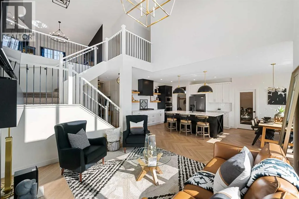 PRICE ADJUSTMENT! YOUR DREAM HOME IS NOW WITHIN REACH. Welcome to 159 Brander Ave â where timeless design meets modern luxury.This stunning custom-built home impresses from every angle, showcasing designer finishes, over $150K in thoughtful upgrades, and a layout perfectly tailored for both family living and entertaining.Step inside and feel the sense of space and light â vaulted and soaring 20-foot ceilings create a breathtaking first impression, while expansive windows flood the home with sunshine and frame beautiful mountain views. The modern farmhouse-inspired exterior blends classic charm with sleek contemporary touches for unforgettable curb appeal.At the heart of the home lies a chefâs dream kitchen, complete with a large working island and a generous walk-in pantry that can easily be converted into a butlerâs pantry for added convenience.Upstairs, the primary suite offers a private retreat, thoughtfully separated from the kidsâ bedrooms. A versatile bonus room provides the perfect space for a playroom, media lounge, or home office â whatever your lifestyle requires.The bright, open basement is ready for your personal touch, featuring tall 10ft ceilings and oversized 3-foot egress windows â the ideal foundation to create your dream rec room, gym, guest suite or whatever your heart desires.Car lovers will appreciate the oversized double garage with soaring ceilings, allowing space for a lift to easily transform it into a four-car garage. Plus, the smart lot design offers potential RV parking without sacrificing your sunny south-facing backyard â perfect for outdoor entertaining and relaxation.Located in Langdon, this home offers the best of both worlds: small-town charm with big conveniences. Exciting new amenities â including a brand-new strip mall and McDonaldâs â are just minutes away, along with local schools and everyday essentials. And with a commute to Calgary similar to that from South Calgary, youâll enjoy more home, more value, and more lifestyle â without the city stress.If youâve been searching for a home that blends luxury, functionality, mountain views, and exceptional value in a growing community, 159 Brander Ave is the one youâve been waiting for. (id:27476)