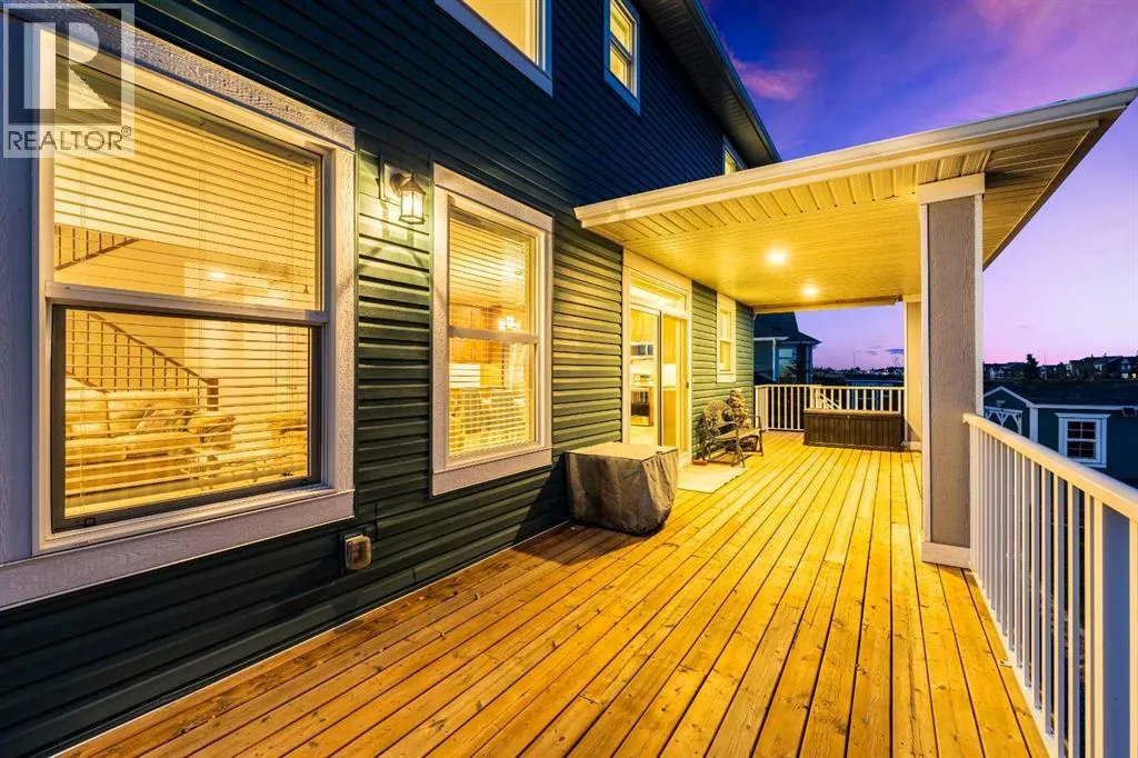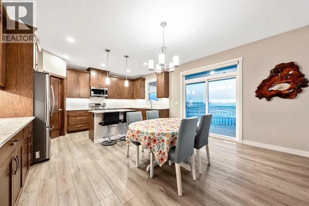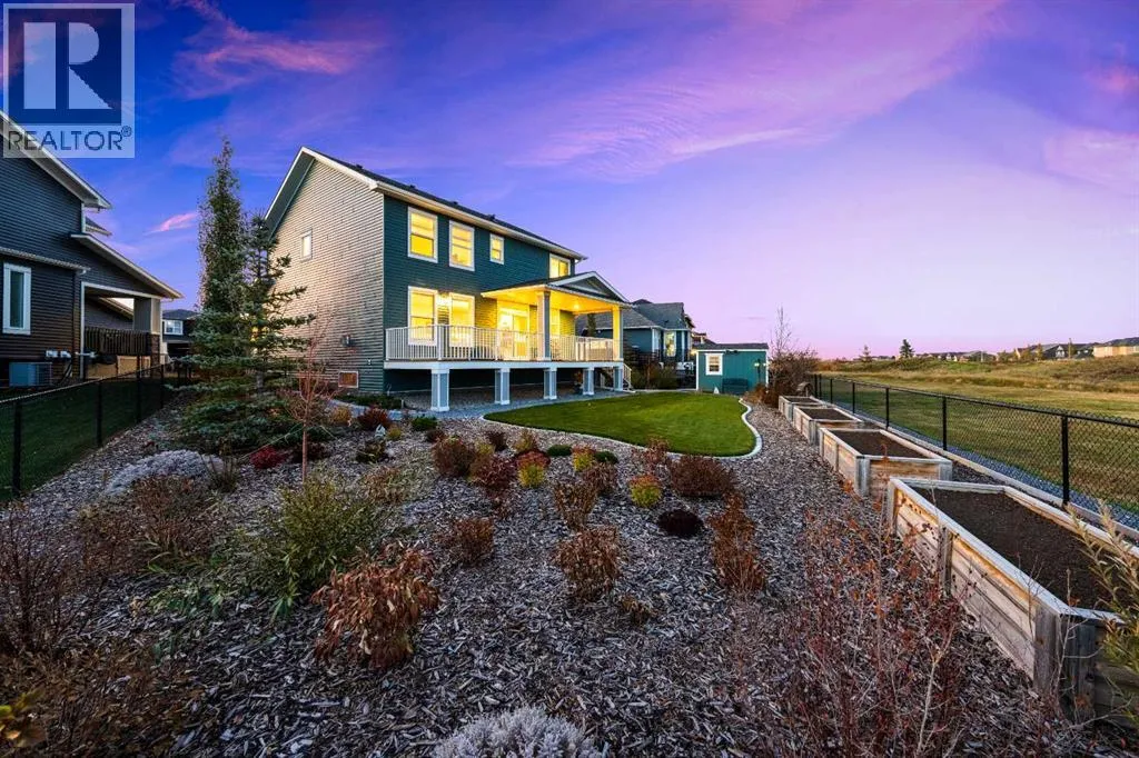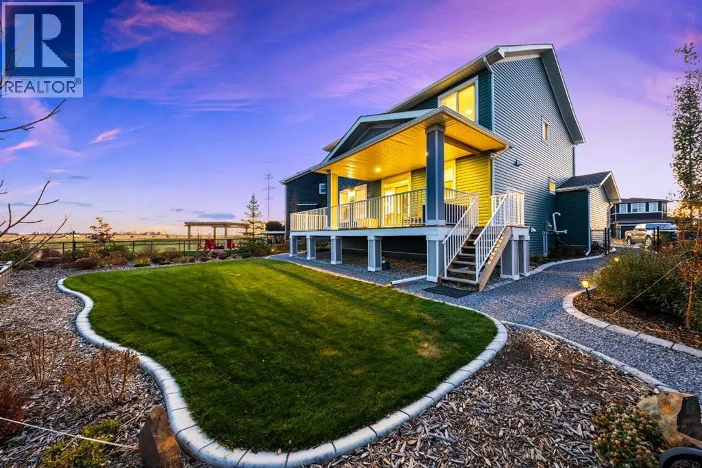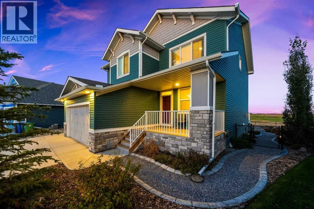 As you approach this inviting home in Boulder Creek Estates, youâll immediately notice the care put into the landscaping with lush flower beds, mature trees, and pristine hardscape set off the property beautifully. The vantage point at the end of a quiet cul-de-sac affords sweeping views over the Track Golf Course, offering changing vistas through every season. Step through the front door and you are greeted by 9-foot ceilings and warm vinyl plank flooring flowing across the main level. To your right, a light-filled office or flex space awaits, perfectly suited to remote work, study, or quiet reading. Further in, the living and dining spaces open to reveal unobstructed views of the golf course through large windows. The kitchen is both elegant and practical, featuring a central island, granite countertops, stainless steel appliances, and a roomy walk-in pantry. The living room is cozy and welcoming, anchored by a graceful fireplace that promises comfort during cold Alberta winters. Sliding patio doors lead you to a generous, partially covered rear deck which is a prime spot to entertain or simply soak in the views.Climb the stairs to find a generous bonus room that offers flexibilityâperhaps a media area, play space, or secondary lounge. The primary bedroom is a true retreat with its five-piece ensuite and sizeable walk-in closet. Two additional bedrooms share in that same commitment to space and comfort, each offering room for a restful nightâs sleep. A well-sized laundry room, complete with ample storage, rounds out the upper level along with a four-piece bathroom.Downstairs, the unfinished basement presents a blank canvas, boasting 9-foot ceilings and rough-in plumbing already in place for a future full bathroom or expansion. The functional possibilities are numerous including the option of additional bedrooms, a recreation space, or a home gym. From the deck youâll have easy access to the backyard, which is fully fenced and completely landscaped, creating a private outdoor refuge. A durable shed is included for storage of garden tools or seasonal gear.Thoughtfully designed and situated in one of Langdonâs most desirable communities, this home offers lifestyle, convenience, and flexibility. With its views, floor plan, and potential, itâs a home youâll want to seeâand once you do, youâll want to call home. Book your showing today. (id:27476)