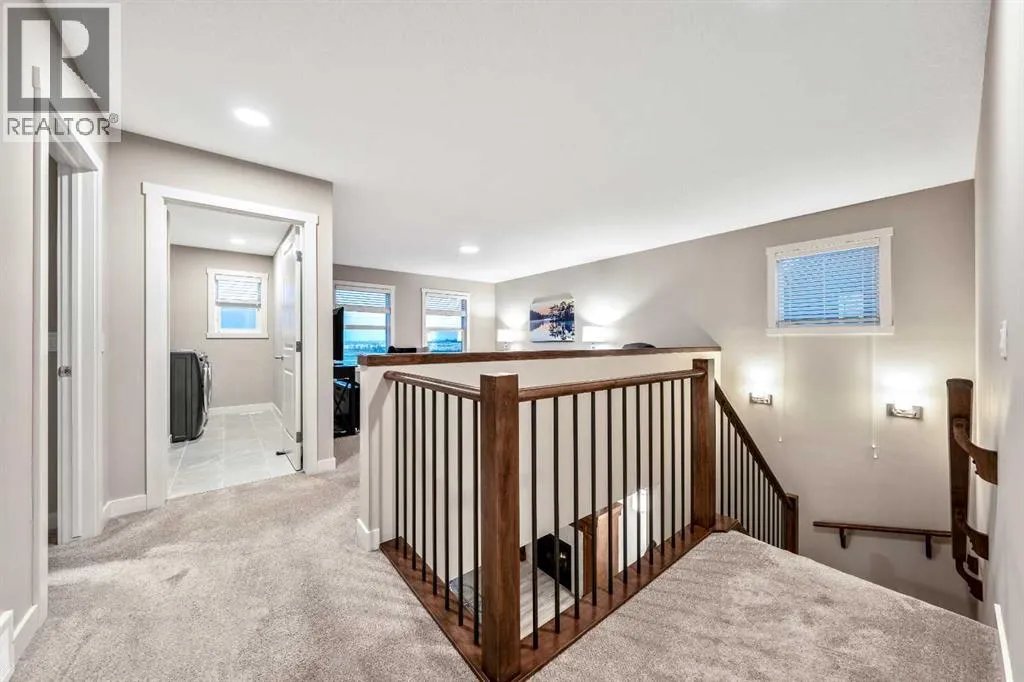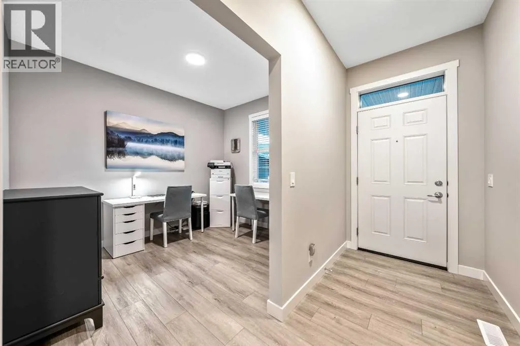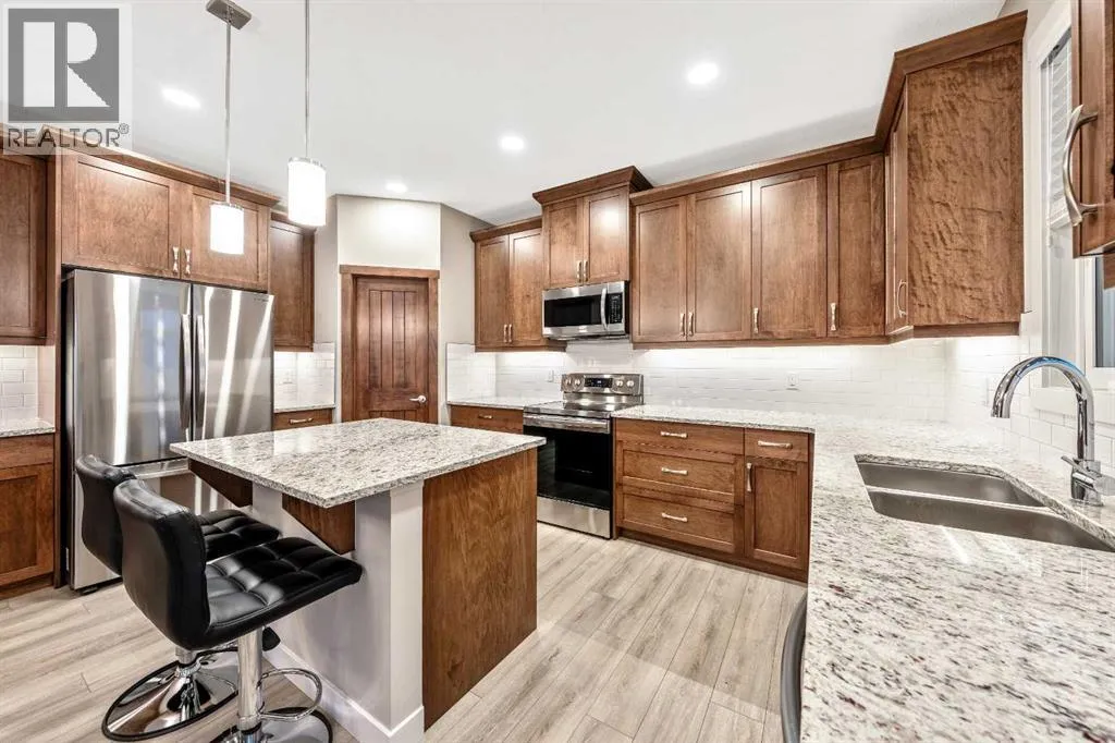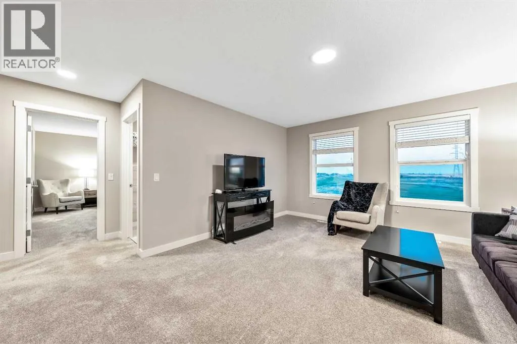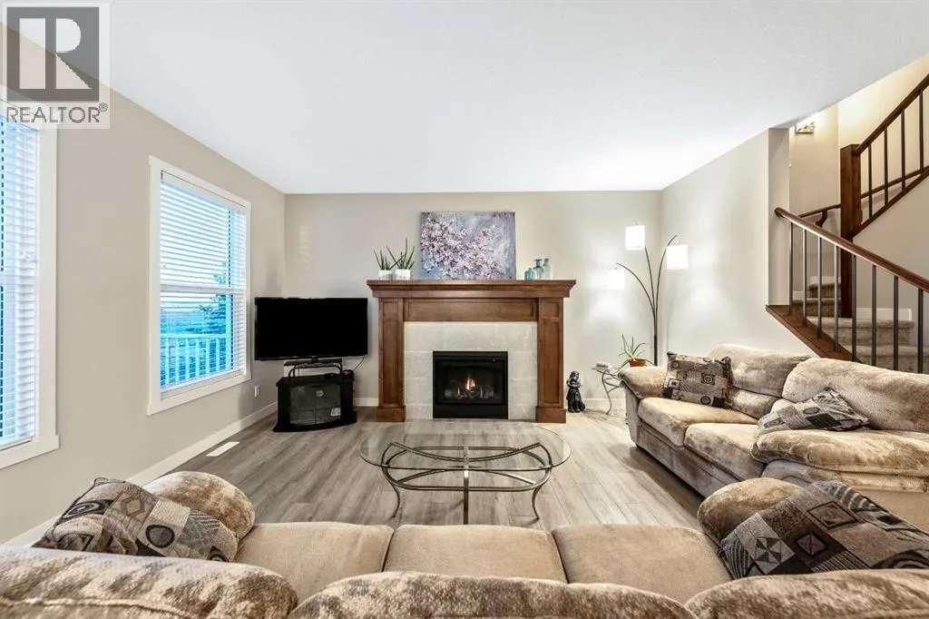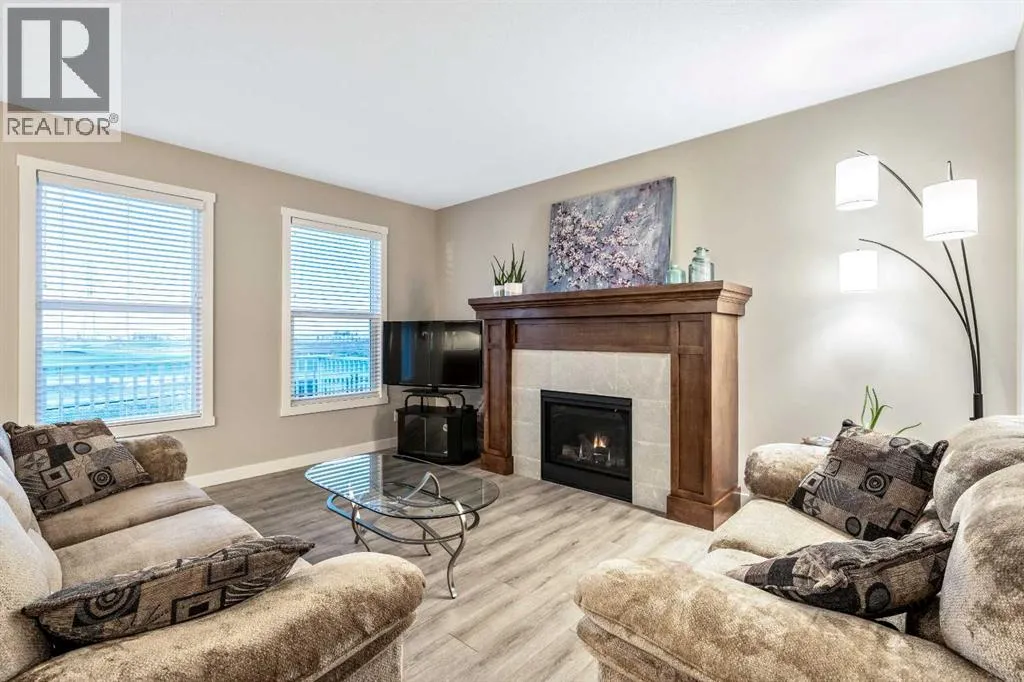 As you approach this inviting home in Boulder Creek Estates, youâll immediately notice the care put into the landscaping with lush flower beds, mature trees, and pristine hardscape set off the property beautifully. The vantage point at the end of a quiet cul-de-sac affords sweeping views over the Track Golf Course, offering changing vistas through every season. Step through the front door and you are greeted by 9-foot ceilings and warm vinyl plank flooring flowing across the main level. To your right, a light-filled office or flex space awaits, perfectly suited to remote work, study, or quiet reading. Further in, the living and dining spaces open to reveal unobstructed views of the golf course through large windows. The kitchen is both elegant and practical, featuring a central island, granite countertops, stainless steel appliances, and a roomy walk-in pantry. The living room is cozy and welcoming, anchored by a graceful fireplace that promises comfort during cold Alberta winters. Sliding patio doors lead you to a generous, partially covered rear deck which is a prime spot to entertain or simply soak in the views.Climb the stairs to find a generous bonus room that offers flexibilityâperhaps a media area, play space, or secondary lounge. The primary bedroom is a true retreat with its five-piece ensuite and sizeable walk-in closet. Two additional bedrooms share in that same commitment to space and comfort, each offering room for a restful nightâs sleep. A well-sized laundry room, complete with ample storage, rounds out the upper level along with a four-piece bathroom.Downstairs, the unfinished basement presents a blank canvas, boasting 9-foot ceilings and rough-in plumbing already in place for a future full bathroom or expansion. The functional possibilities are numerous including the option of additional bedrooms, a recreation space, or a home gym. From the deck youâll have easy access to the backyard, which is fully fenced and completely landscaped, creating a private outdoor refuge. A durable shed is included for storage of garden tools or seasonal gear.Thoughtfully designed and situated in one of Langdonâs most desirable communities, this home offers lifestyle, convenience, and flexibility. With its views, floor plan, and potential, itâs a home youâll want to seeâand once you do, youâll want to call home. Book your showing today. (id:27476)