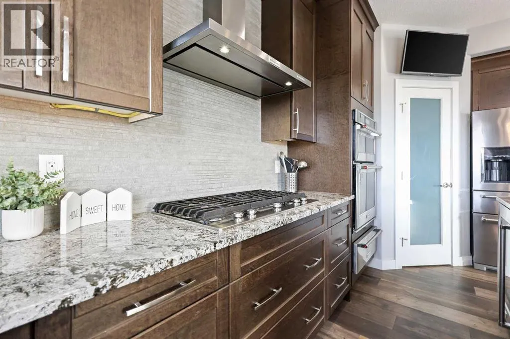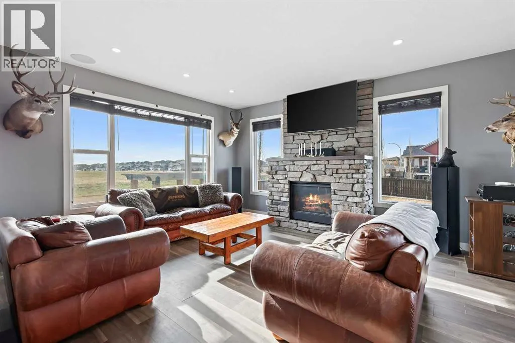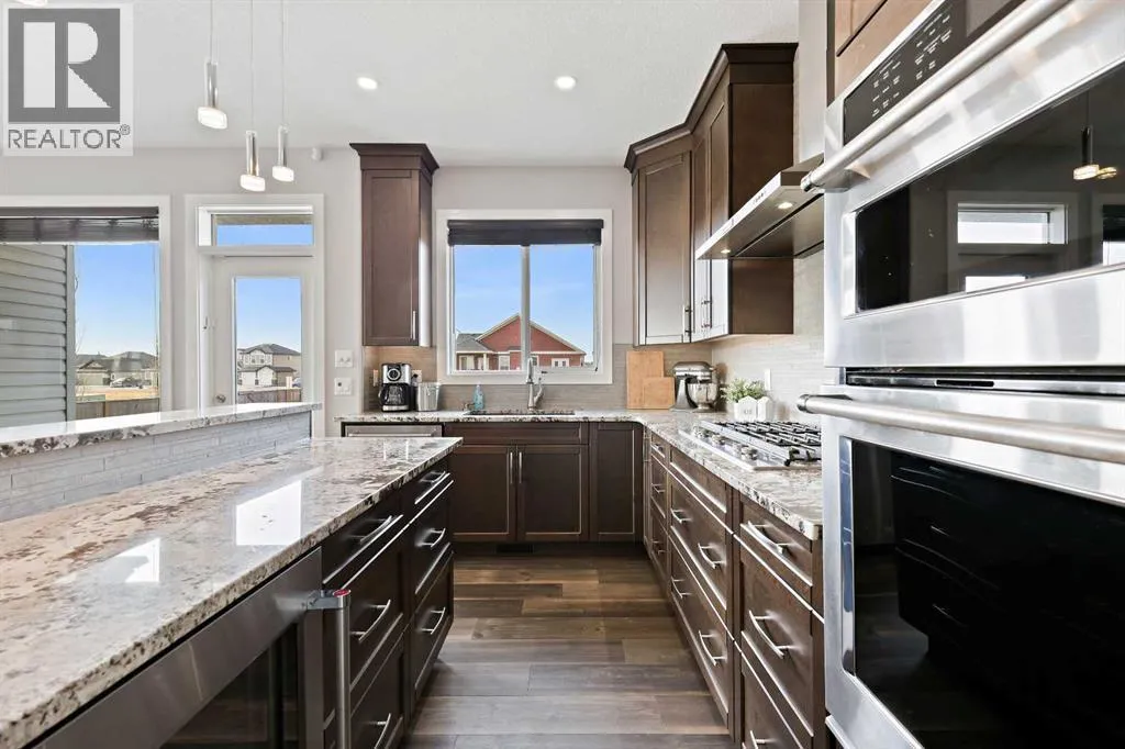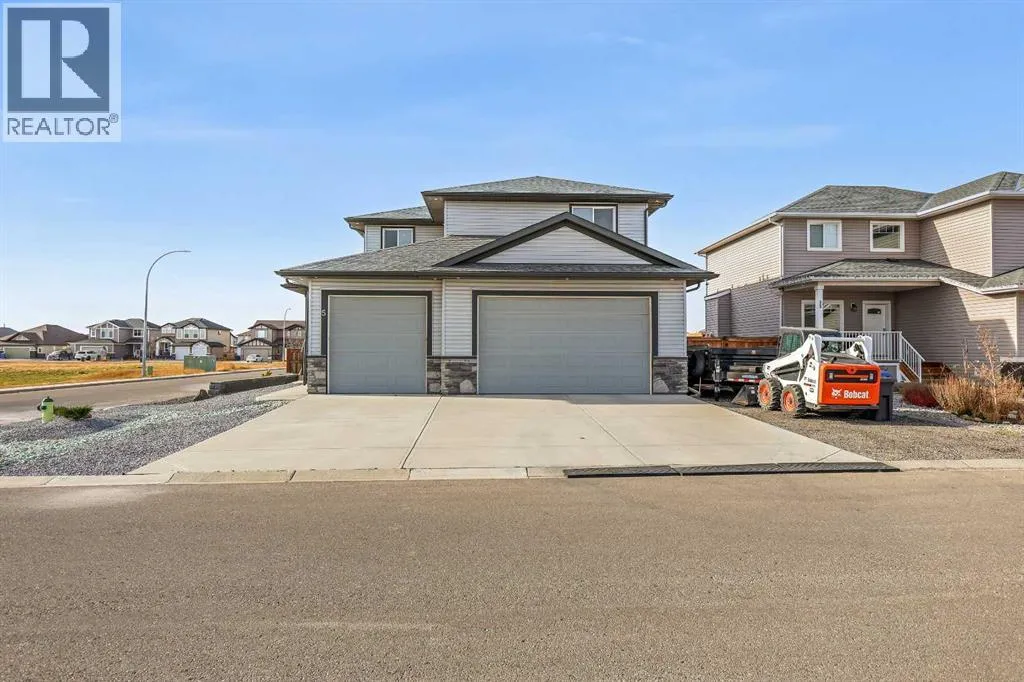 Welcome to 5 Hanson Lane â The Home That Truly Has It All! If youâre searching for a home that offers style, quality, and comfort, this custom-built property is the perfect fit. Designed and constructed by the homeowner with top-of-the-line finishes and upgraded electrical, this stunning home is move-in ready and waiting for your personal touch. Situated on a massive corner lot with no neighbors in front, you can enjoy peaceful mornings on your front porch as the sun rises. The oversized heated triple-car garage is ready for your projects â complete with in-floor heating (boiler required), welder wiring, and extra rebar in the slab for added stability. The west-facing backyard is a blank canvas, ready for your dream outdoor space. The steel-framed back deck is maintenance-free and ready for composite decking in the color of your choice. With RV parking in the front and a low-maintenance yard, this home offers both convenience and functionality. Inside, youâll love the open-concept main floor featuring a gorgeous stone fireplace in the living room. The kitchen is a bakerâs delight, complete with double wall ovens and warming drawer, gas range, wine fridge, all top-of-the-line KitchenAid stainless steel appliances. Under-cabinet lighting and updated fixtures enhance the sleek, modern design. Upstairs, youâll find a bonus room, two spacious bedrooms, a laundry room with wash sink, and the luxurious primary suite. The primary retreat features a spa-inspired ensuite with double vanity, large walk-in shower, soaker tub, and private toilet area, as well as a massive walk-in closet and private west-facing balcony â perfect for watching sunsets or summer rain showers. The unfinished basement offers 9â ceilings, large windows, and rough-ins for a wet bar â a true blank slate ready for your vision. It also includes in-floor heating (boiler required), reinforced concrete, and extra rebar for superior durability. Additional features include: Luxury vinyl plank flooring throughou t, Photocell ambient stair lighting, Built-in speaker system (zone-controlled via app) in house, deck, and garage, 2024 hot water tank, Home security system. Donât miss your chance to own this incredible property in the heart of Langdon. Book your private showing today with your favorite Realtor. (id:27476)