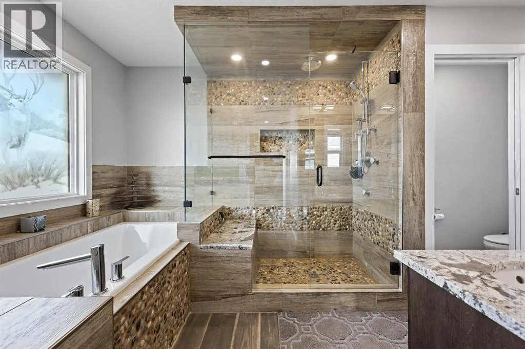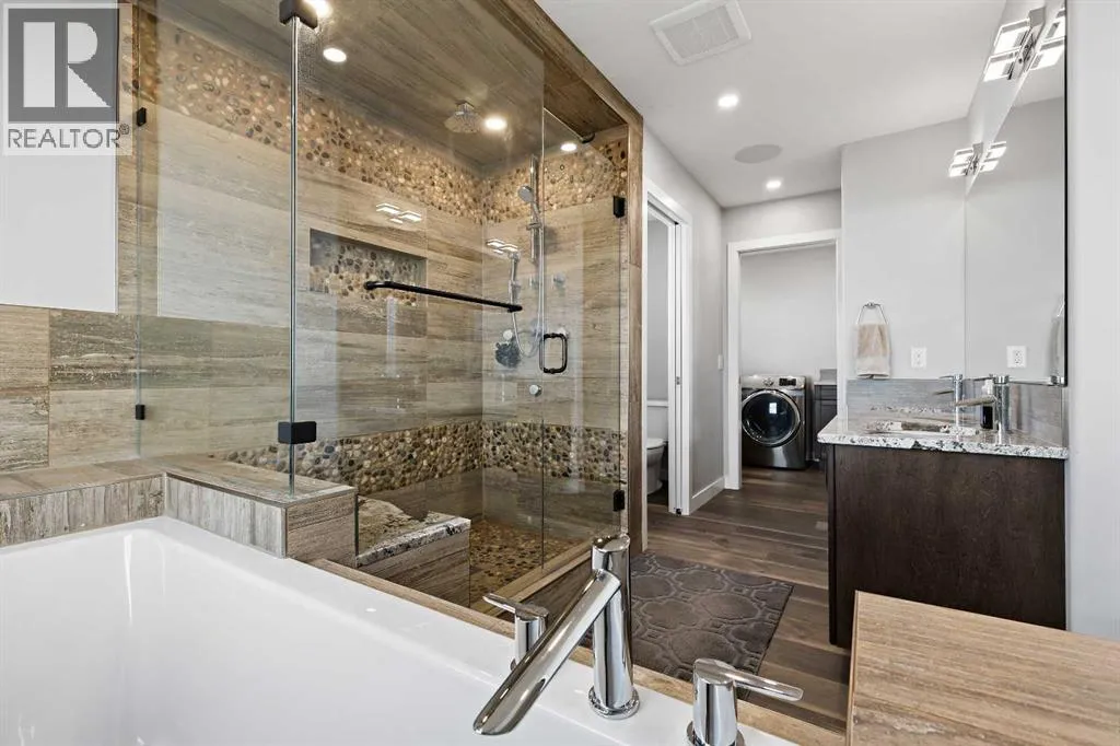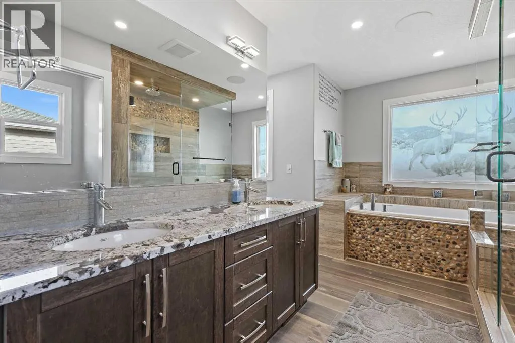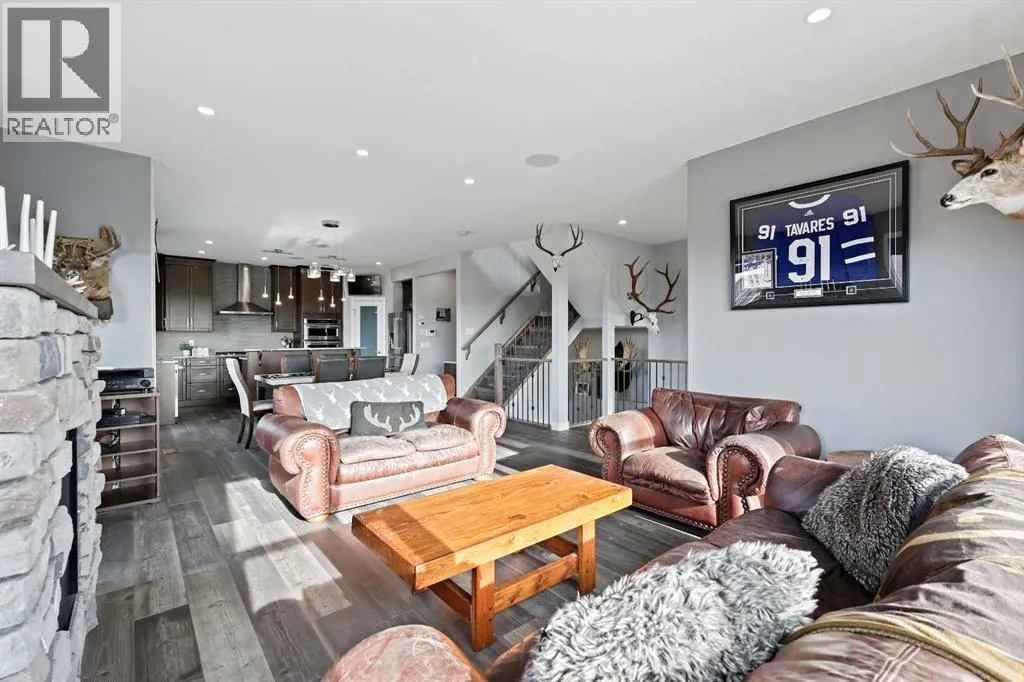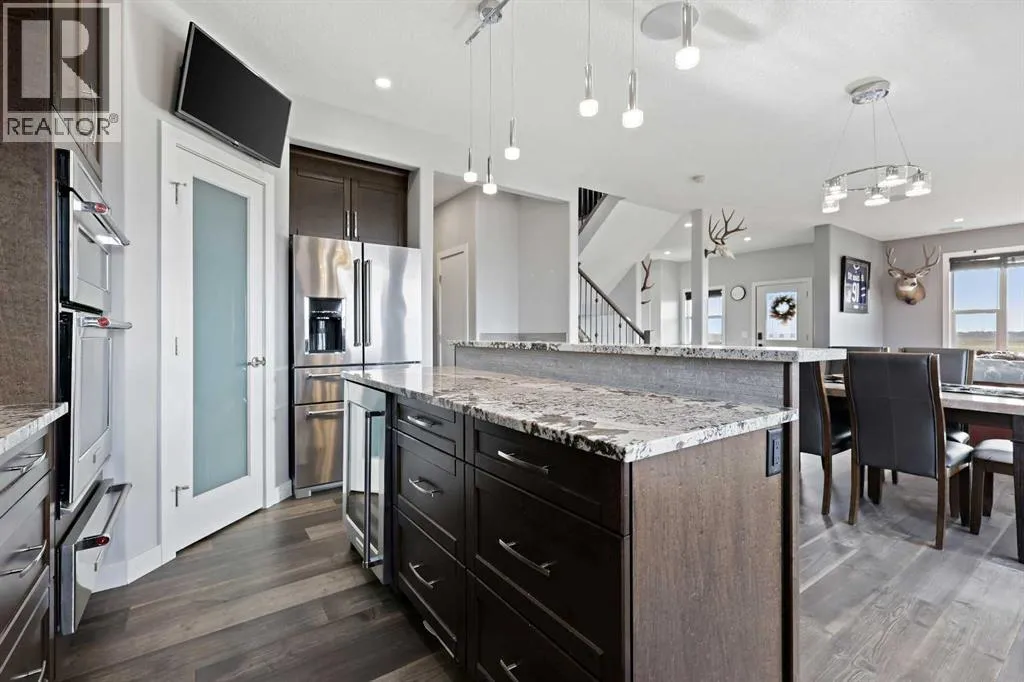 Welcome to 5 Hanson Lane â The Home That Truly Has It All! If youâre searching for a home that offers style, quality, and comfort, this custom-built property is the perfect fit. Designed and constructed by the homeowner with top-of-the-line finishes and upgraded electrical, this stunning home is move-in ready and waiting for your personal touch. Situated on a massive corner lot with no neighbors in front, you can enjoy peaceful mornings on your front porch as the sun rises. The oversized heated triple-car garage is ready for your projects â complete with in-floor heating (boiler required), welder wiring, and extra rebar in the slab for added stability. The west-facing backyard is a blank canvas, ready for your dream outdoor space. The steel-framed back deck is maintenance-free and ready for composite decking in the color of your choice. With RV parking in the front and a low-maintenance yard, this home offers both convenience and functionality. Inside, youâll love the open-concept main floor featuring a gorgeous stone fireplace in the living room. The kitchen is a bakerâs delight, complete with double wall ovens and warming drawer, gas range, wine fridge, all top-of-the-line KitchenAid stainless steel appliances. Under-cabinet lighting and updated fixtures enhance the sleek, modern design. Upstairs, youâll find a bonus room, two spacious bedrooms, a laundry room with wash sink, and the luxurious primary suite. The primary retreat features a spa-inspired ensuite with double vanity, large walk-in shower, soaker tub, and private toilet area, as well as a massive walk-in closet and private west-facing balcony â perfect for watching sunsets or summer rain showers. The unfinished basement offers 9â ceilings, large windows, and rough-ins for a wet bar â a true blank slate ready for your vision. It also includes in-floor heating (boiler required), reinforced concrete, and extra rebar for superior durability. Additional features include: Luxury vinyl plank flooring throughou t, Photocell ambient stair lighting, Built-in speaker system (zone-controlled via app) in house, deck, and garage, 2024 hot water tank, Home security system. Donât miss your chance to own this incredible property in the heart of Langdon. Book your private showing today with your favorite Realtor. (id:27476)