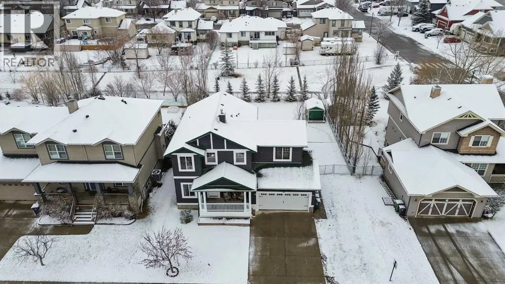 Welcome to this Beautifully Updated Home on a Quiet Cul-de-sac in the Charming Community of Langdon! Situated on nearly a ¼-Acre Lot Backing onto Green Space, this Property offers Privacy, Space, and Small-Town Living at its Best. The Bright, Open-to-Above Entryway and Fresh Paint create a Modern, Inviting Feel. The Open-Concept Main Floor features a Spacious Living Room, Dining Area, and Updated Kitchen with Stainless Steel Appliances, Granite Countertops, a Large Island, and plenty of Cabinetry. A Main-Floor Office, 2-piece Bath, and Mudroom complete this level. Upstairs, the Primary Suite is set apart for Privacy and includes a 4-piece Ensuite and Walk-in closet. A central Bonus Room with Flex Area leads to Two Additional Bedrooms, a Full Bath, and convenient Upper Laundry. The Lower Level is Partially Developed with a Completed 4-piece Bath and a Walk-Up Entrance to a Patio. With three Large Windows, this space is Bright and Ready for your Finishing touches. The Heated, Painted, and Tiled Garage is a Standout Feature, along with New Siding (2022), New Garage Door and Opener (2022). The 0.21-Acre Yard is Beautifully Landscaped with a Large Deck, Fire Pit Area, Mature Trees, and a Large Storage Shed. A Covered Dog Run extends from the garage and can double as covered storage. An 80-ft Gravel Driveway provides Ample Parking for Trailers or Guests. Langdon offers Small-Town Charm, Great Schools, and Convenient Access to Calgary and nearby Amenities. Donât miss this Incredible Opportunity to own a Beautiful Home in this Welcoming Community! (id:27476)