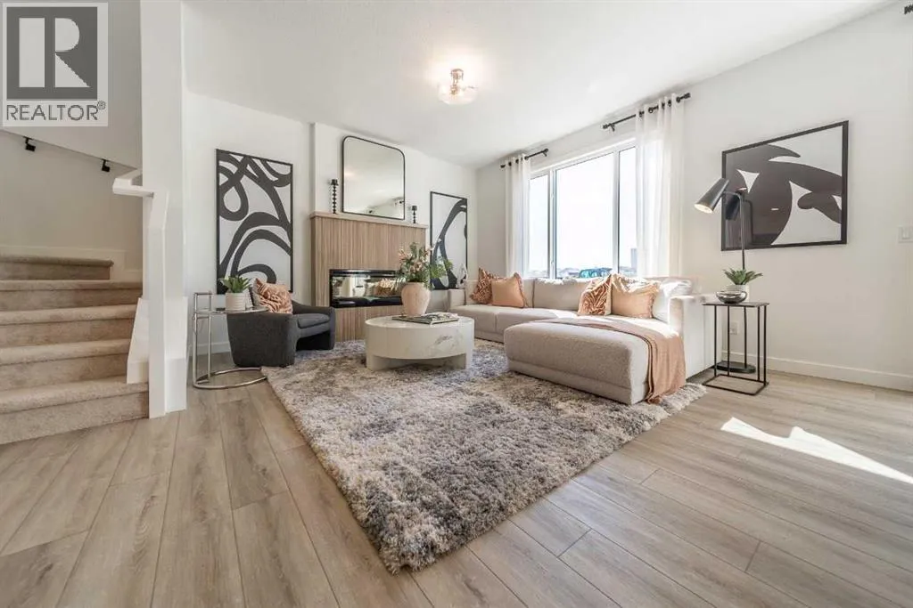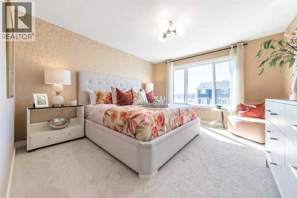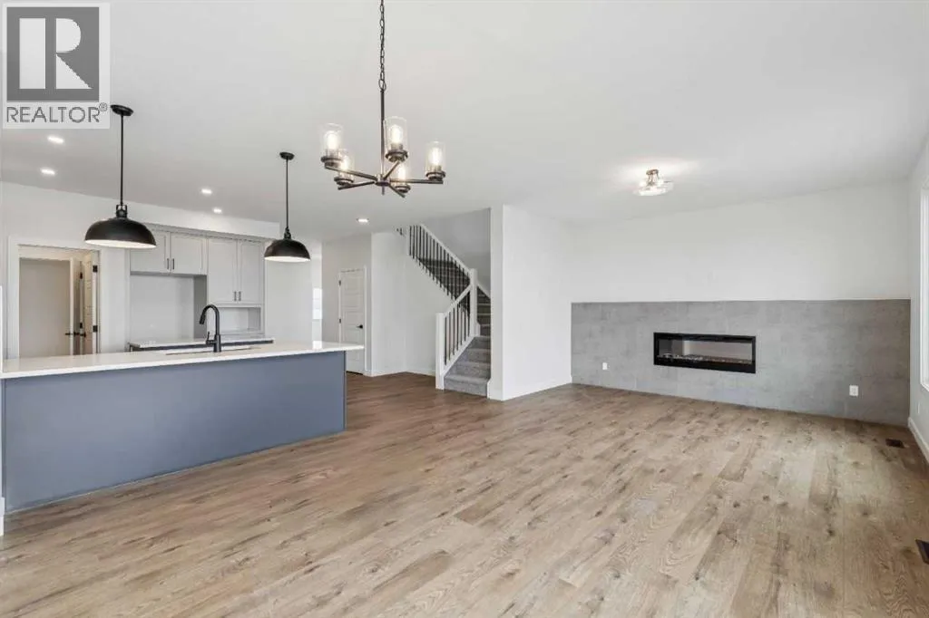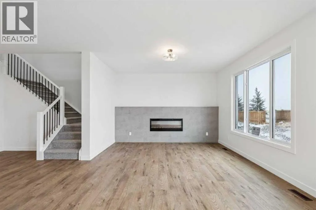 Welcome to the Birkley 2 by Sterling Homes Calgary! Built by a trusted builder with over 70 years of experience, this home showcases on-trend, designer-curated interior selections tailored for a home that feels personalized to you. Energy efficient and smart home features, plus moving services included.A beautifully designed home filled with style, comfort, and modern upgrades.This home features an electric fireplace, LVP throughout the main floor, quartz countertops and added brightness from additional windows. The kitchen offers stainless steel appliances with a chimney hoodfan and gas range, a peninsula with pendant lighting, and a walk-through pantry. Upstairs includes a vaulted bonus room and a 5-piece ensuite with tiled walk-in shower, soaker tub, and tile flooring throughout the upper floor bathrooms and laundry. With walk-in closets in all bedrooms, paint-grade railing with iron spindles, an oversized double garage, 9' basement ceilings, a side entrance, and a rear BBQ gasline rough-in, this home blends comfort and luxury. This energy-efficient home is Built Green certified and includes triple-pane windows, a high-efficiency furnace, and a solar chase for a solar-ready setup. With blower door testing that may be eligible for up to 25% mortgage insurance savings, plus an electric car charger rough-in, itâs designed for sustainable, future-forward living. Featuring a full range of smart home technology, this home includes a programmable thermostat, ring camera doorbell, smart front door lock, smart and motion-activated switchesâall seamlessly controlled via an Amazon Alexa touchscreen hub. Some photos are representative. (id:27476)